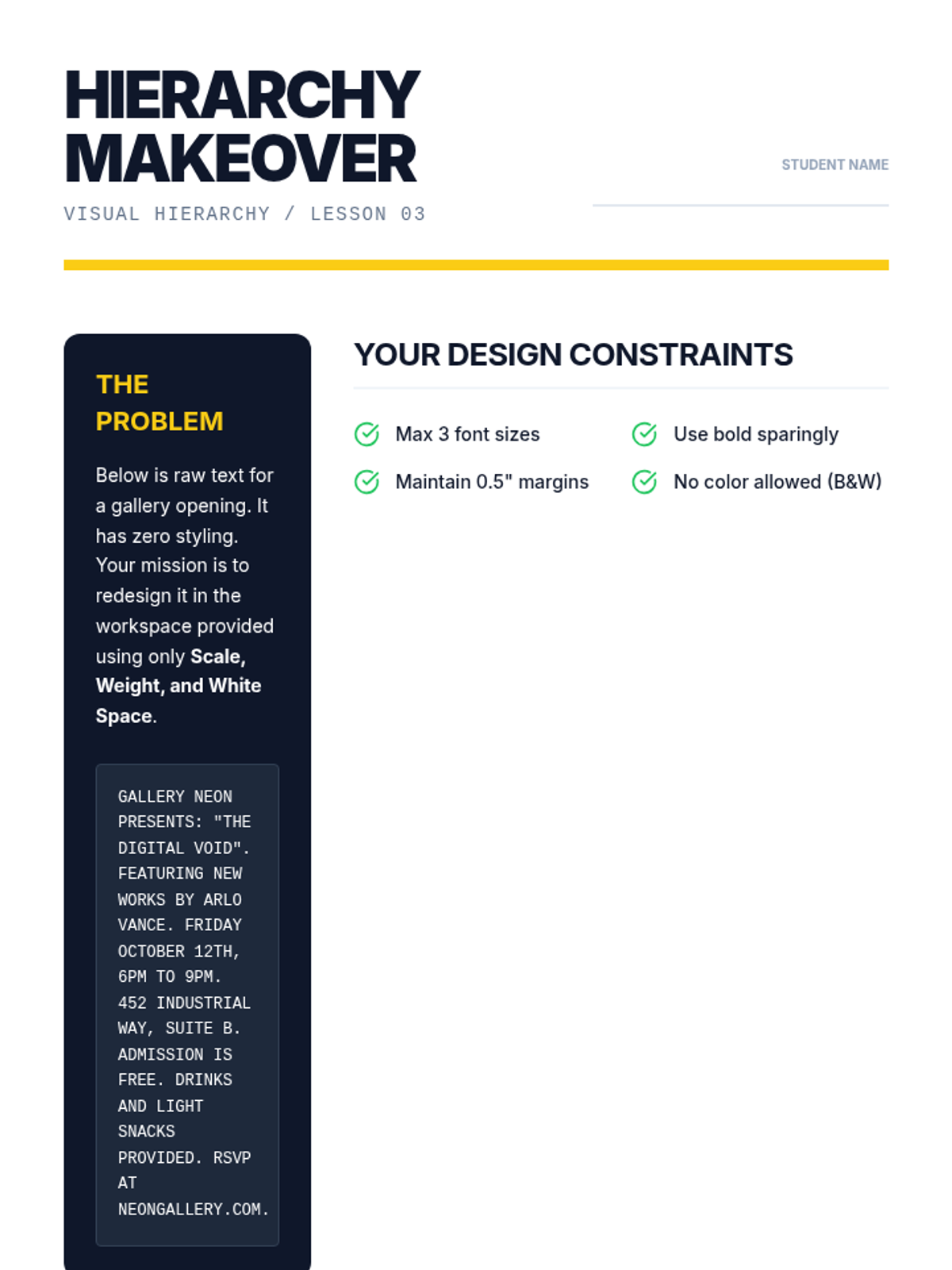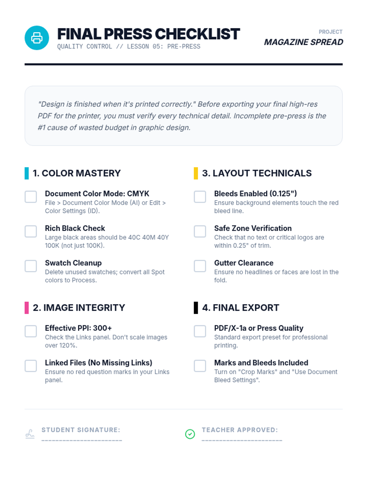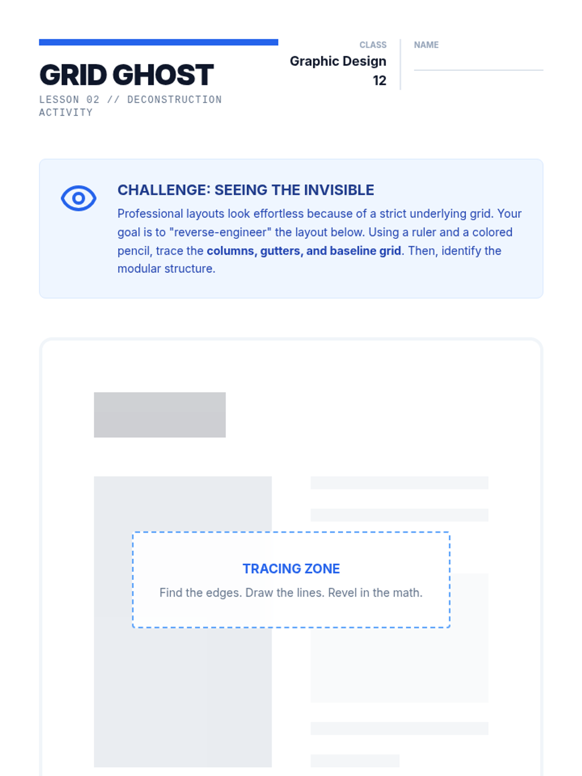 A workshop-intensive sequence for 12th-grade students focused on editorial design, grid systems, micro-typography, and pre-press production. Students learn to master the technical and structural details of layout to influence user experience and information flow.