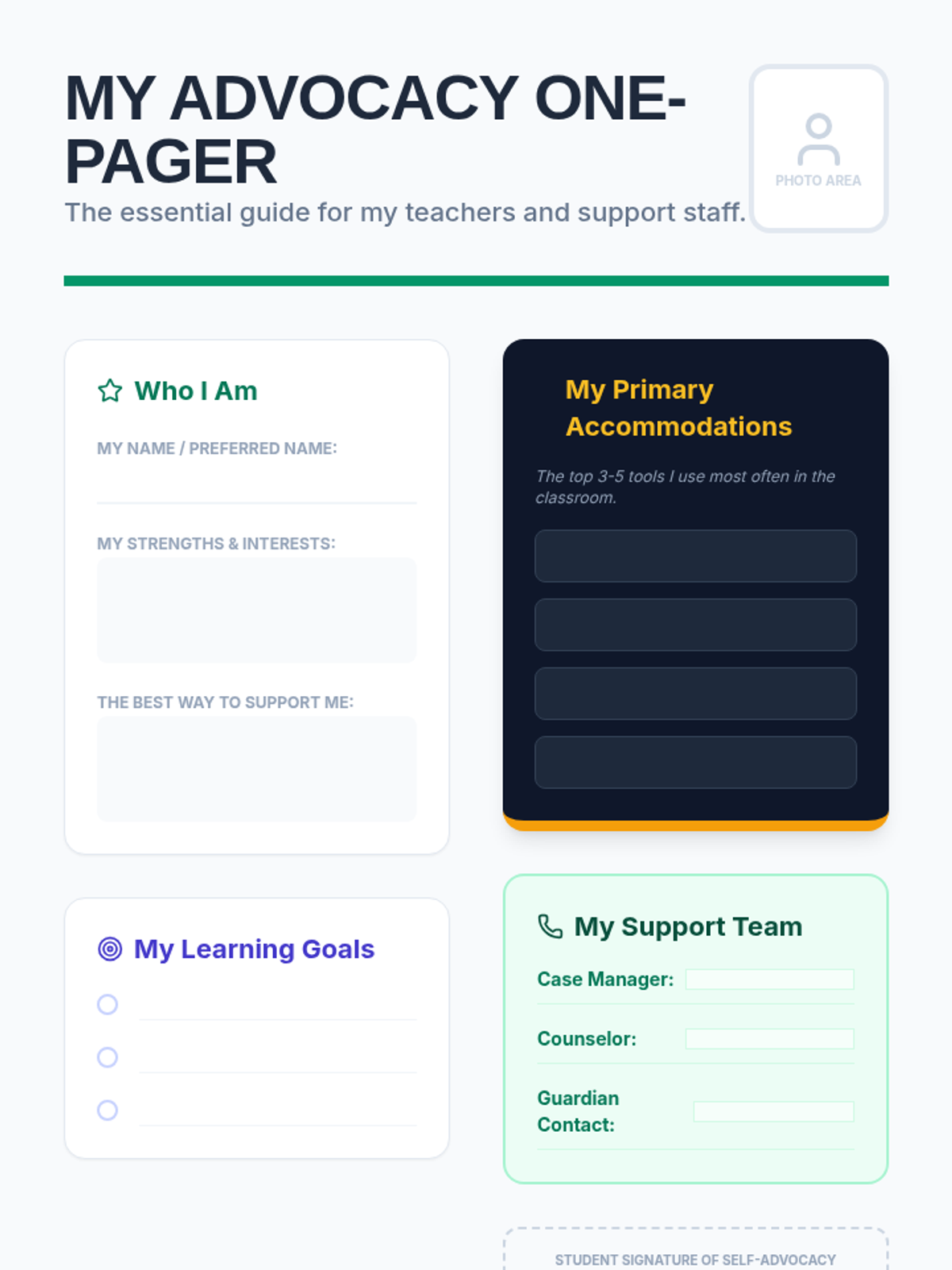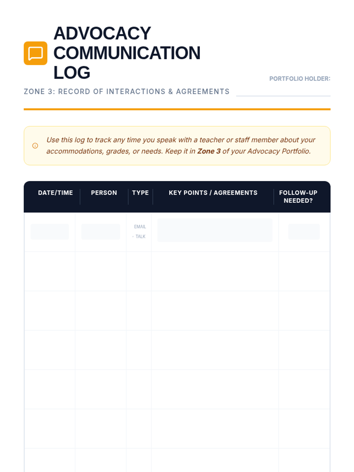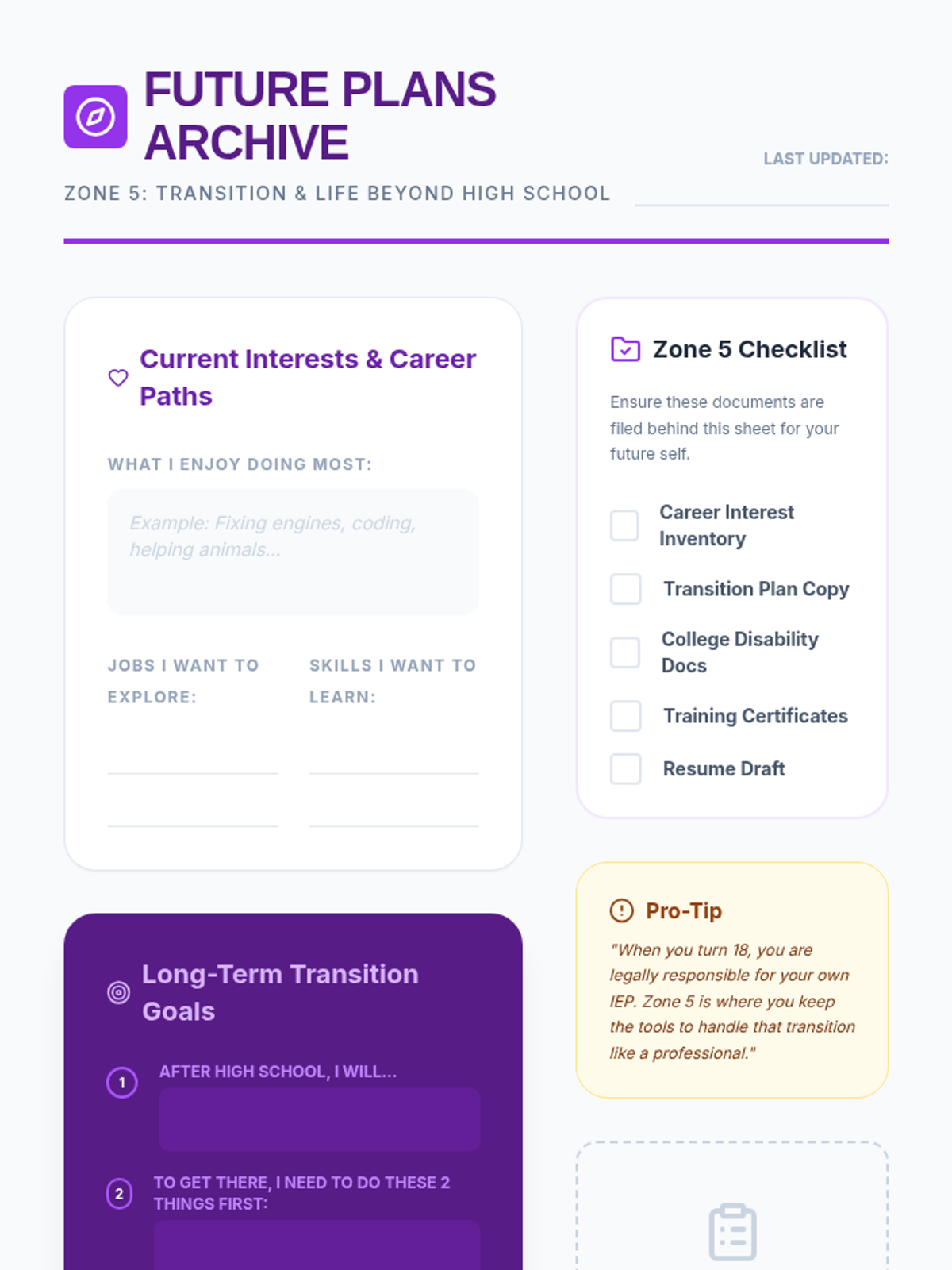 A 5-lesson sequence for 9th-grade students to build and maintain a physical 'Advocacy Portfolio' of their Special Education documentation. This unit teaches document literacy, physical organization, and the importance of record-keeping for self-advocacy.
