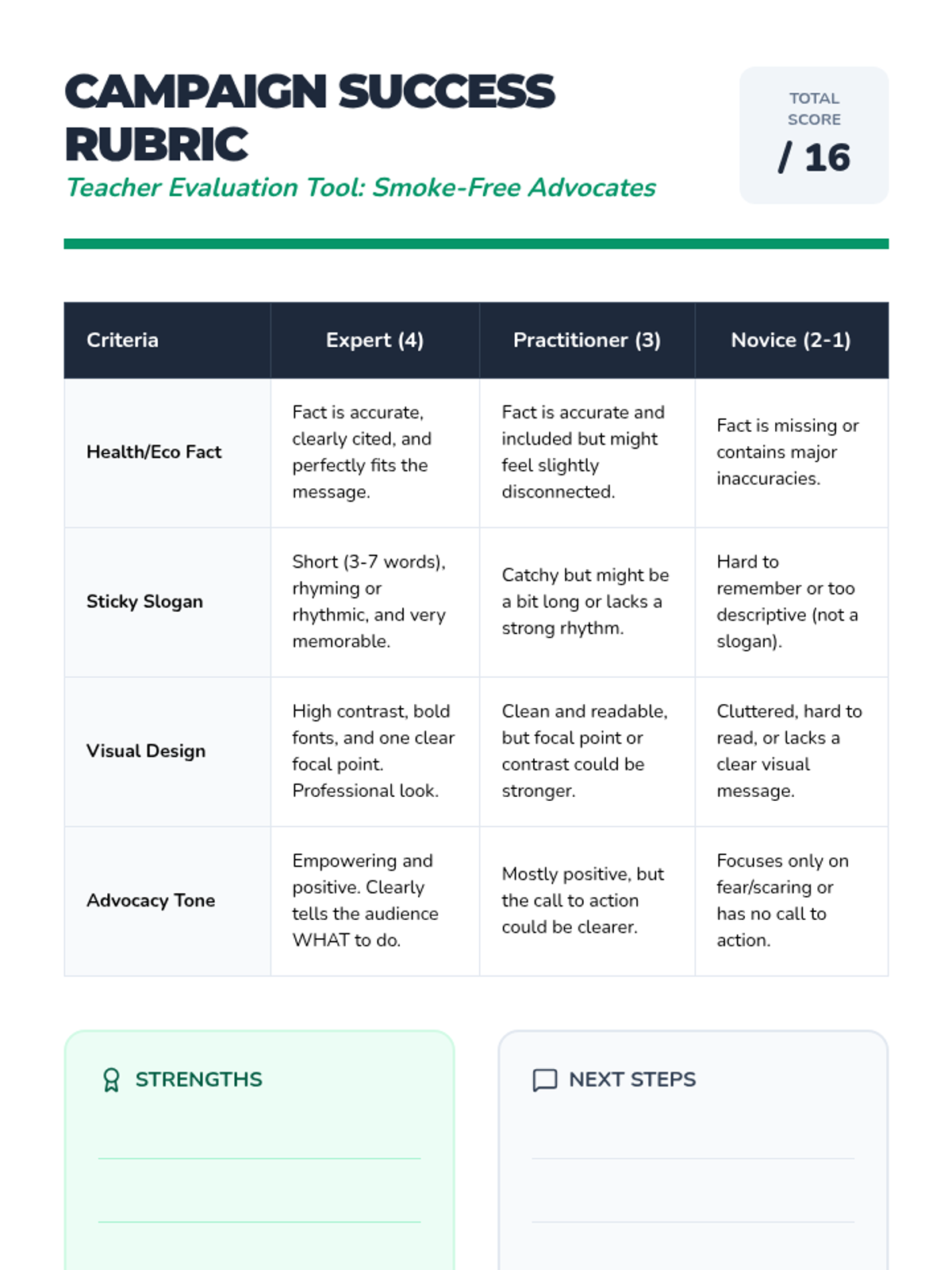 A project-based unit where 4th graders transition from learning health facts to becoming community advocates. Students investigate the environmental impact of tobacco waste and design persuasive campaigns to promote smoke-free spaces in their local community.