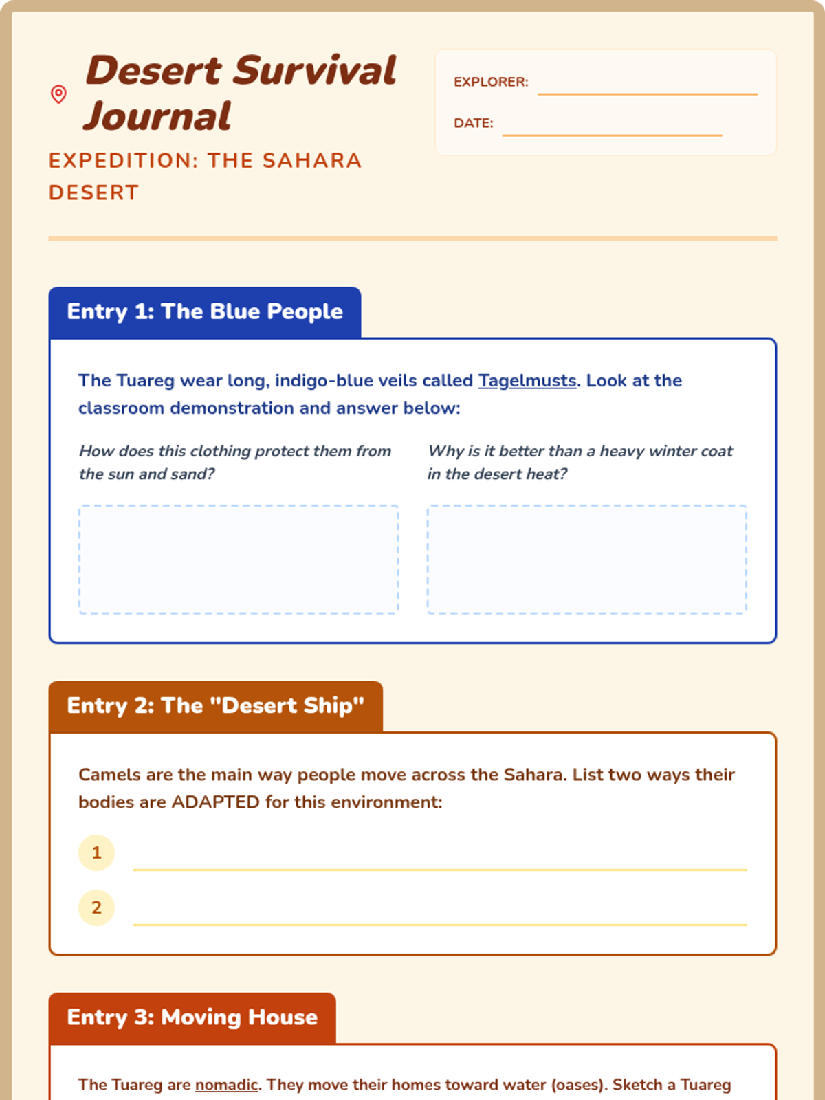 This 3rd-grade sequence explores Africa's natural resources, historical trade routes like the salt-gold trade, agricultural reliance on the Nile, and modern economic connections. Students engage in simulations and mapping activities to understand how resources drive human movement and community growth.