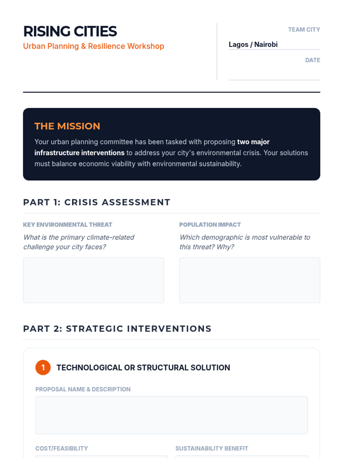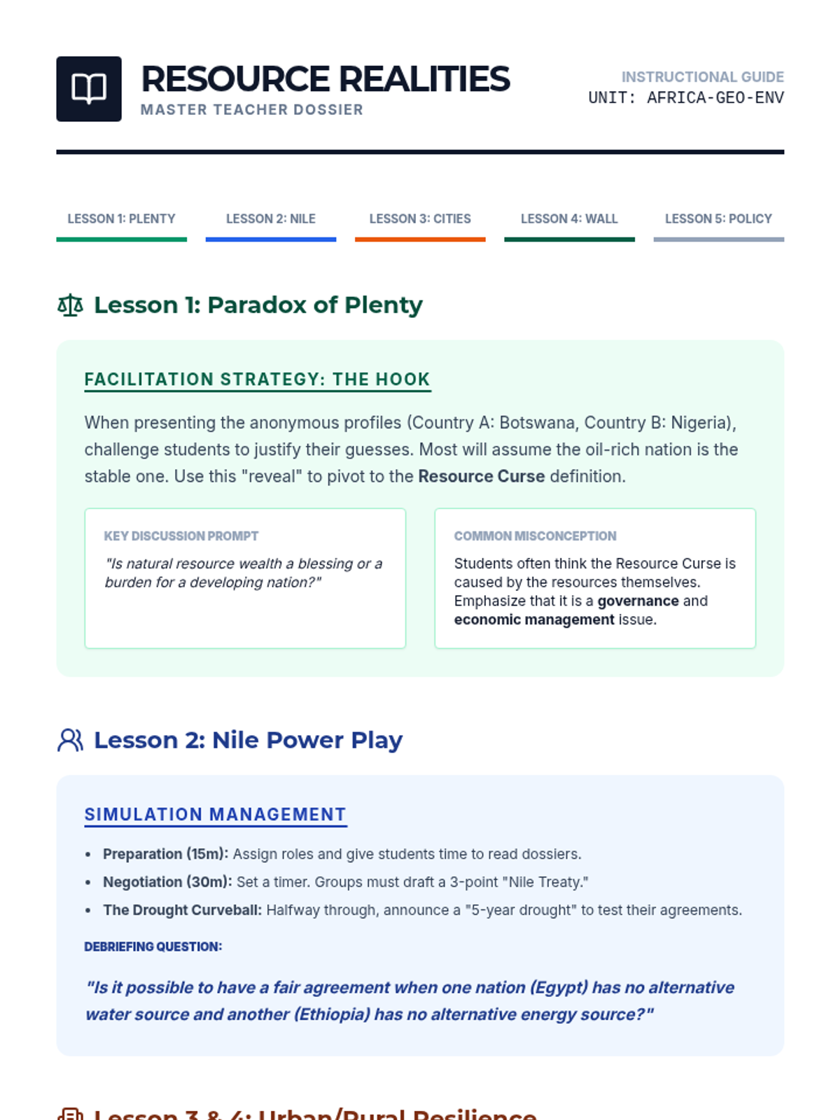 This sequence explores the intersection of economic development and environmental sustainability in Africa, focusing on resource management, urbanization, and climate resilience through case studies and simulations.