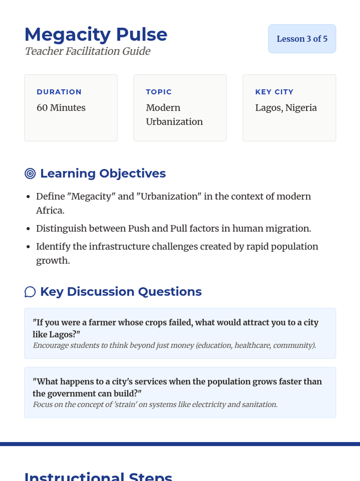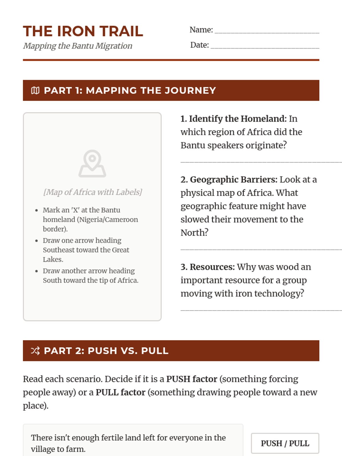 A comprehensive 6th-grade geography unit exploring the relationship between Africa's diverse environments and the human societies that inhabit them, covering historical migrations and modern urbanization.