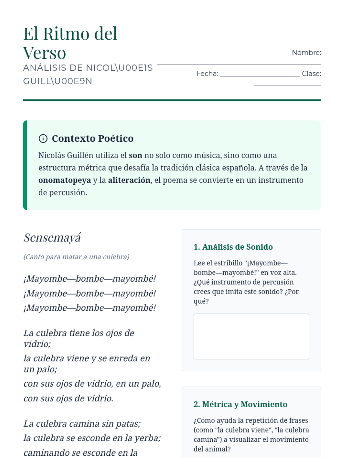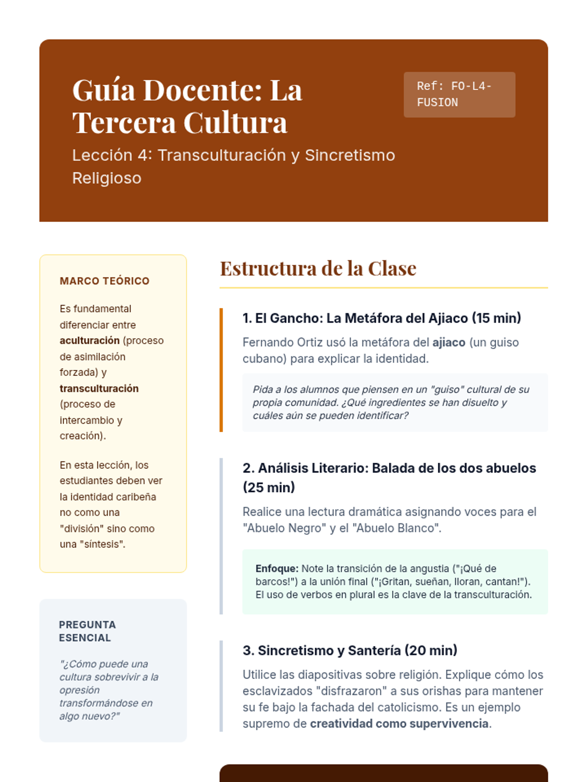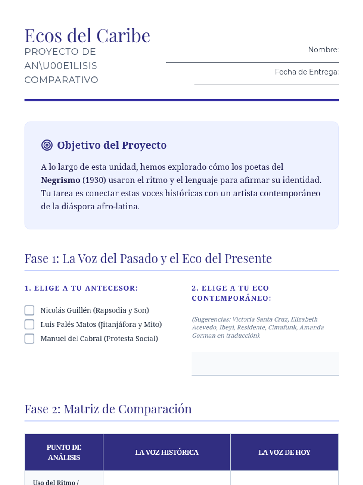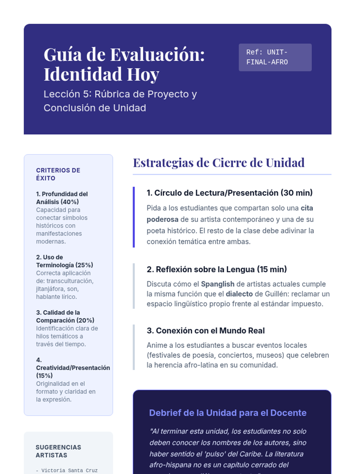 A comprehensive 12th-grade Advanced Spanish sequence exploring the Afro-Hispanic literary tradition in the Caribbean, focusing on the Negrismo movement, identity, resistance, and the concept of transculturation.