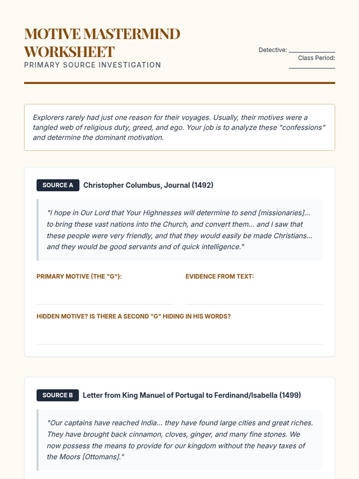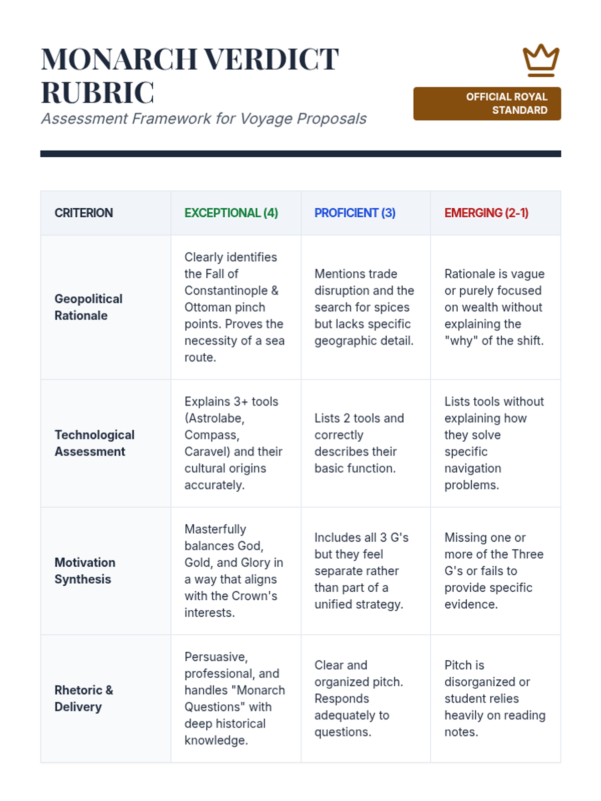 A 10th-grade history sequence examining the geopolitical, technological, and ideological drivers behind the European Age of Exploration, focusing on the search for new maritime routes to Asia.