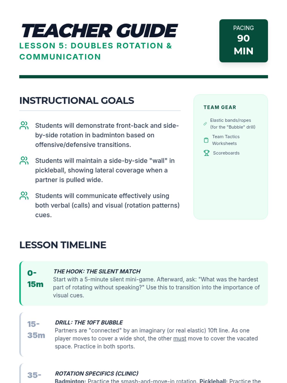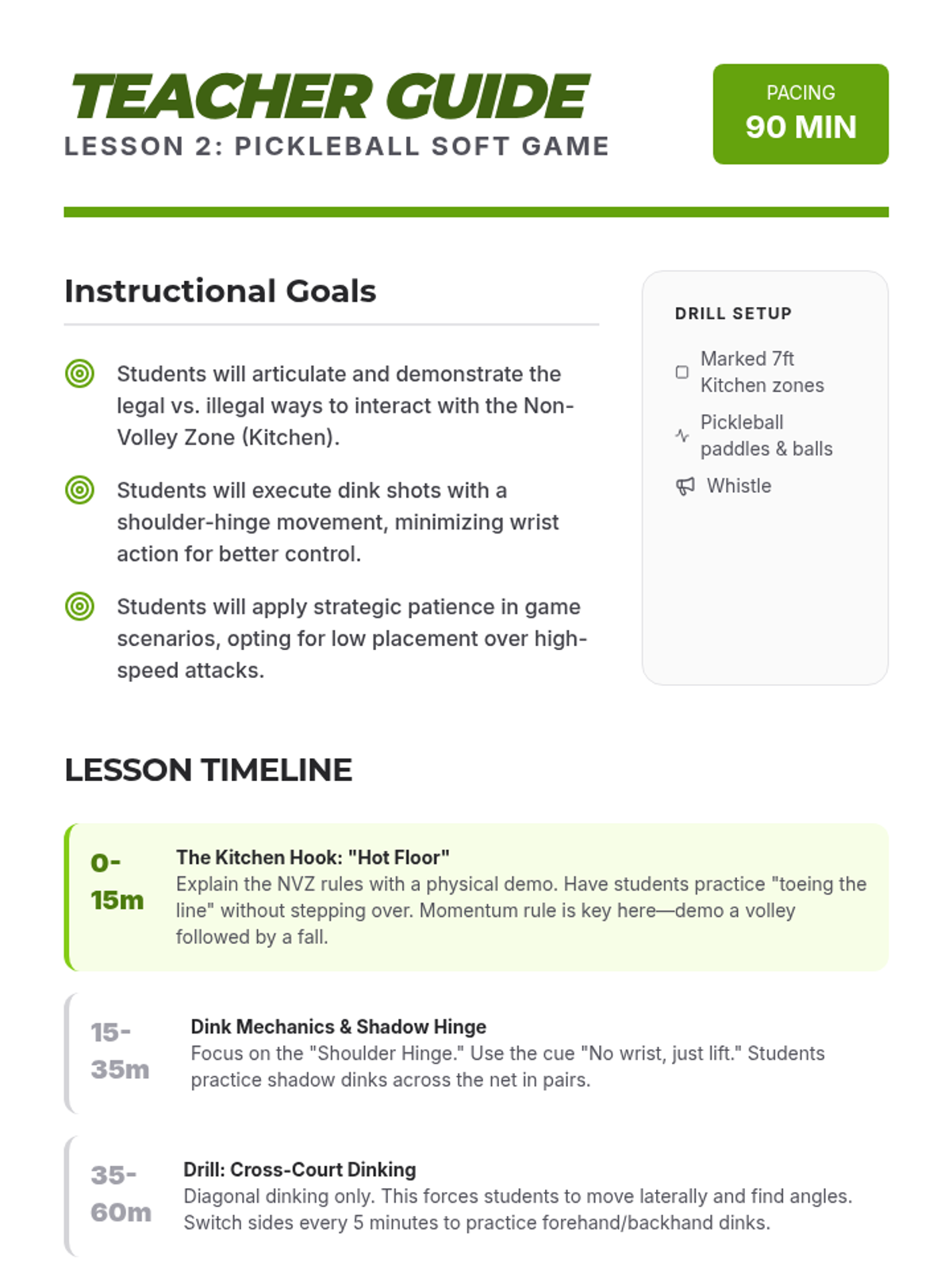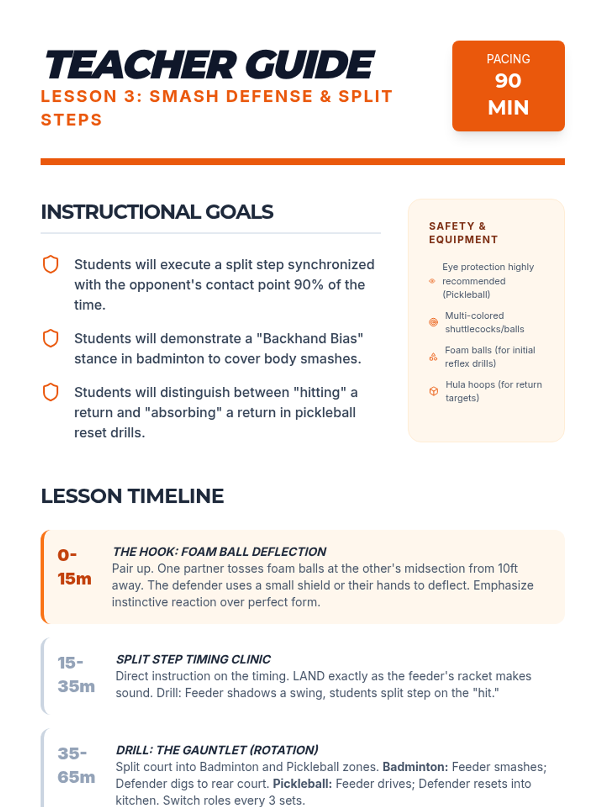 This sequence targets fast-twitch reflexes and movement patterns for badminton and pickleball, focusing on spatial demands, tactical reaction times, and the transition from skill-building to complex doubles play.
