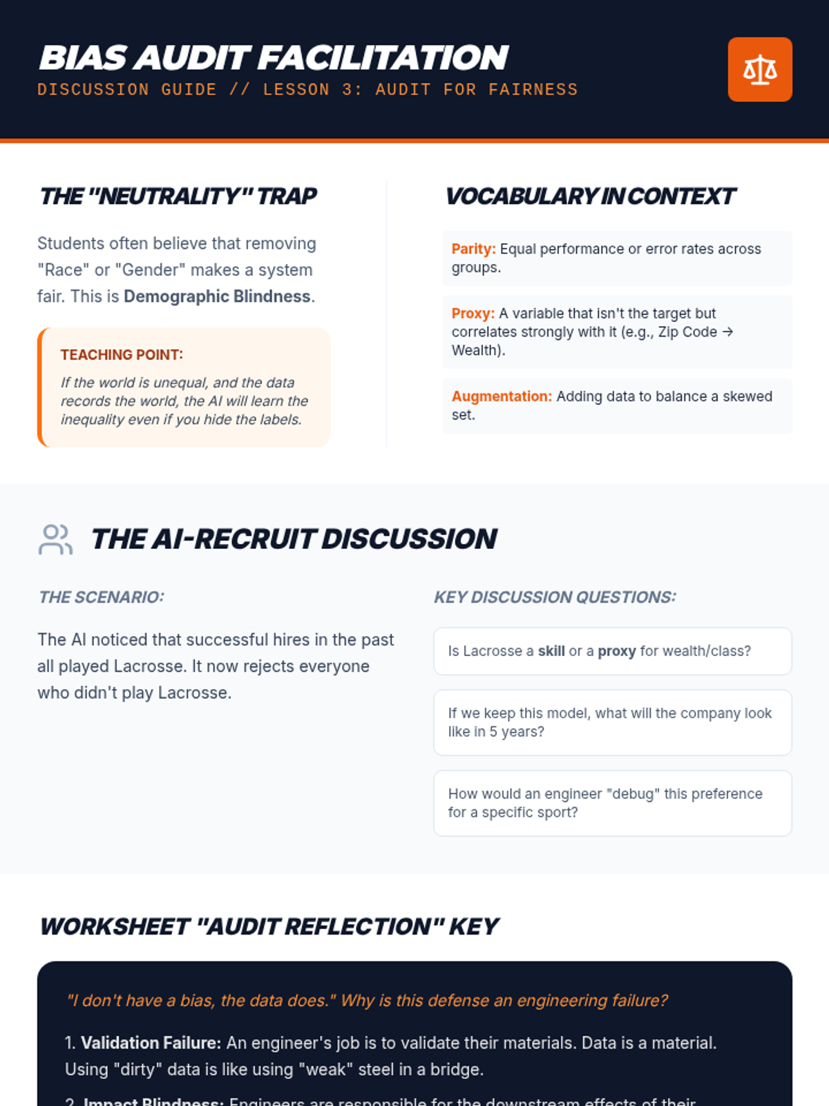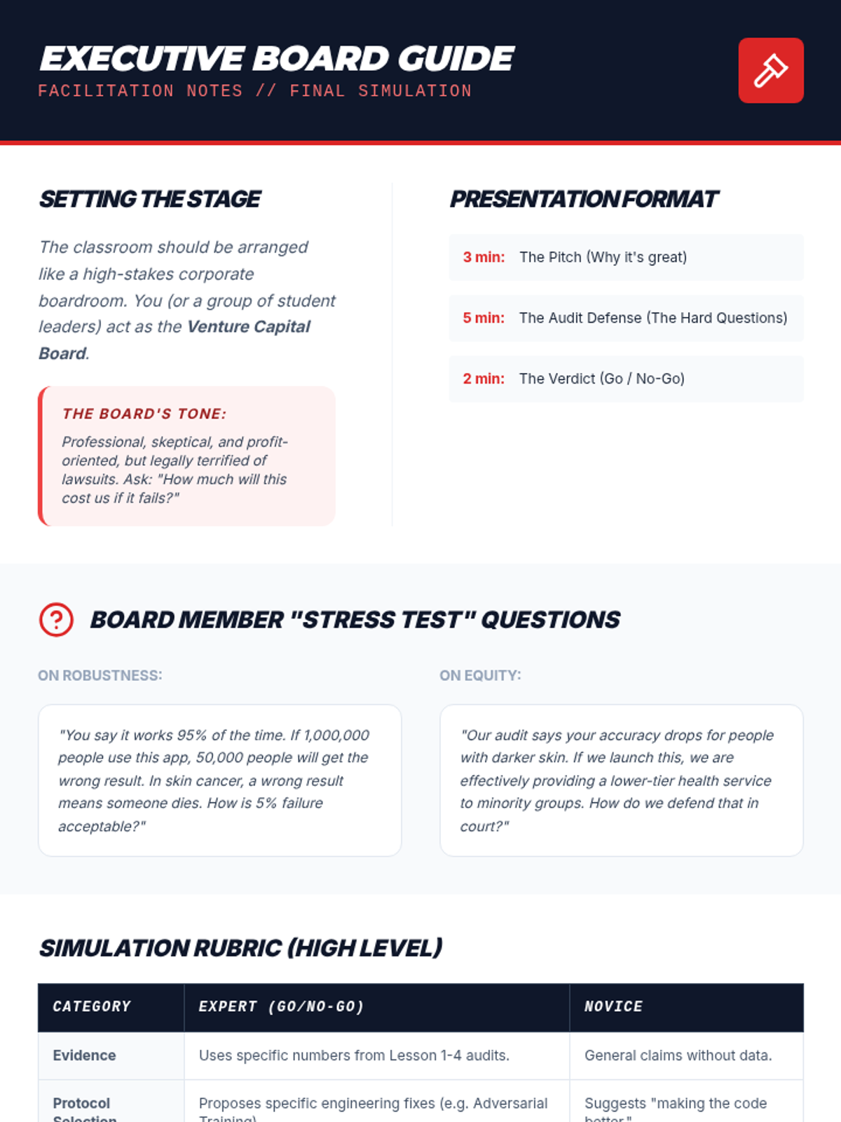 This sequence explores the quality assurance and ethical compliance side of AI engineering. Students act as AI Auditors, performing stress tests, scalability analysis, bias audits, and risk assessments to determine if AI systems are ready for real-world deployment.