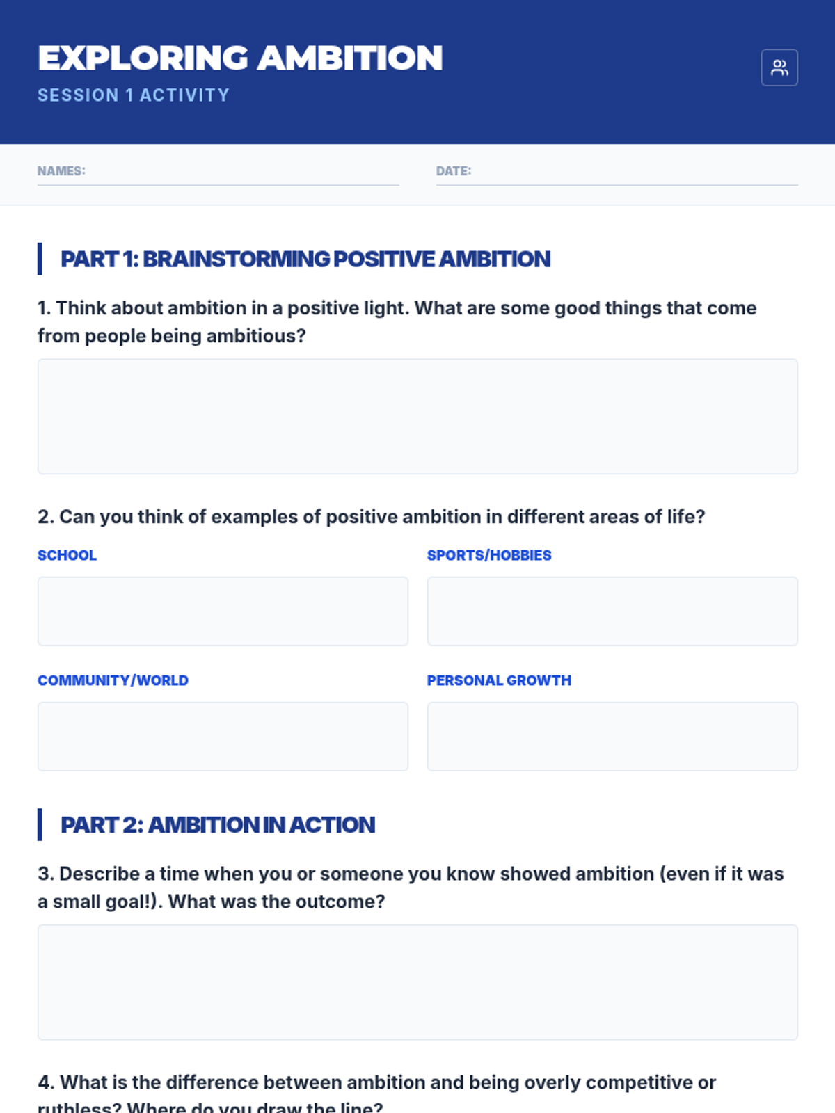 An 8-week curriculum designed for 9th-grade boys to explore their unique identity, challenge social conformity, and develop healthy modes of self-expression. Through the lens of 'blueprints,' students will map out their authentic selves and learn to navigate social pressures with confidence.