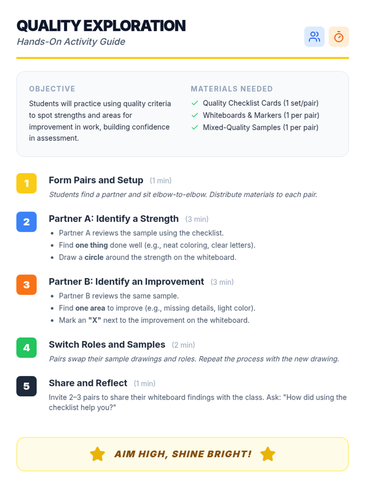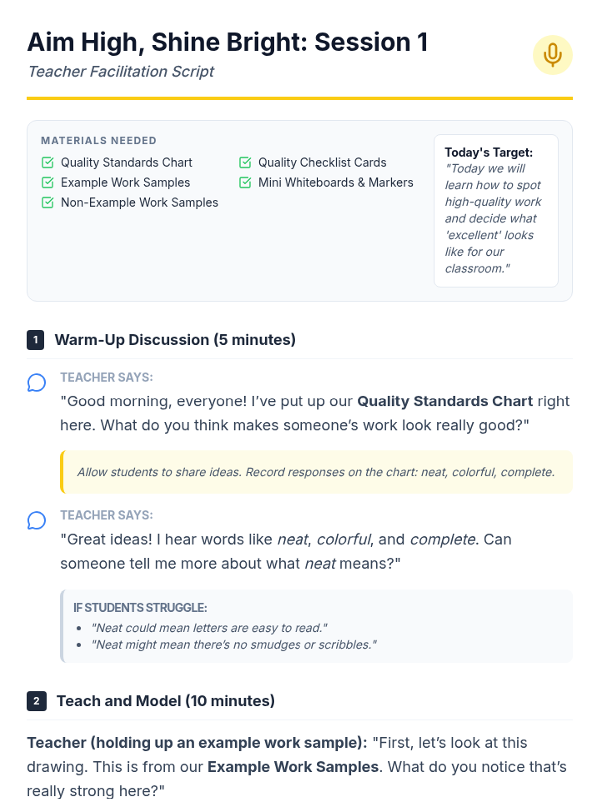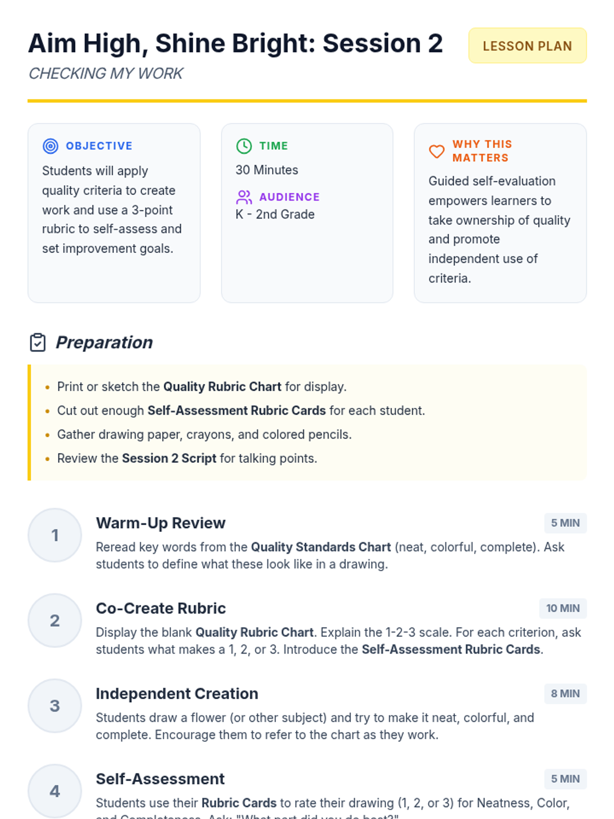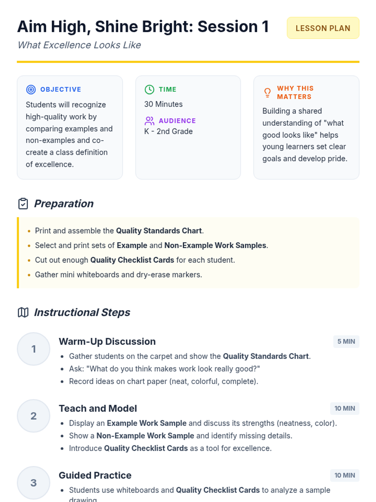 A three-part series for K-2 students focused on setting quality standards, understanding excellence, and practicing revision to build pride and self-esteem in their work.
