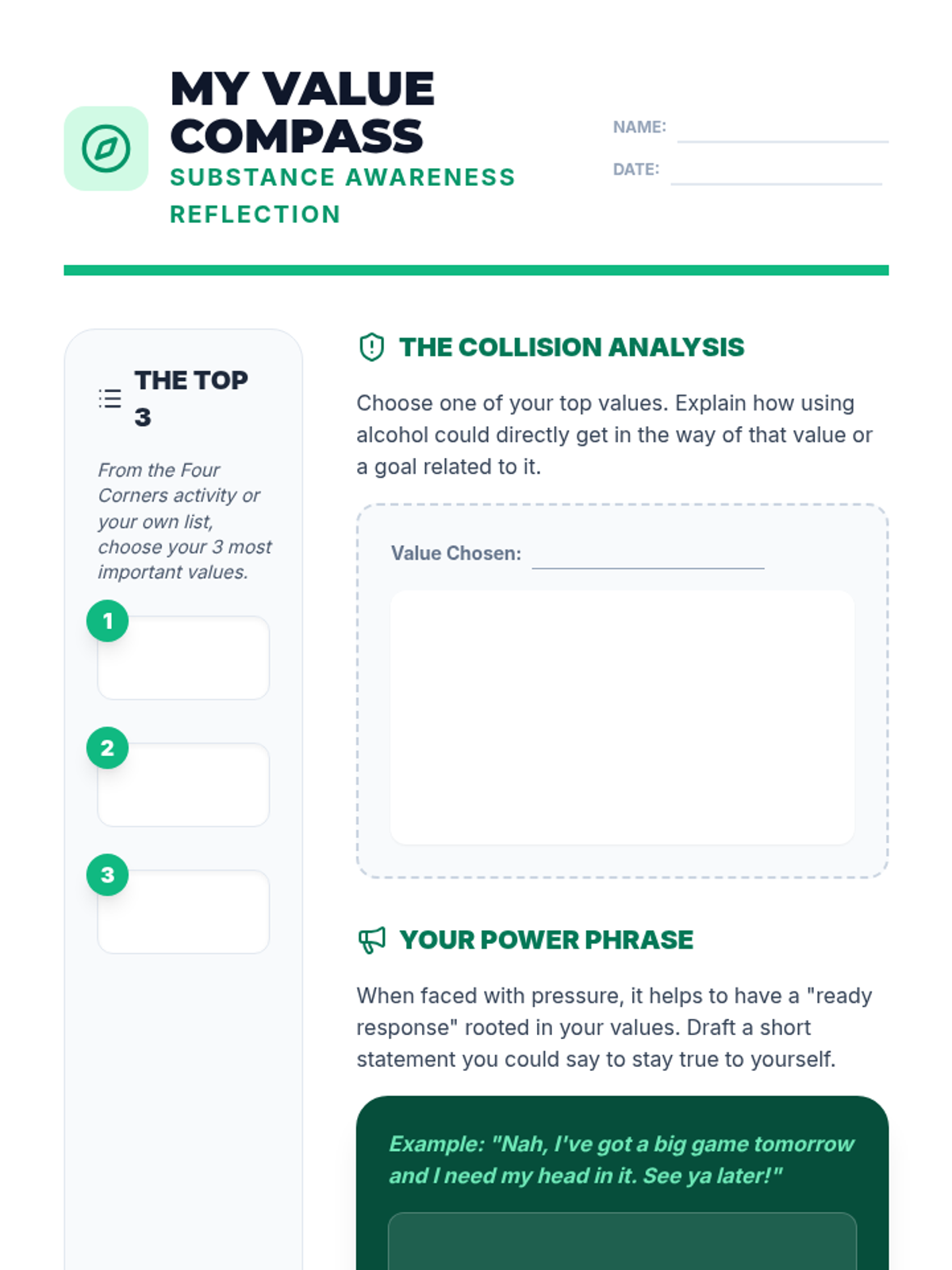 This project-based sequence empowers 7th-grade students to use the DECIDE model for making healthy choices and culminates in a student-led advocacy campaign promoting alcohol-free lifestyles. Students bridge personal values with community data to become influential peer advocates.