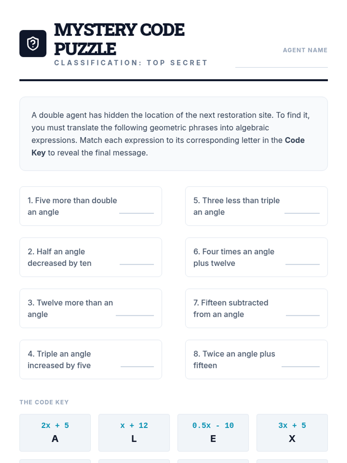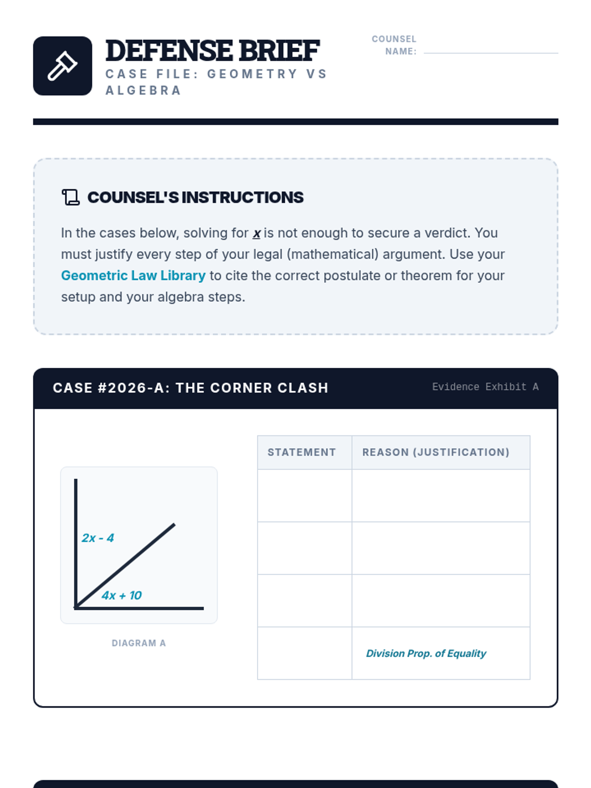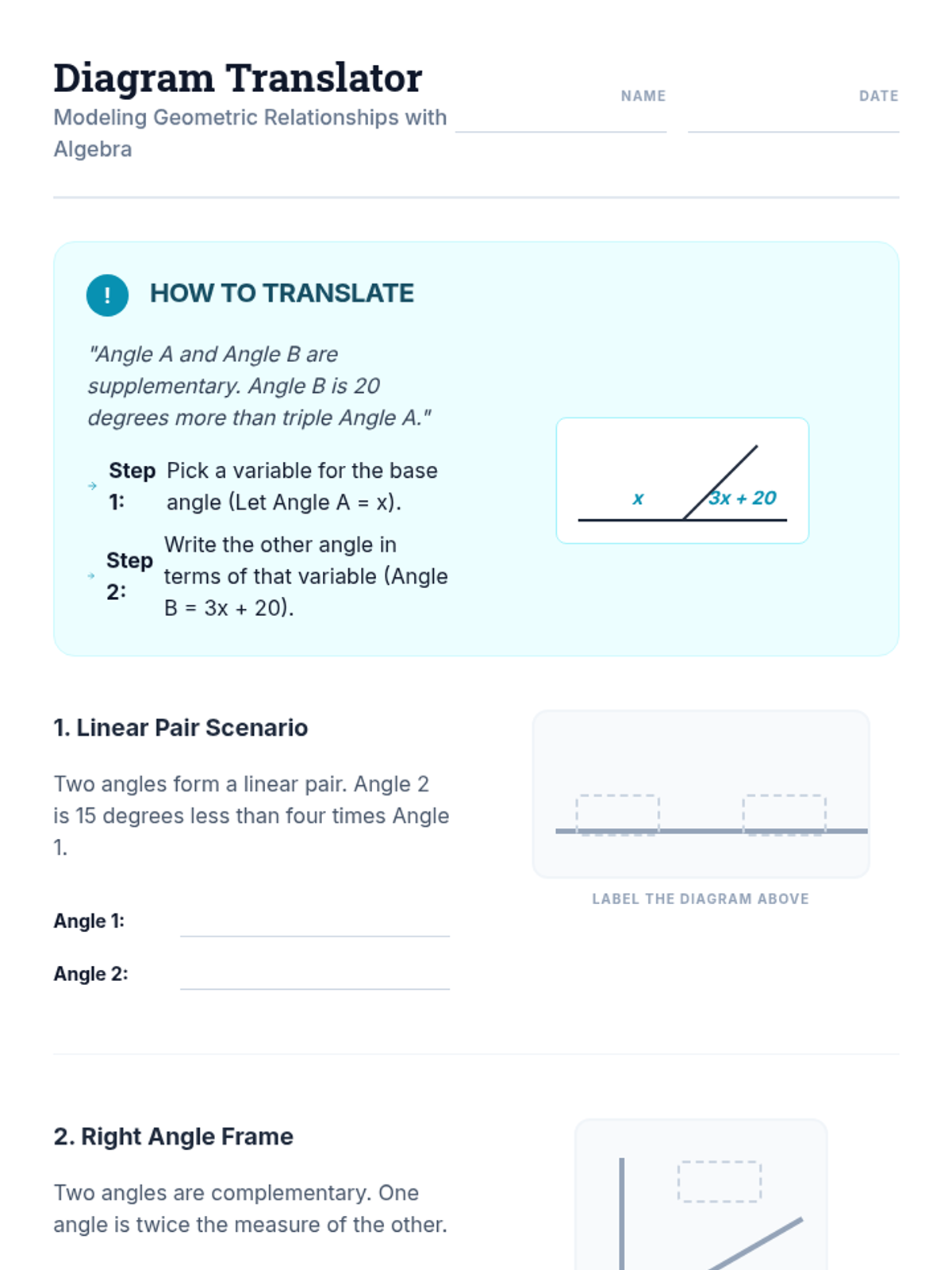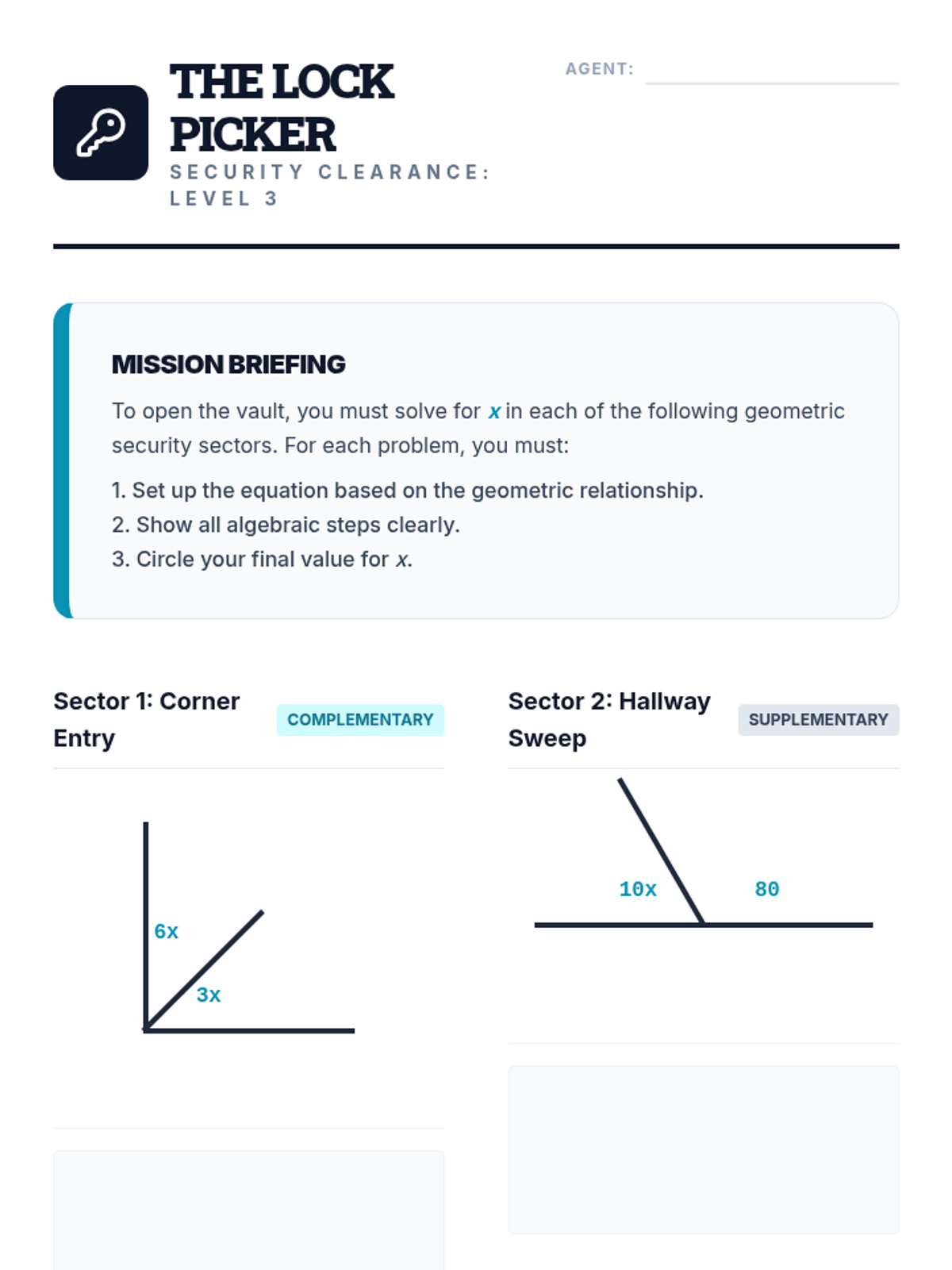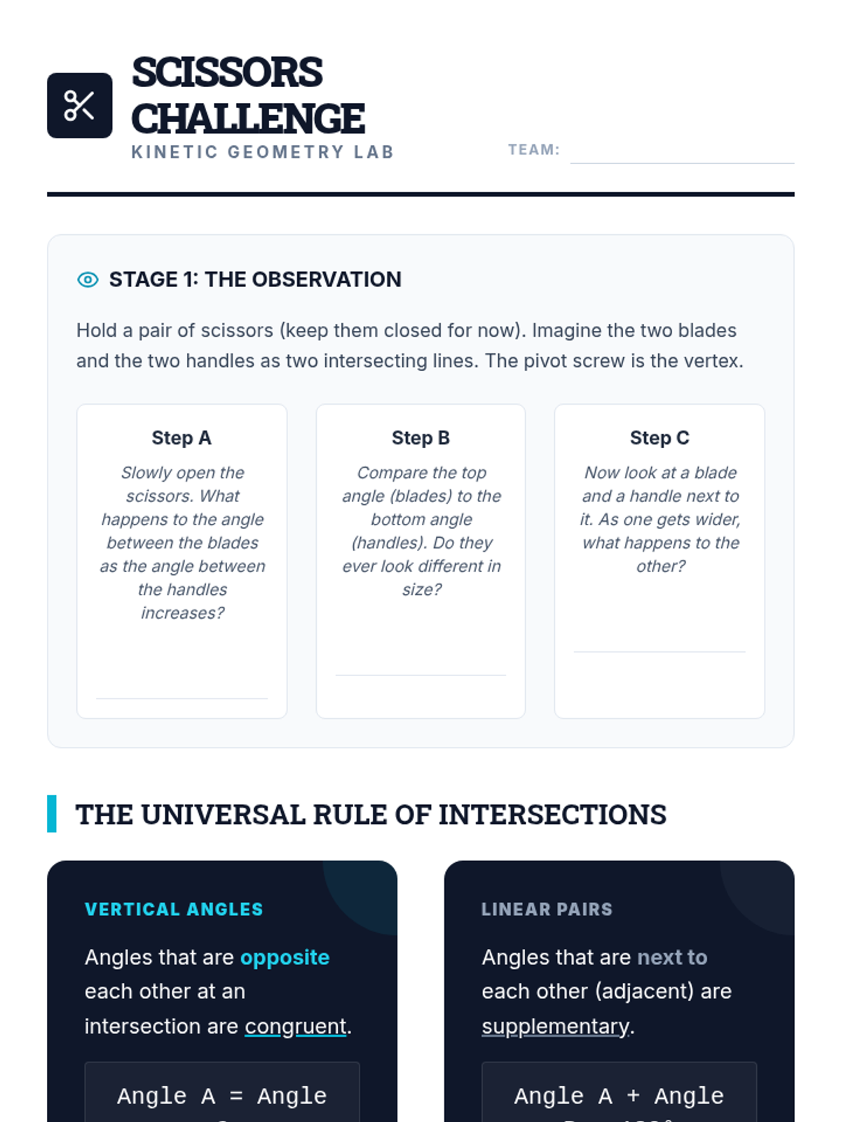 A high school geometry sequence that bridges the gap between concrete angle measurement and abstract algebraic reasoning. Students move from measuring physical angles to modeling relationships with equations and justifying their logic through formal geometric theorems.