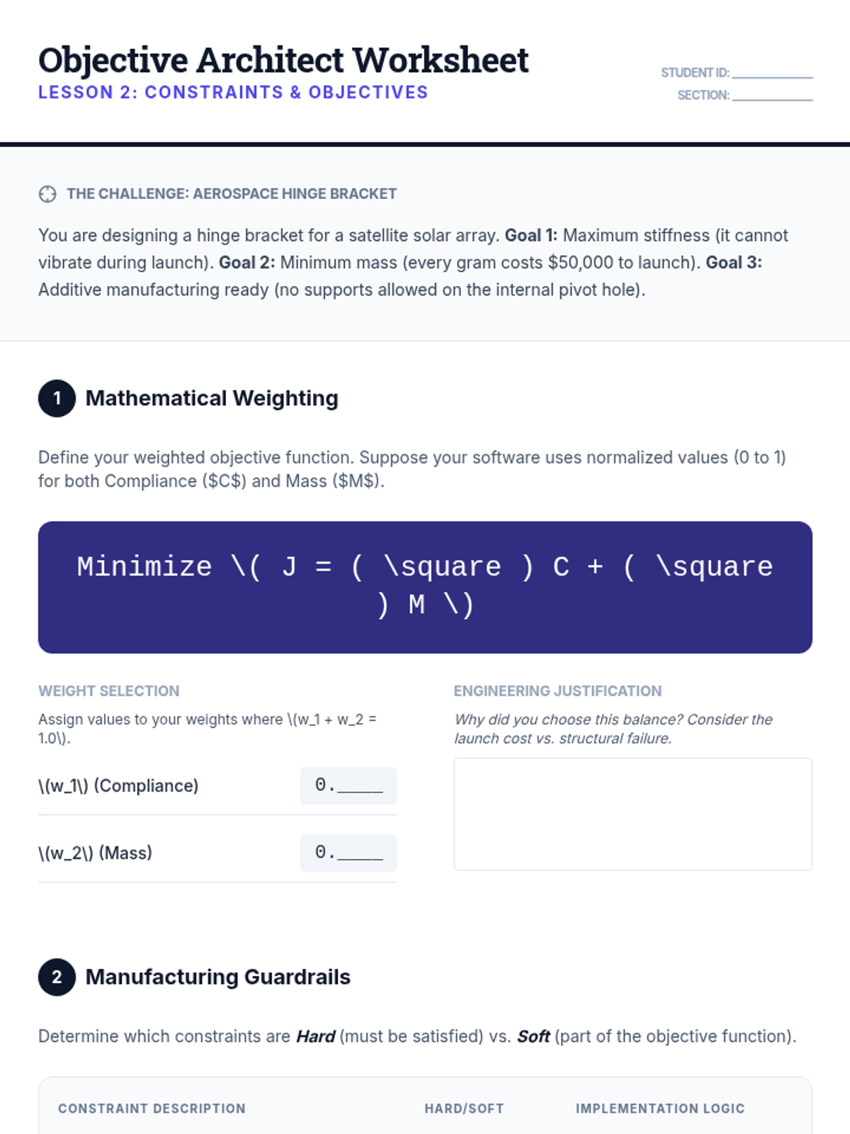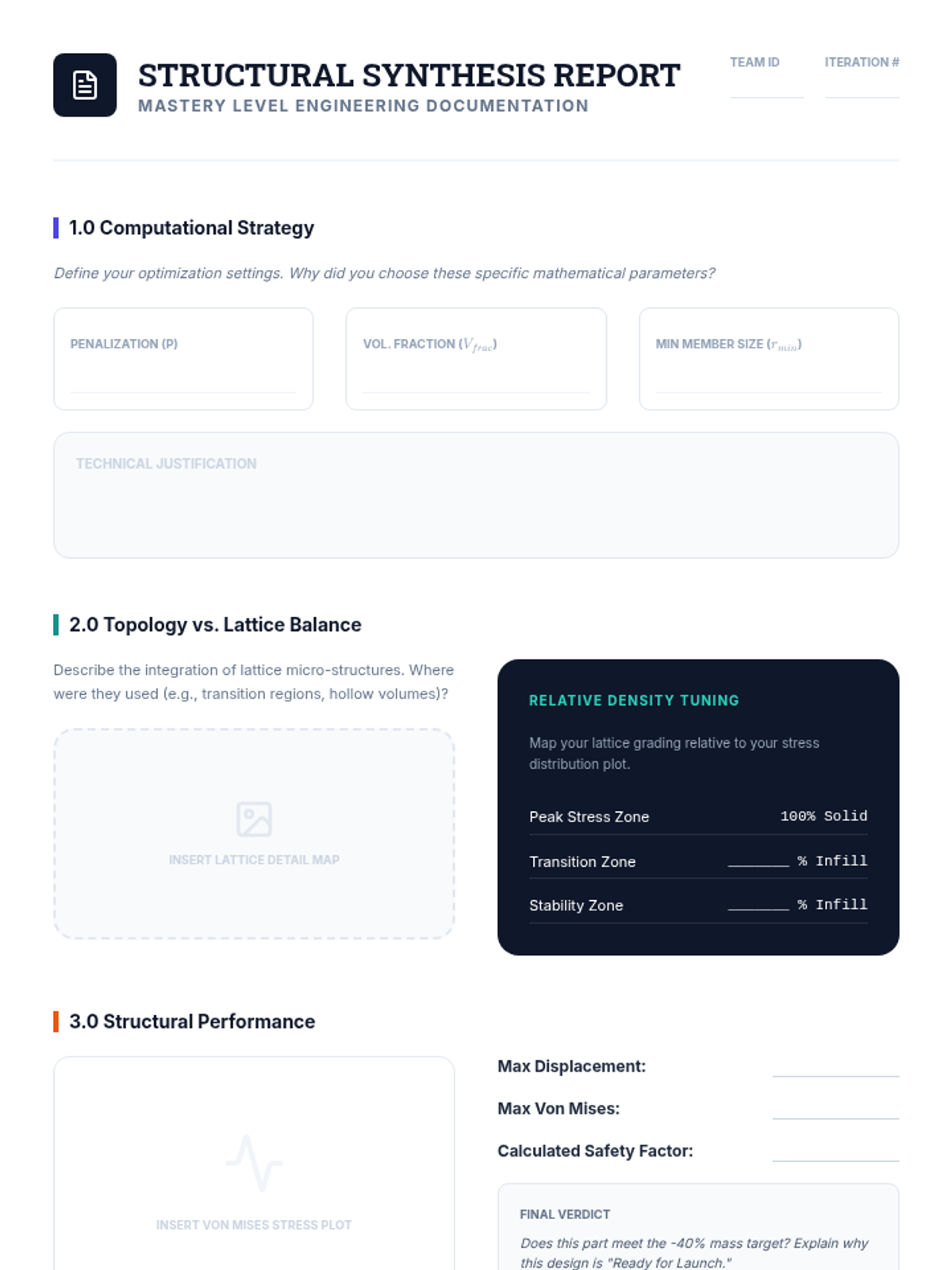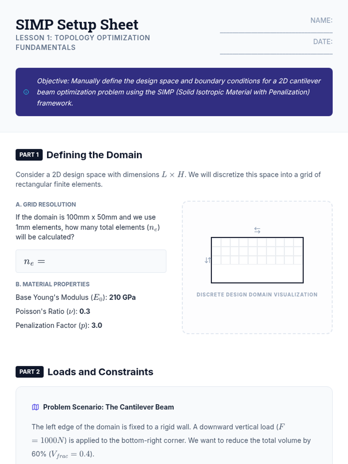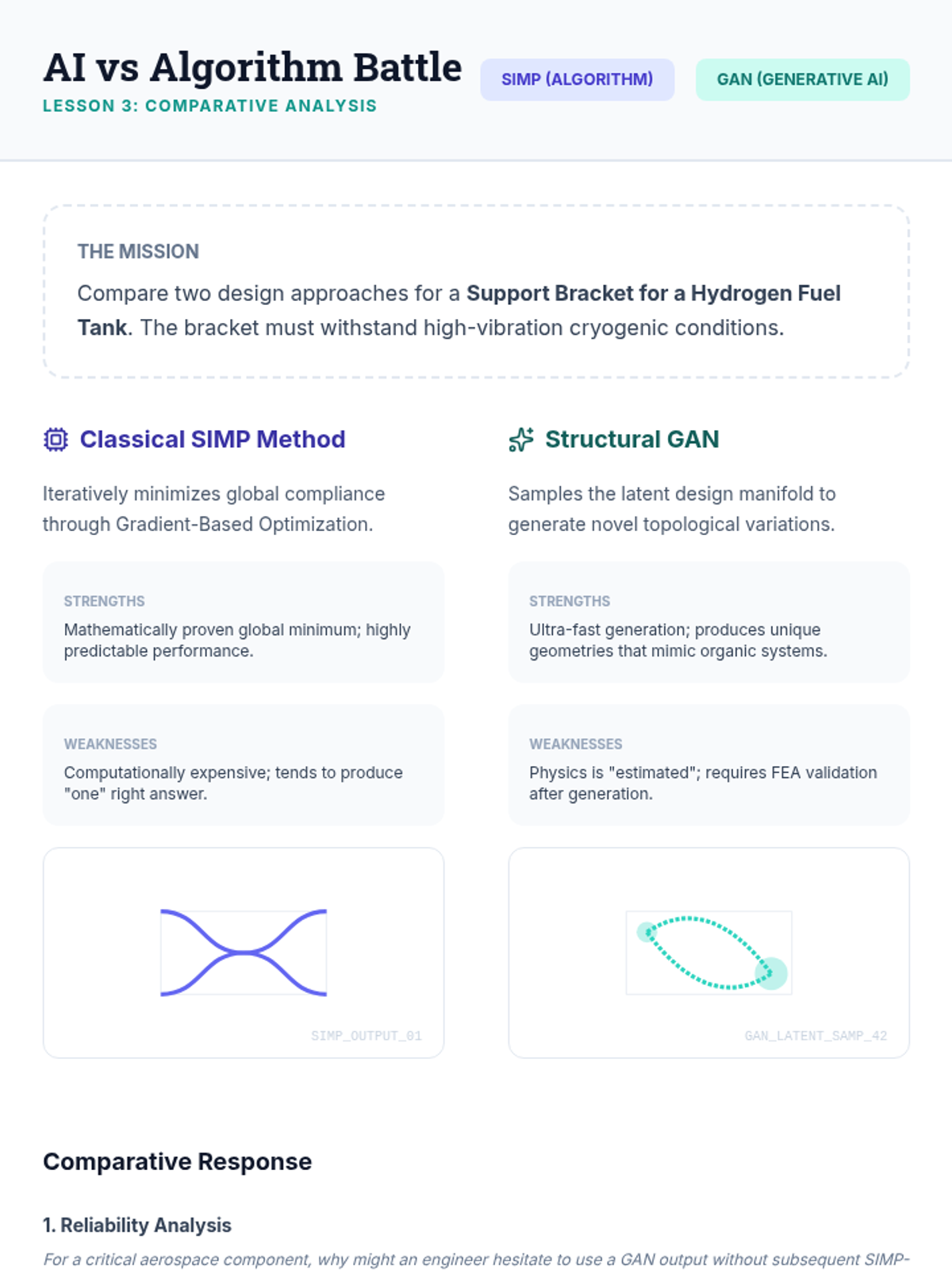 This sequence introduces undergraduate engineering students to algorithmic and generative structural design, moving from classical topology optimization to modern AI-driven generative models. Students learn to define design spaces, apply complex constraints, and utilize lattice structures to create high-performance, lightweight engineering components.