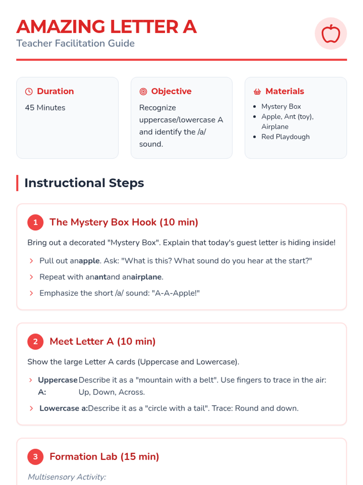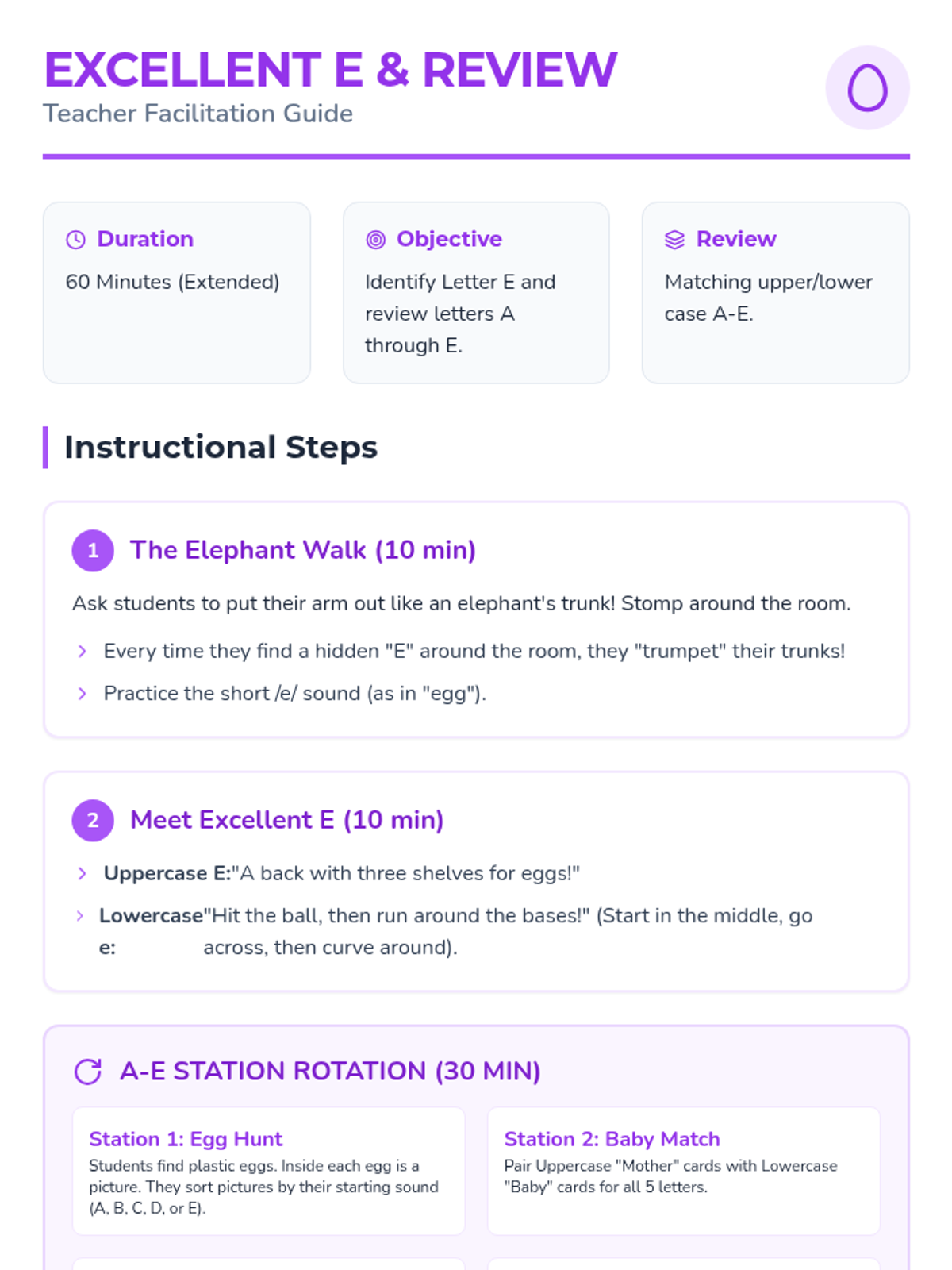 This foundational ELA sequence introduces Pre-K students to the letters A through E. Through multisensory activities, students develop letter recognition, phonemic awareness, and fine motor skills by exploring shapes, sounds, and formation techniques for the first five letters of the alphabet.