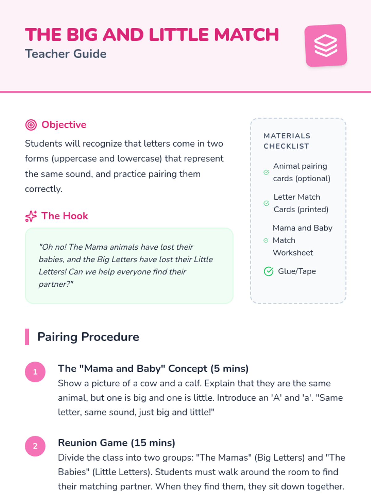 A foundational Pre-K sequence focused on distinguishing letters from shapes, matching uppercase and lowercase forms, and connecting visual symbols to their initial sounds through play and exploration.