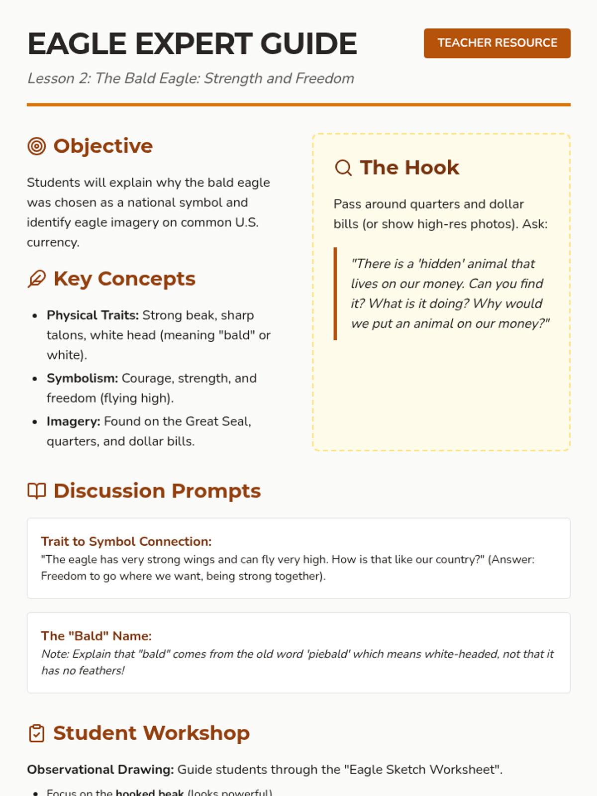 In this inquiry-driven sequence, students explore the concept of symbolism by investigating the most prominent American national icons. They learn to decode meanings behind colors, numbers, and animals, culminating in designing a symbol for their own classroom community.