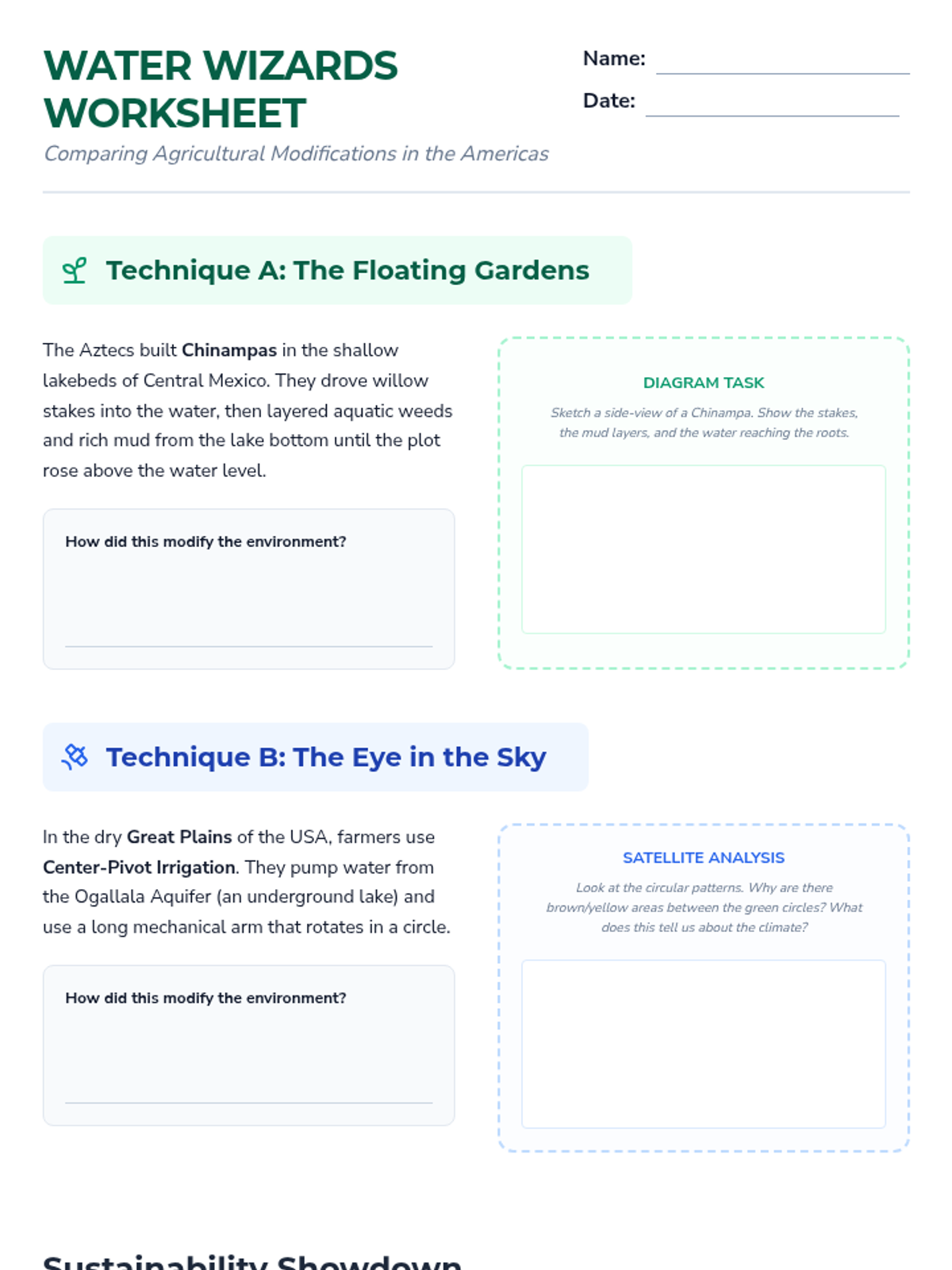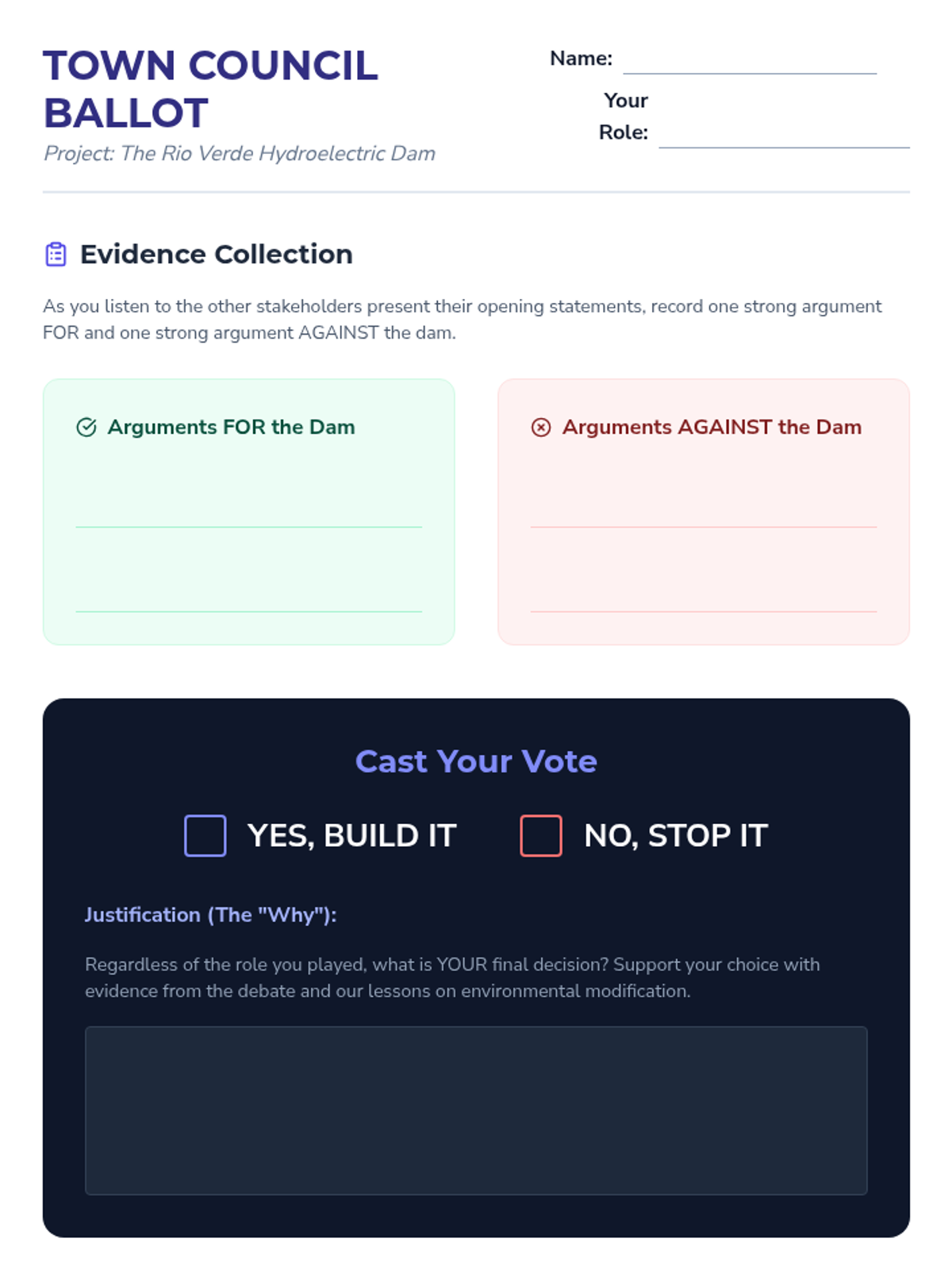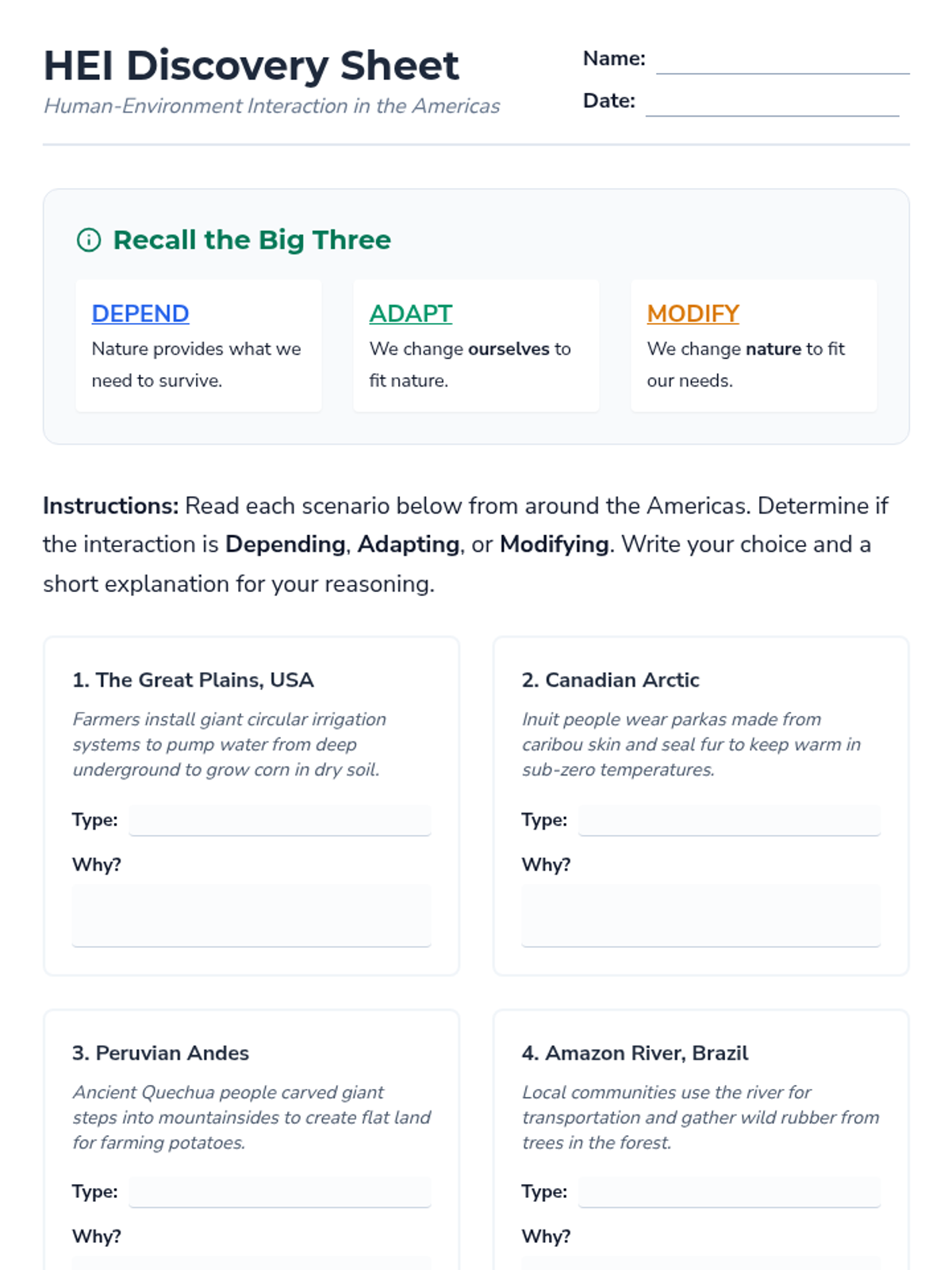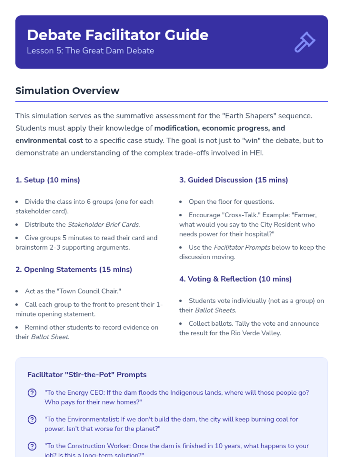 A multi-day project sequence where students design their own nation, exploring concepts of geography, governance, economics, and civil rights.