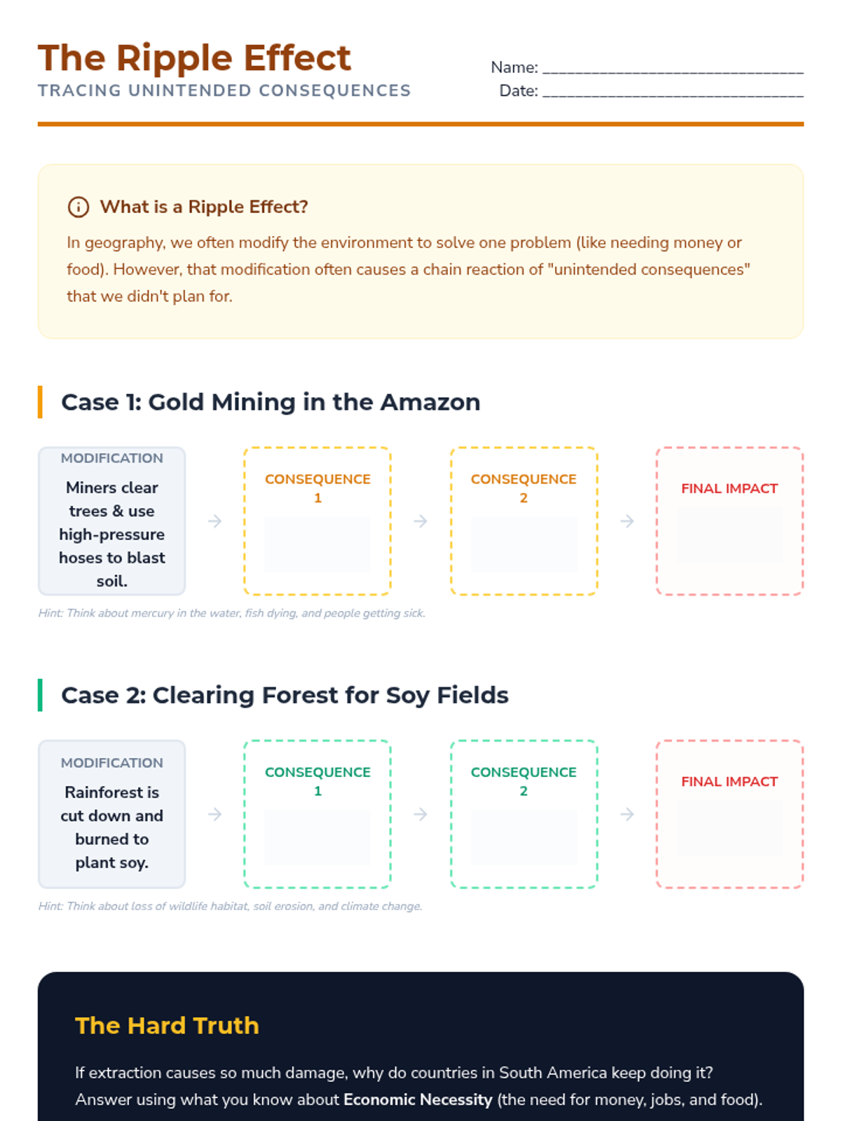 This sequence explores how humans in the Americas interact with their environment through adaptation and modification, focusing on the economic benefits and environmental costs of major engineering and resource extraction projects.