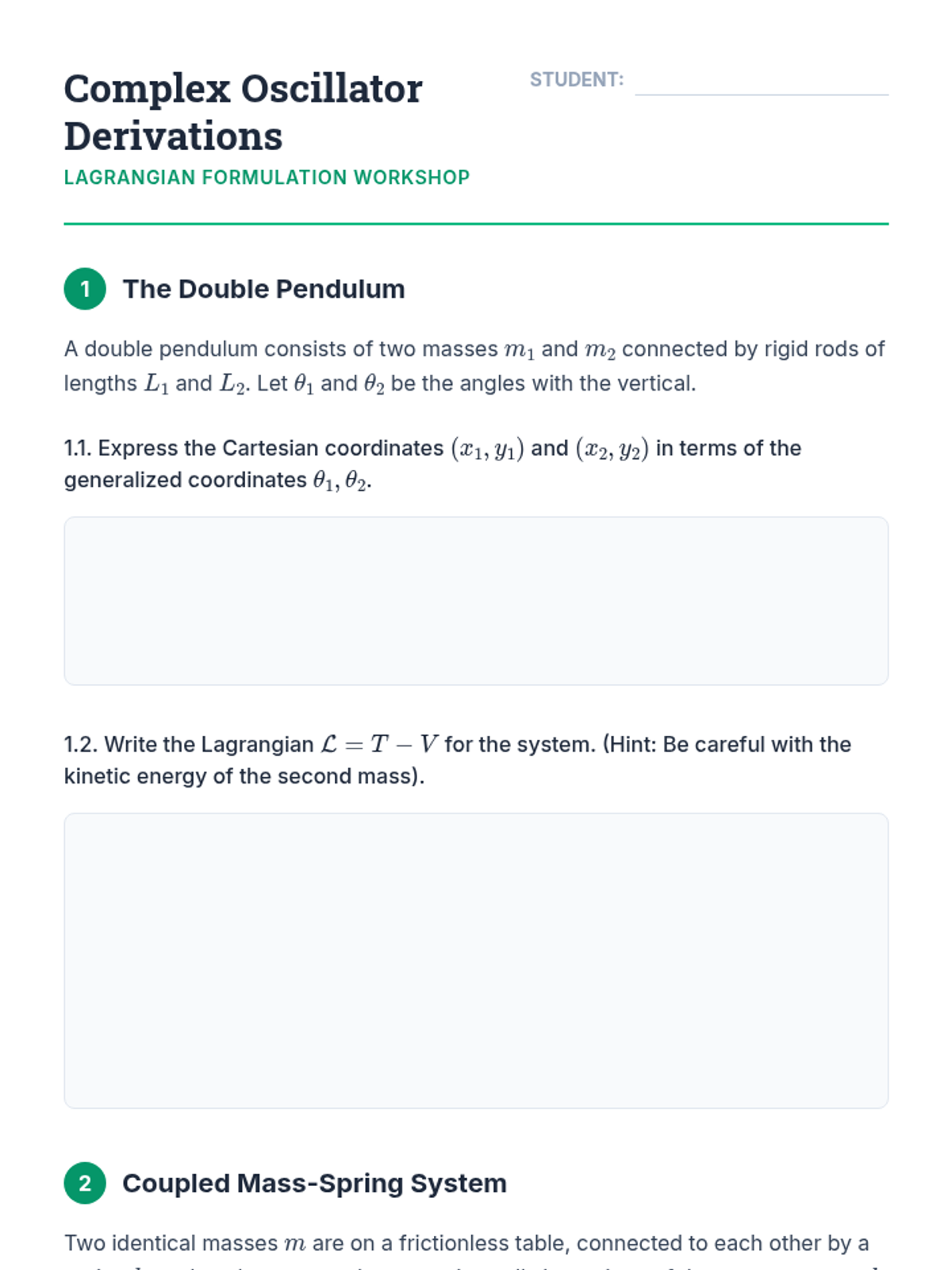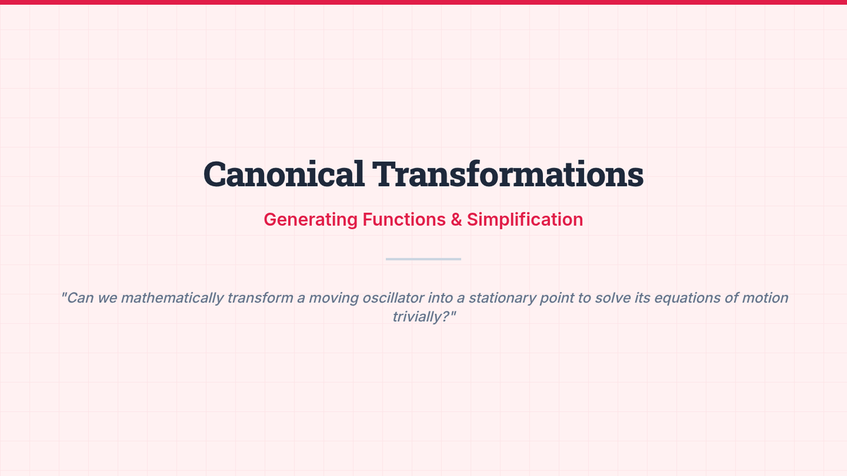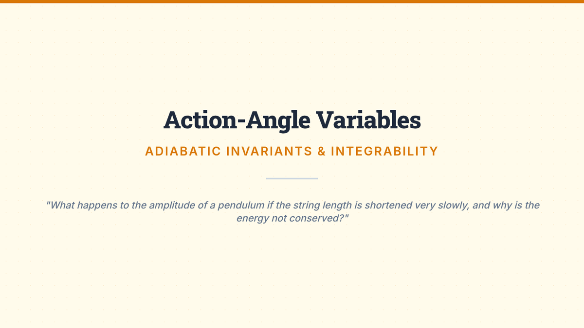 An advanced graduate-level exploration of oscillatory systems through the lens of Lagrangian and Hamiltonian mechanics, phase space topology, and action-angle variables. Students move from geometric interpretations of stability to powerful analytical techniques for integrable systems.