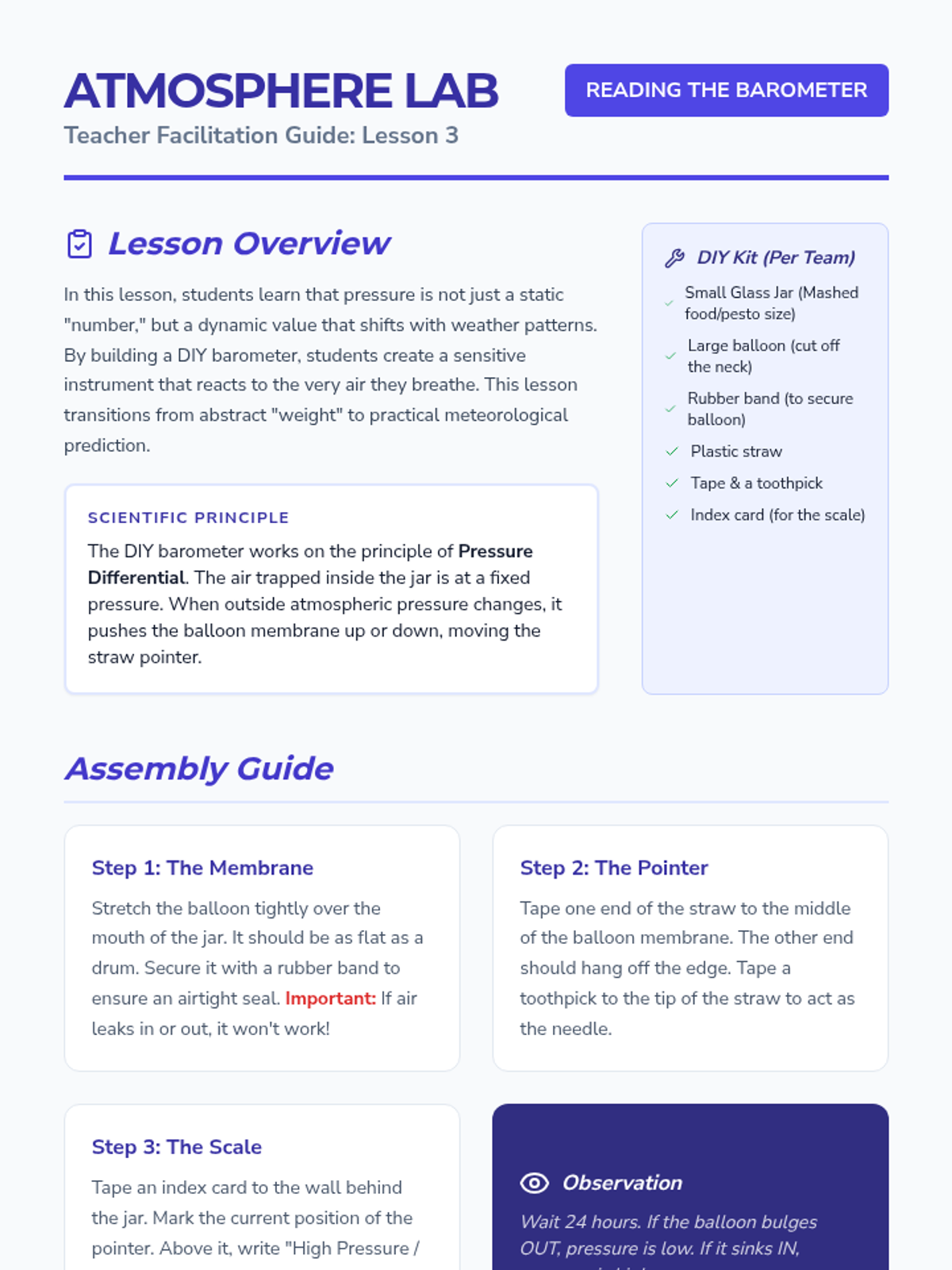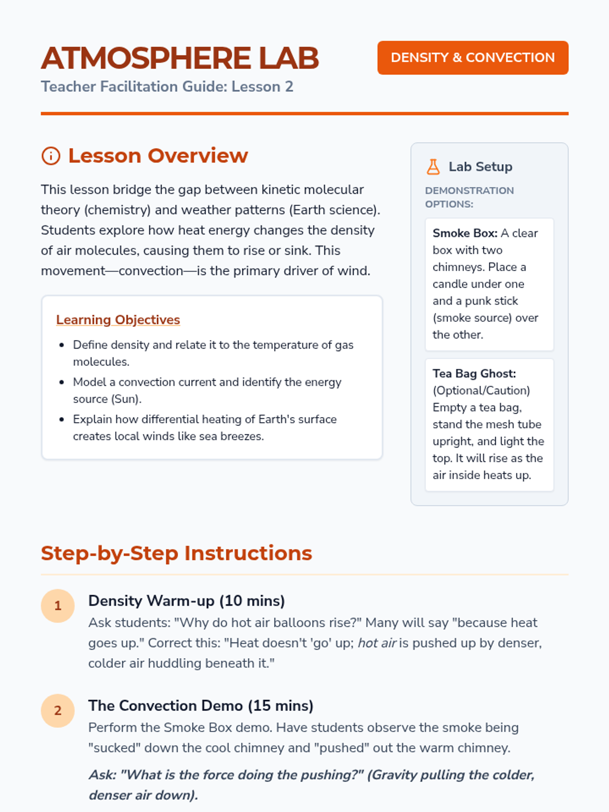 This sequence connects micro-scale gas properties to macro-scale atmospheric science, exploring how air pressure, gas density, and temperature drive global weather patterns.