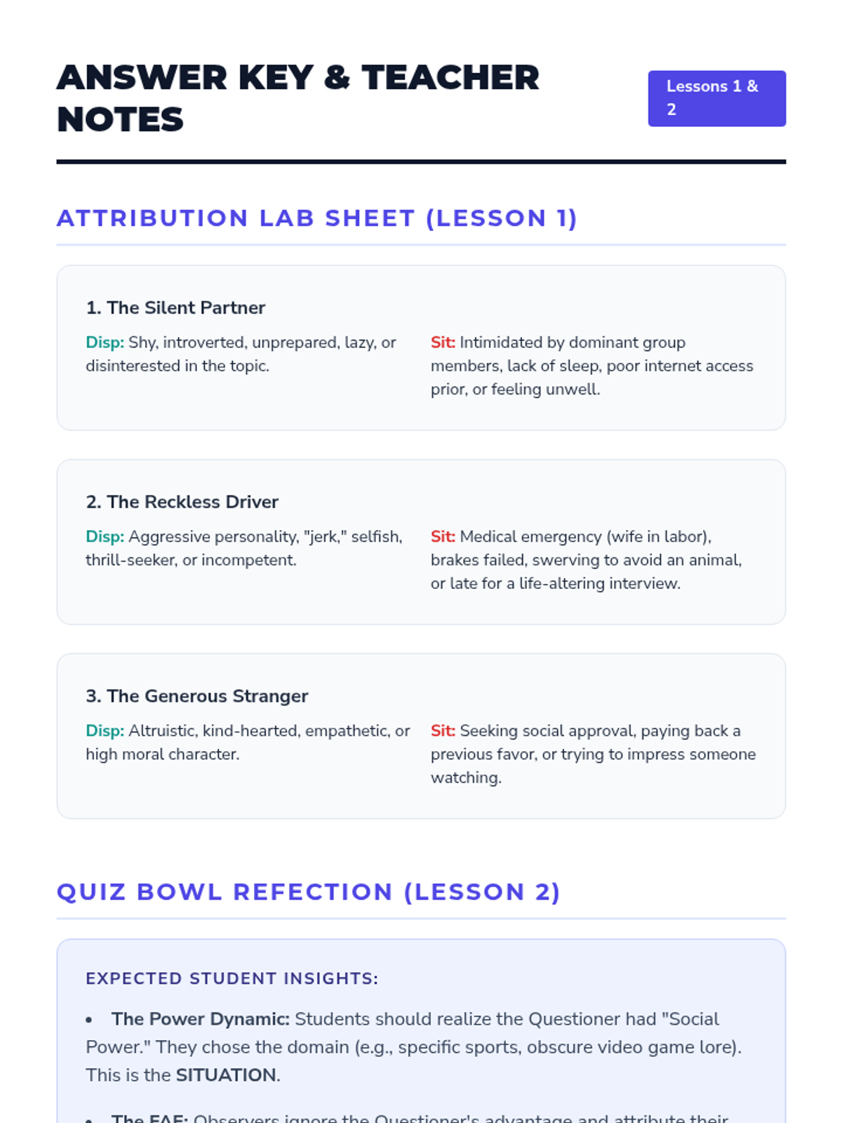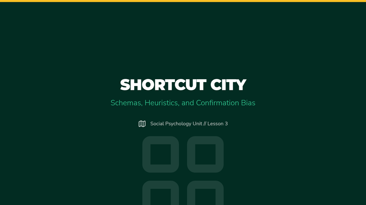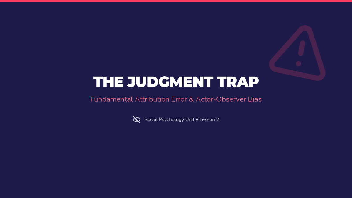 A comprehensive unit for 12th-grade psychology students exploring how internal mental frameworks and biases distort our perception of others. Students move from basic attribution theory to complex cognitive dissonance and conflict analysis.