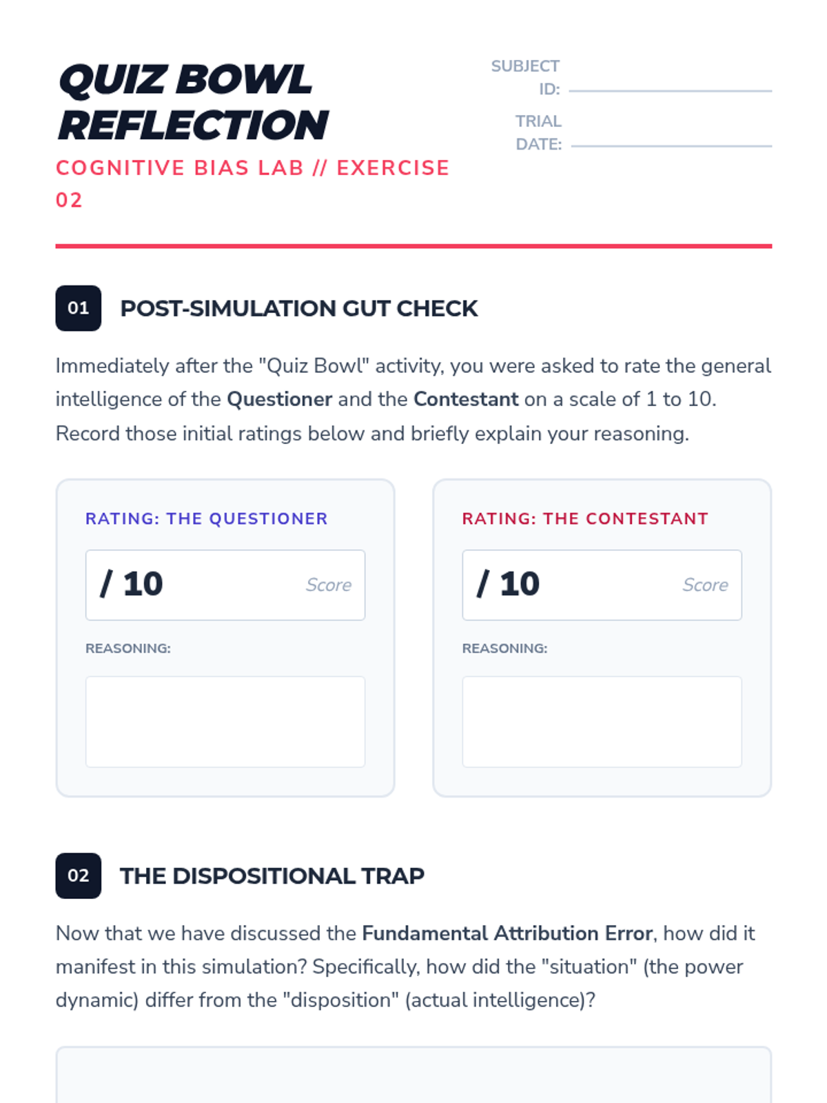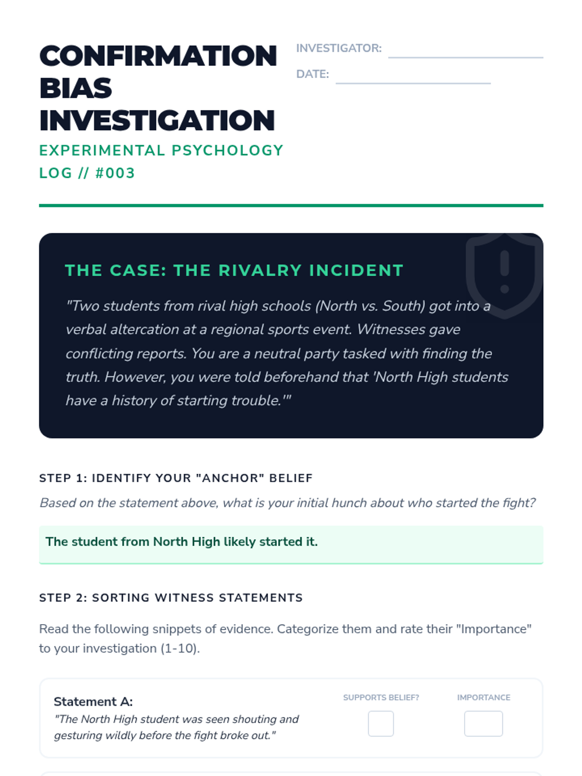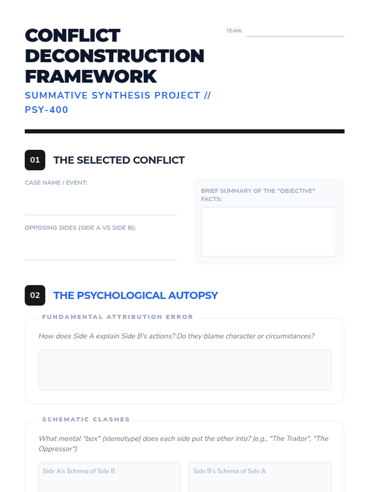 A comprehensive unit for 12th-grade psychology students exploring how internal mental frameworks and biases distort our perception of others. Students move from basic attribution theory to complex cognitive dissonance and conflict analysis.