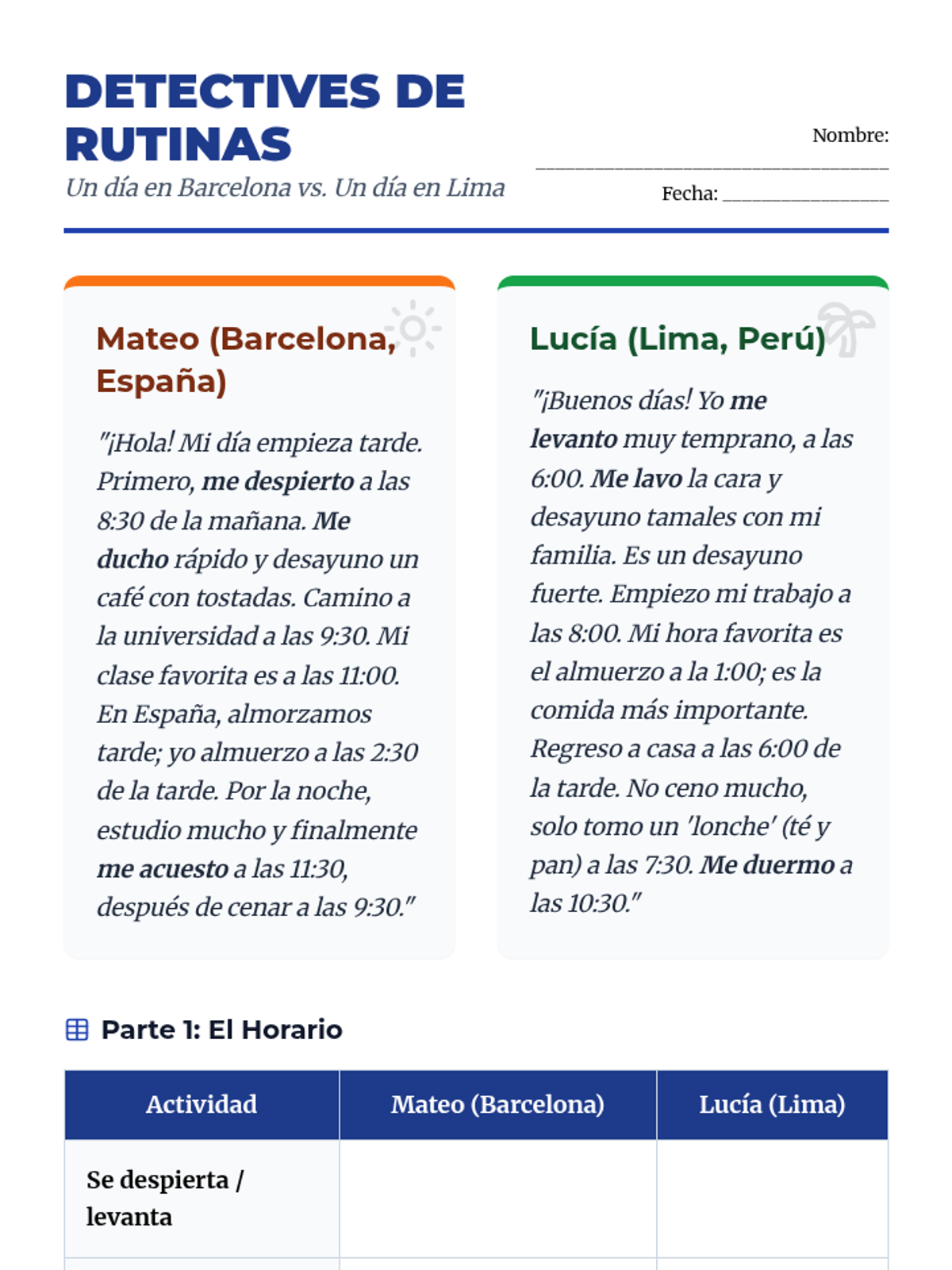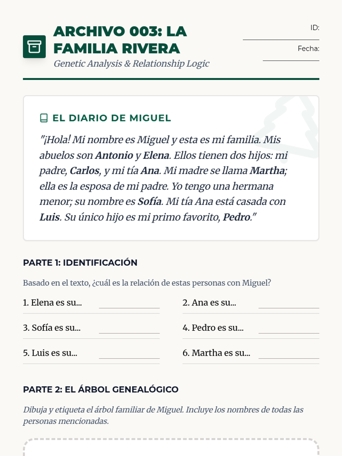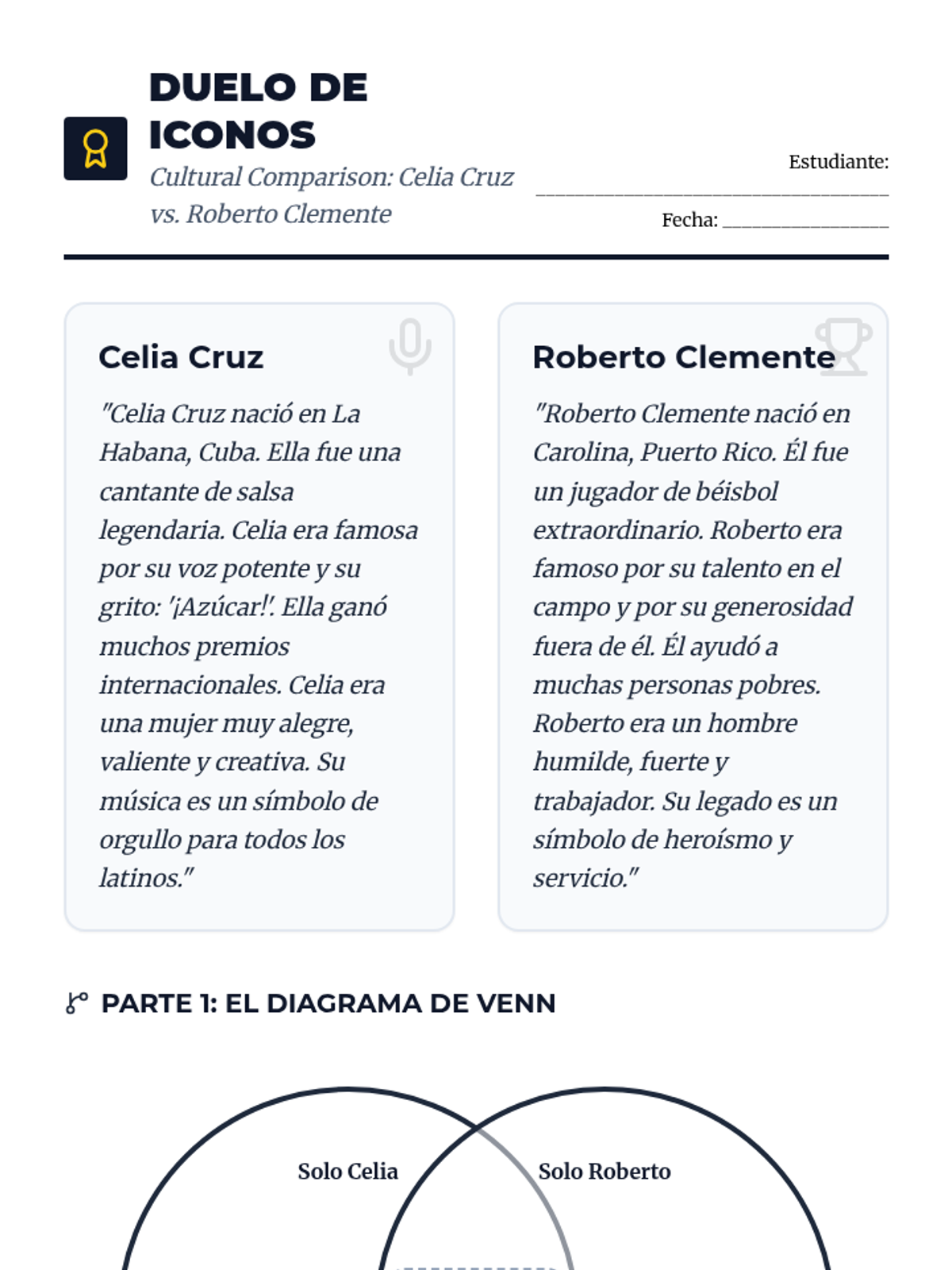 A beginner Spanish reading sequence that uses biographical narratives of historical and contemporary figures to teach grammar (ser/estar, reflexives, possessives) and cultural competence. Students progress from describing identity to analyzing life events and comparing cultural impacts.