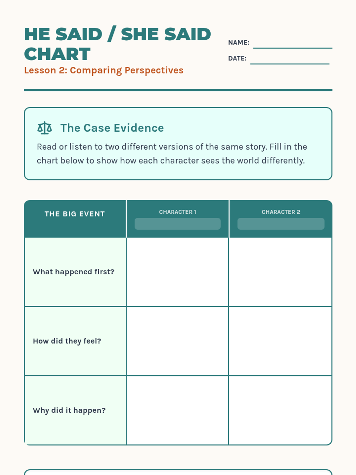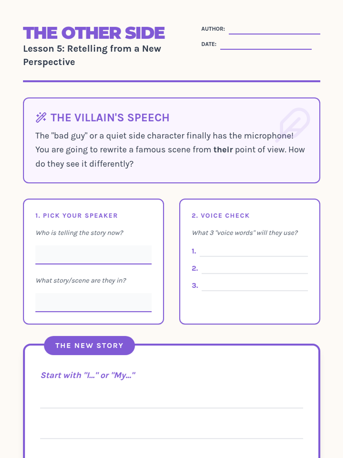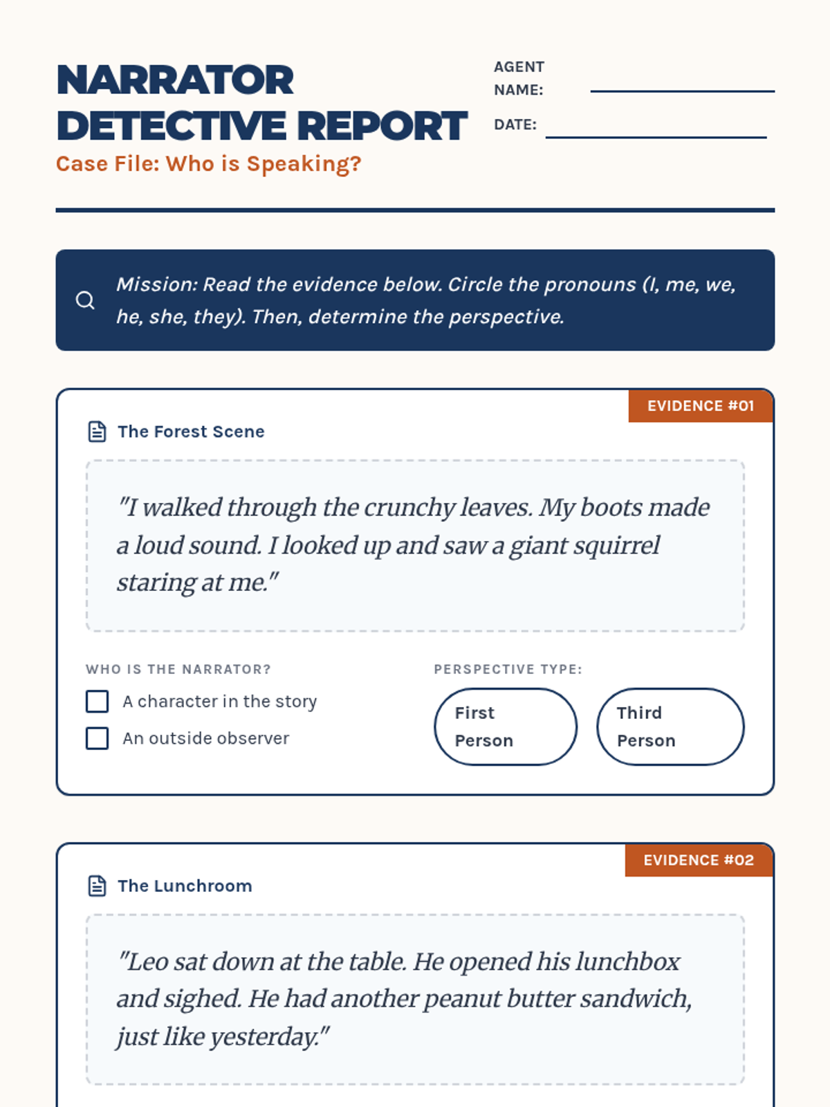 This sequence guides 2nd Grade students through the concept of narrative perspective. By investigating 'Who is speaking?', comparing conflicting accounts, and role-playing different characters, students learn how a narrator's viewpoint shapes a story's details and tone.