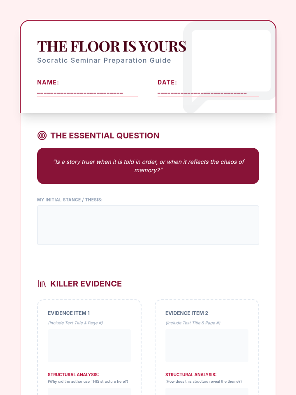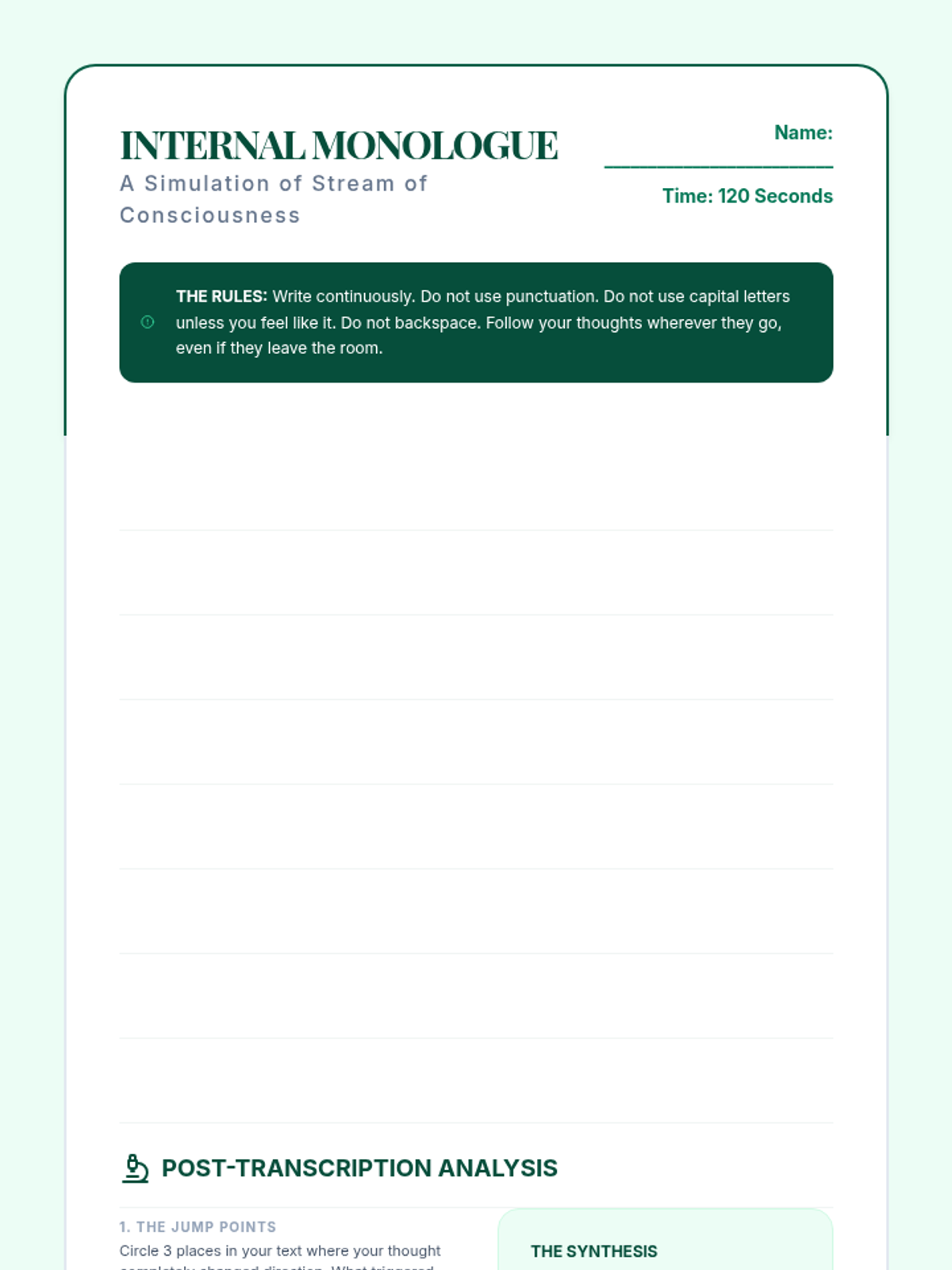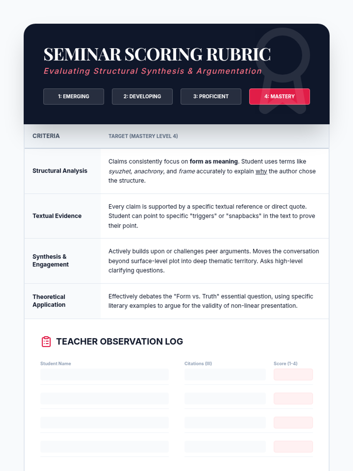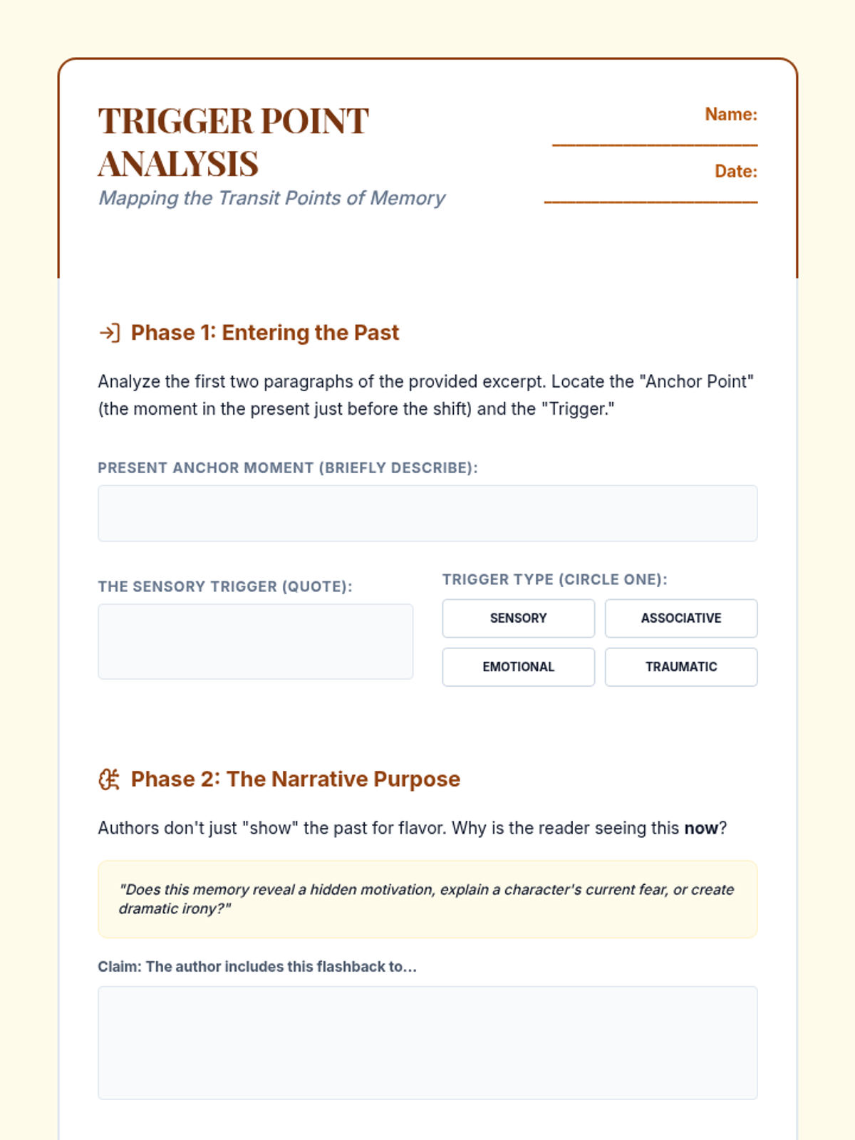 This advanced 12th-grade sequence explores the manipulation of chronological time in literature. Students will analyze non-linear plots, flashbacks, frame narratives, and stream-of-consciousness techniques to understand how structural form reinforces thematic depth.
