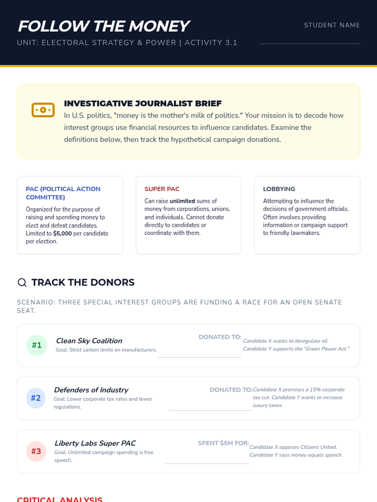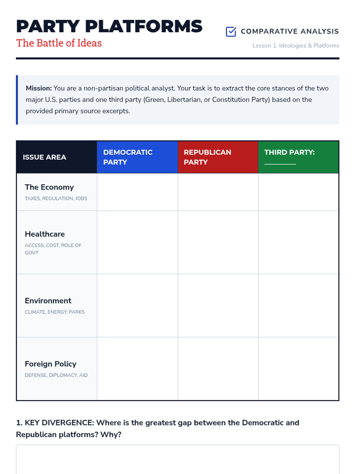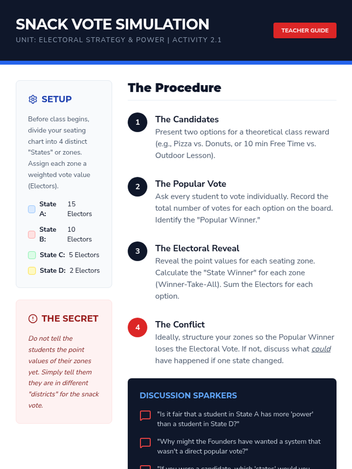 This sequence immerses 9th-grade students in the mechanics and strategy of the American electoral system. Through a blend of simulations and critical analysis, students examine political ideologies, the Electoral College, campaign finance, and polling to understand how structural mechanisms shape democratic outcomes.