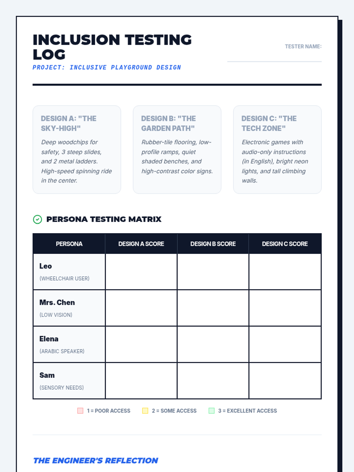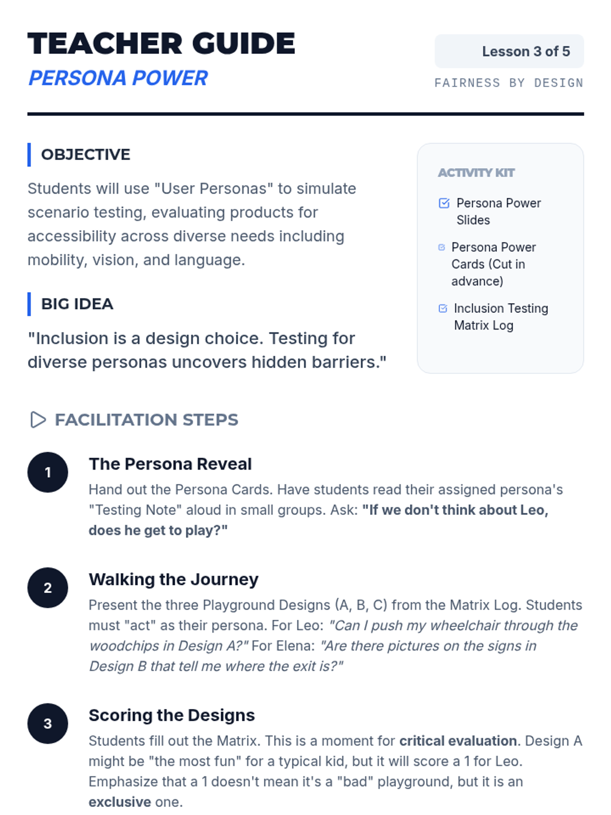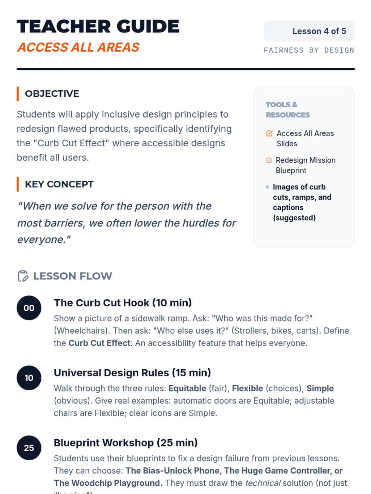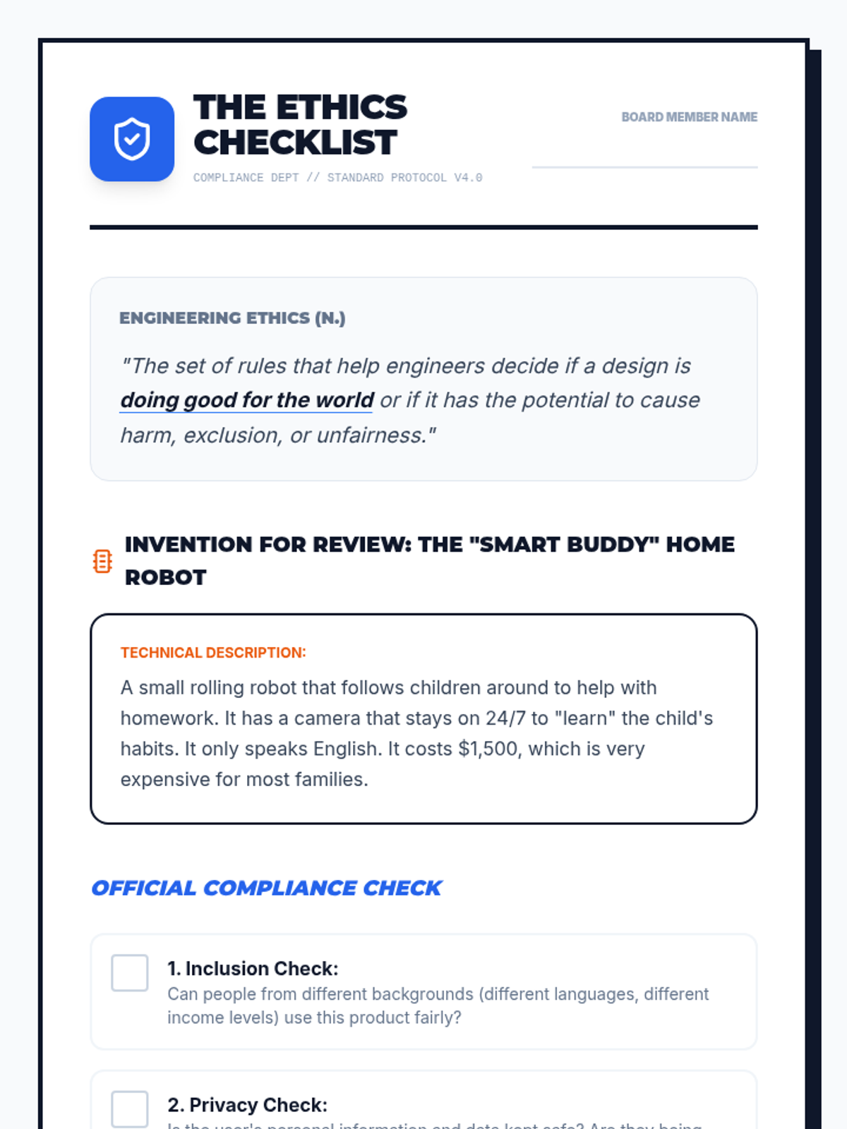 Students explore ethical compliance and bias testing in engineering, learning how technology can exclude people and how to design for fairness and accessibility. They act as usability engineers to analyze, test, and redesign products for diverse users.