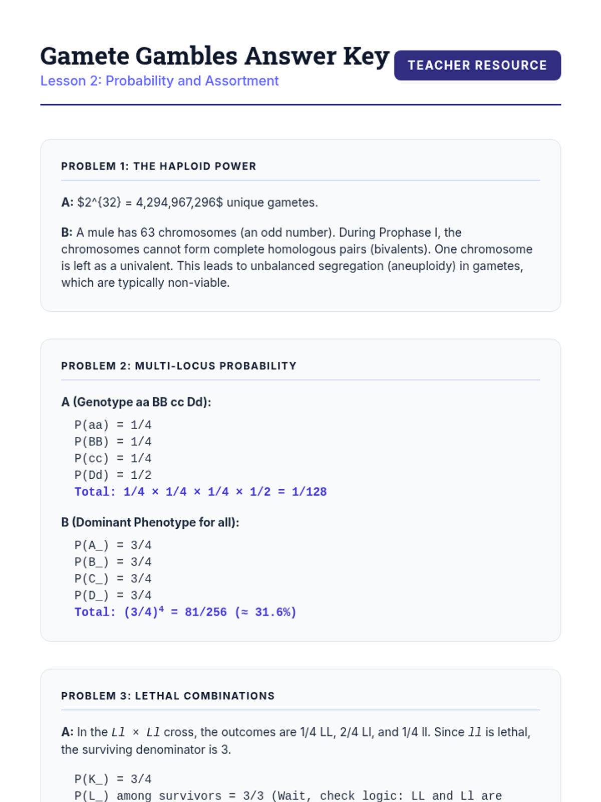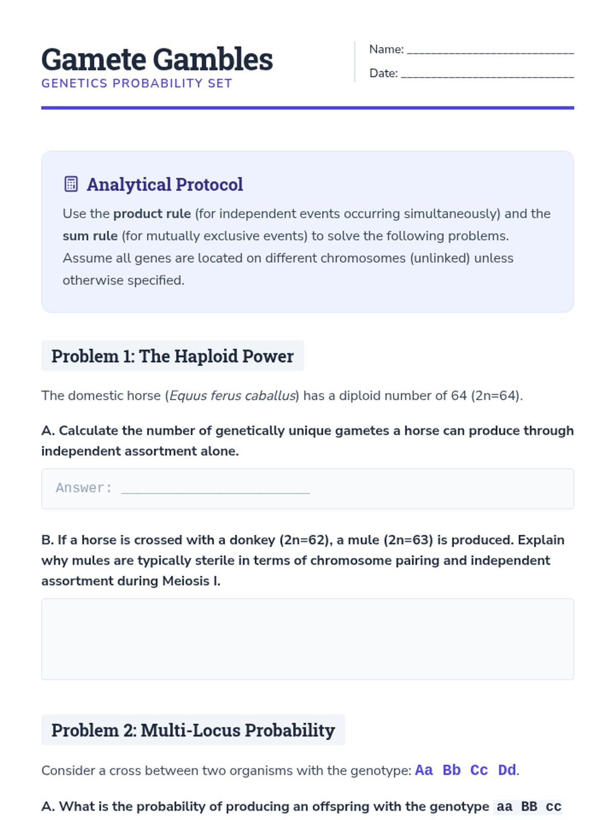 This sequence explores the statistical and genetic consequences of meiotic events, specifically focusing on how infinite variation is generated. Students move from the physical mechanism of crossing over to the mathematical probabilities of independent assortment, concluding with genetic mapping and population-level analysis.