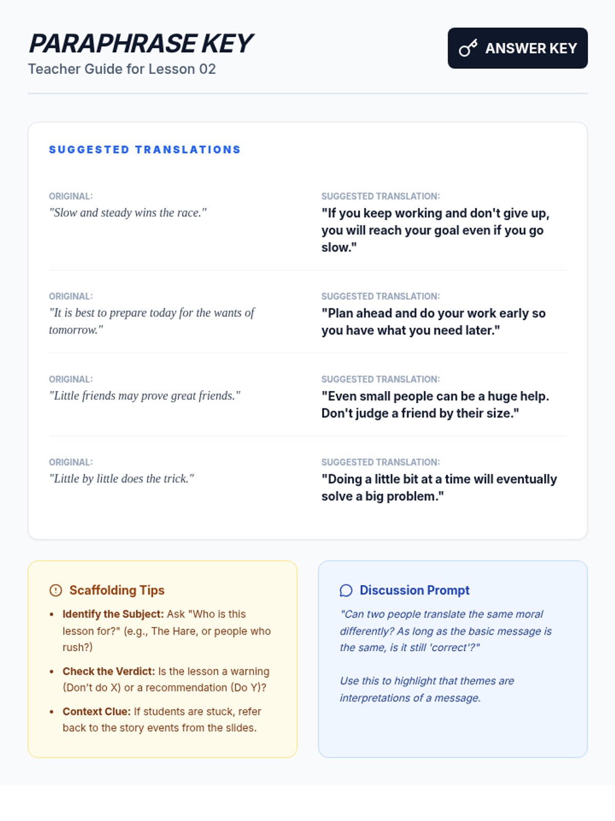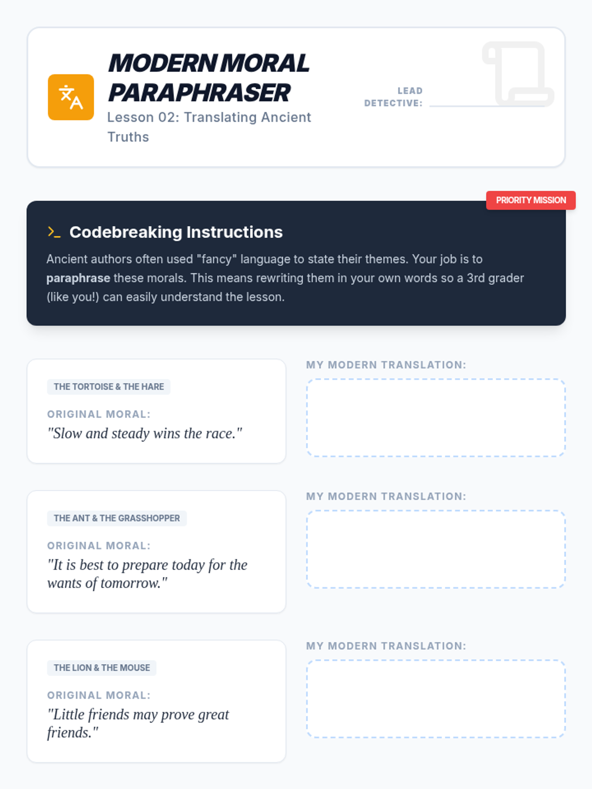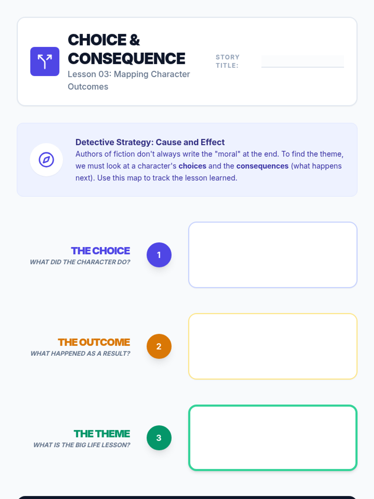 A comprehensive unit for 3rd-grade students that shifts focus from plot summaries to abstract conceptual thinking. Students learn to distinguish between topics and themes, analyze character actions in fables and fiction, compare themes across cultures, and support their interpretations with text evidence.