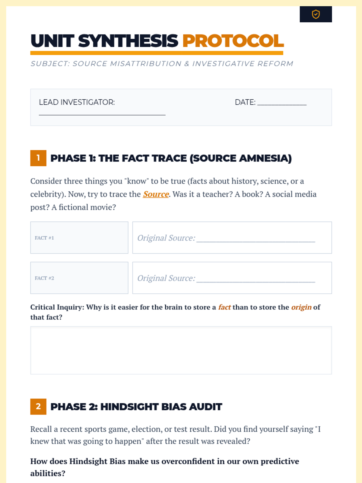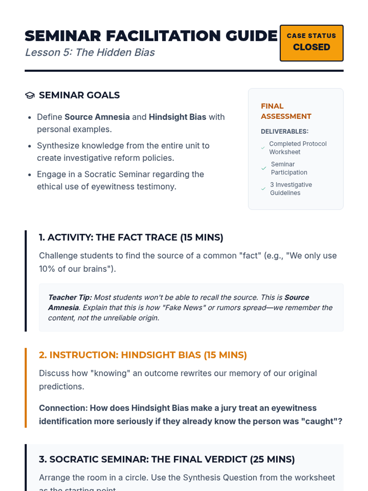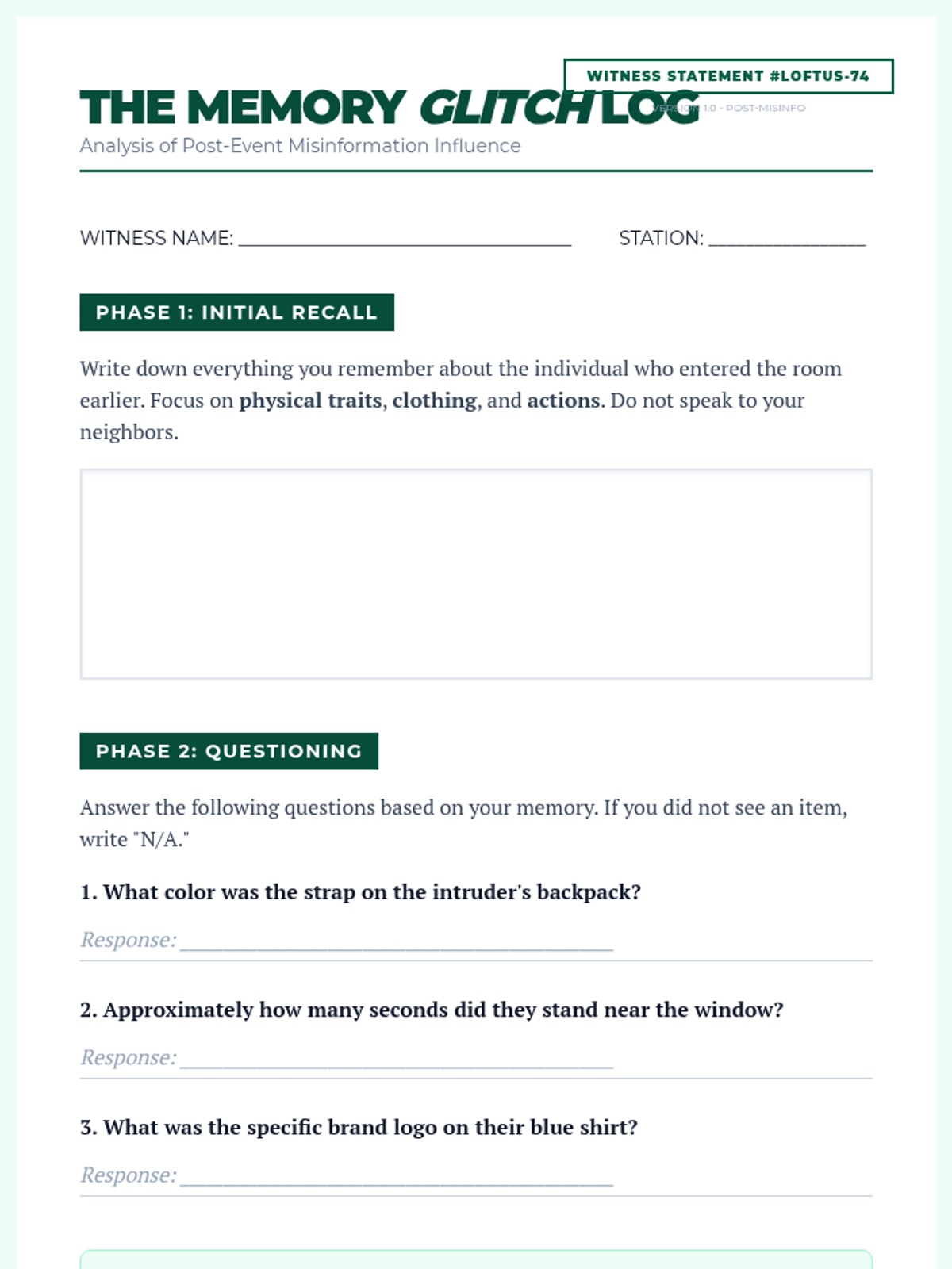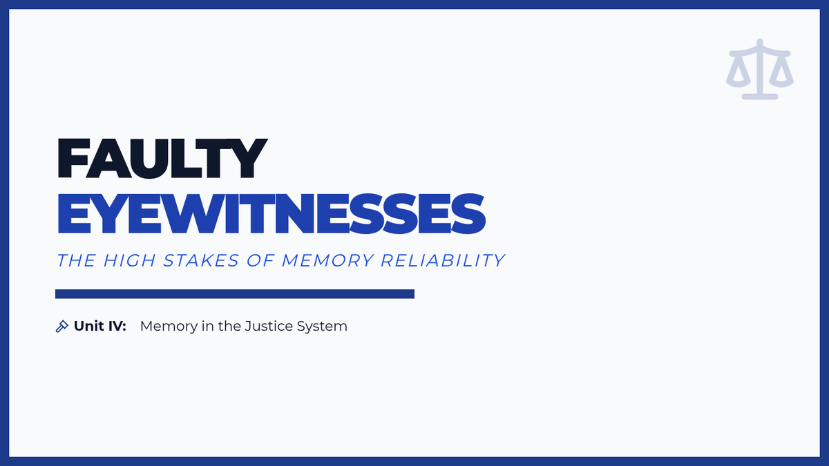 A 10th-grade psychology unit exploring the fallibility and reconstructive nature of human memory, covering forgetting, interference, schemas, and the legal implications of eyewitness testimony.
