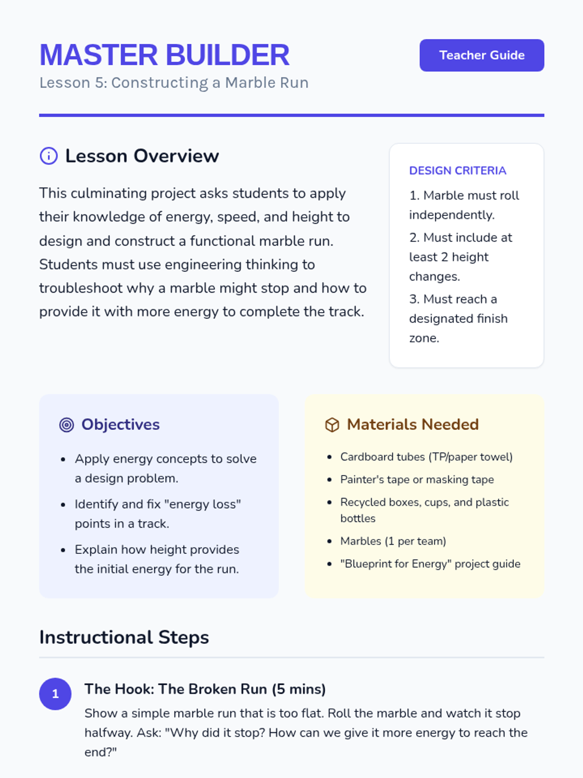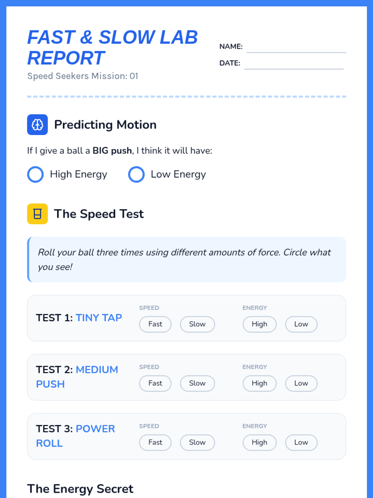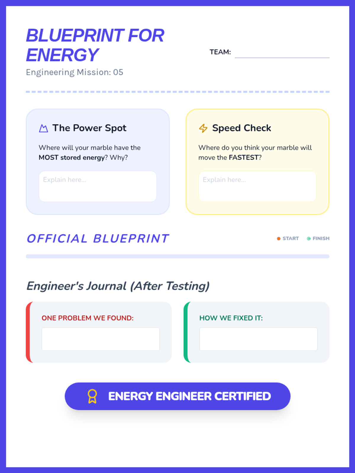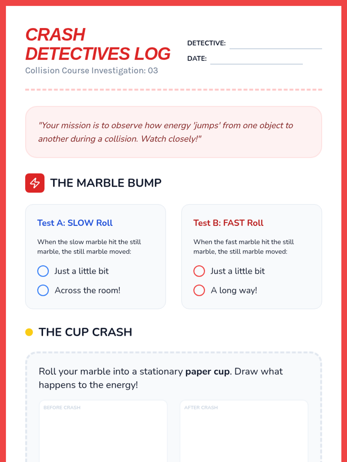 A 2nd-grade physics sequence exploring mechanical energy through game-based learning. Students investigate motion, speed, ramps, and collisions to understand how energy is stored and transferred.