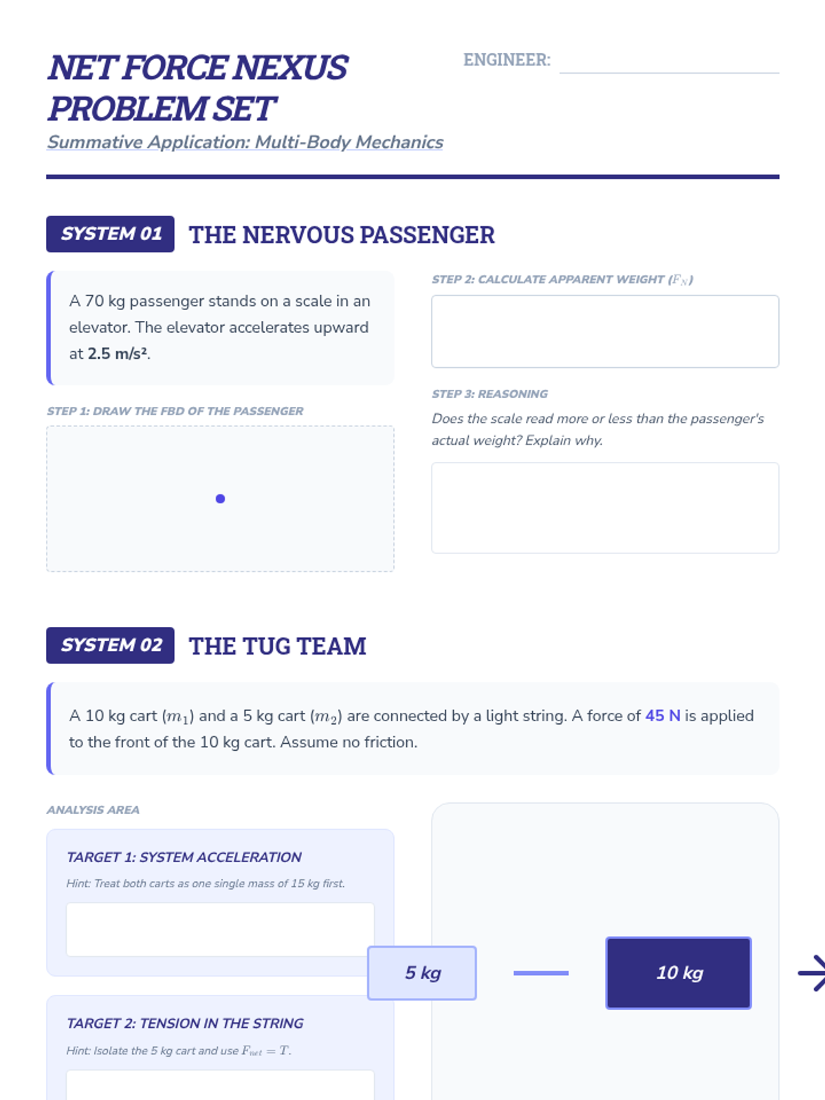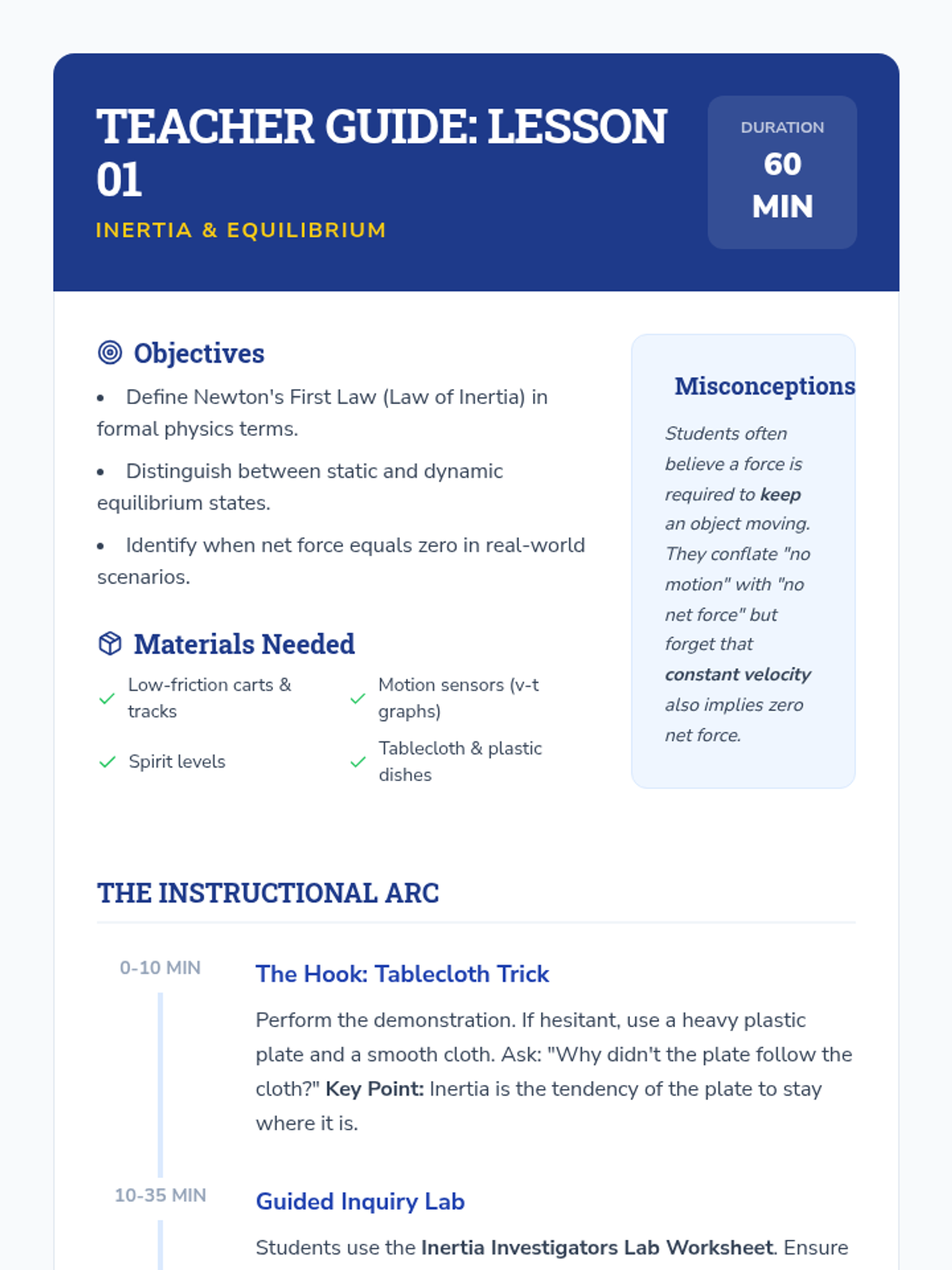 A comprehensive 11th-grade physics unit covering Newton's Three Laws of Motion, from conceptual inquiry of inertia to quantitative analysis of complex multi-body systems using free body diagrams and vector addition.