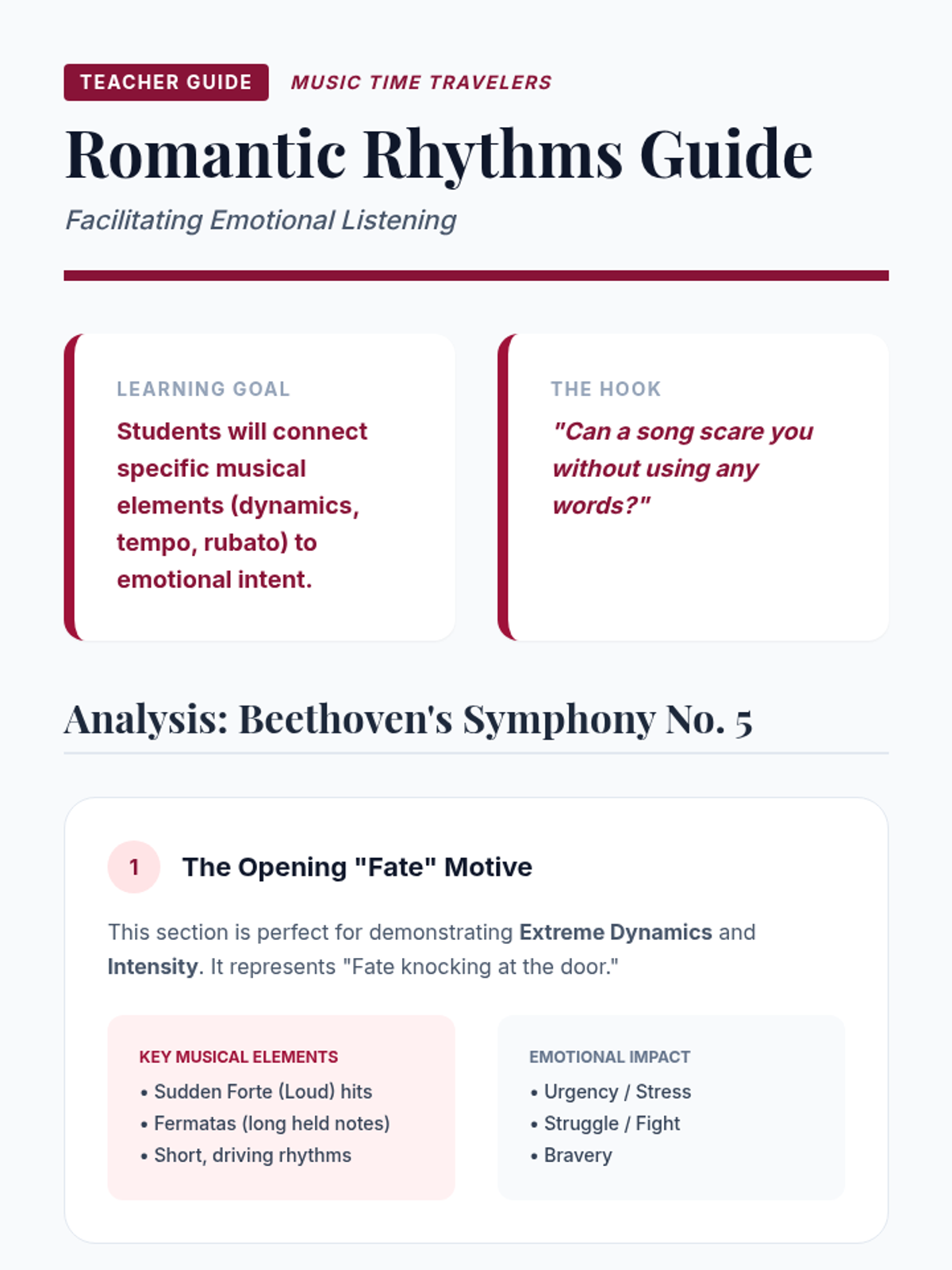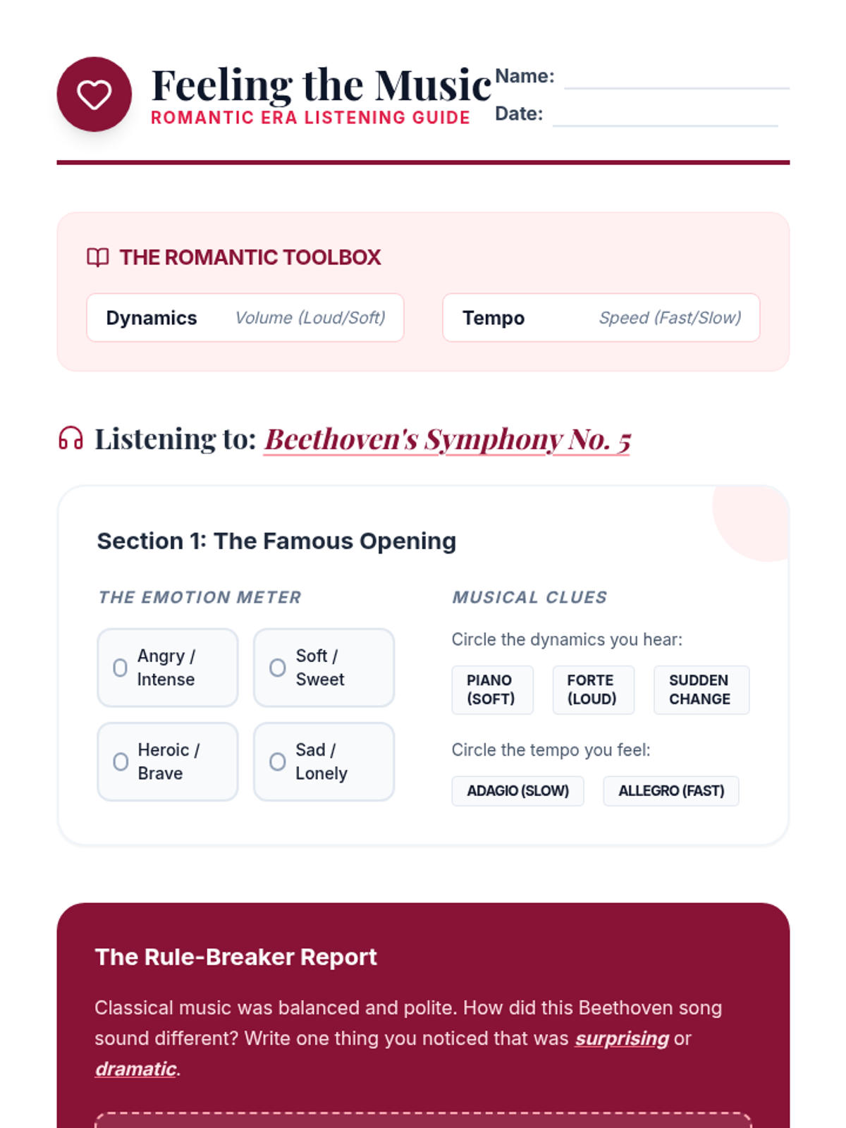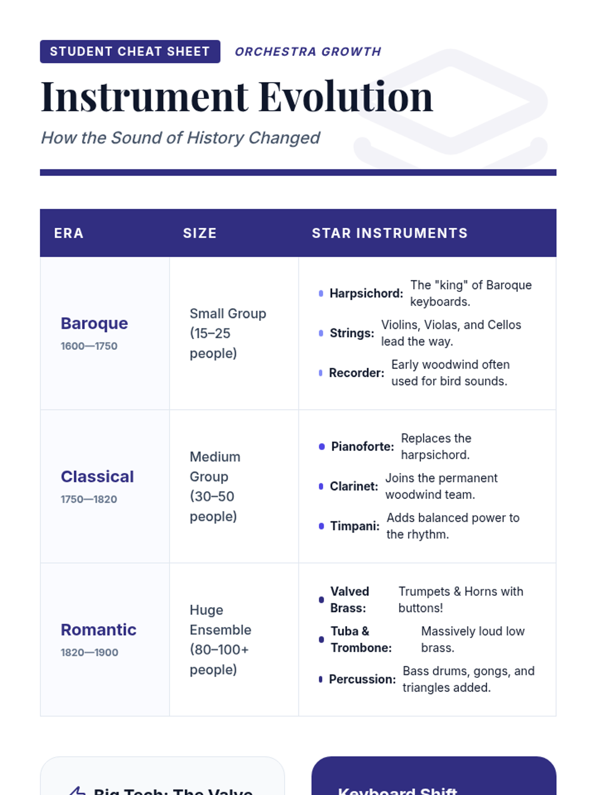 This sequence introduces 4th-grade students to the chronological development of Western Art Music from the Baroque to the Romantic eras, focusing on structural patterns, emotional expression, and instrumentation changes.