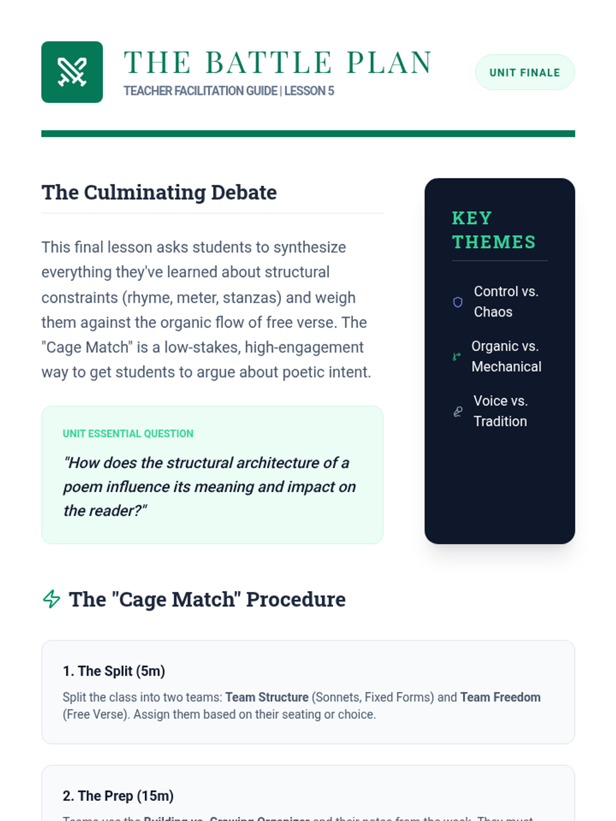 A high school ELA unit exploring the evolution of war and protest poetry, from the trenches of WWI to modern social movements, culminating in an original poetry portfolio.