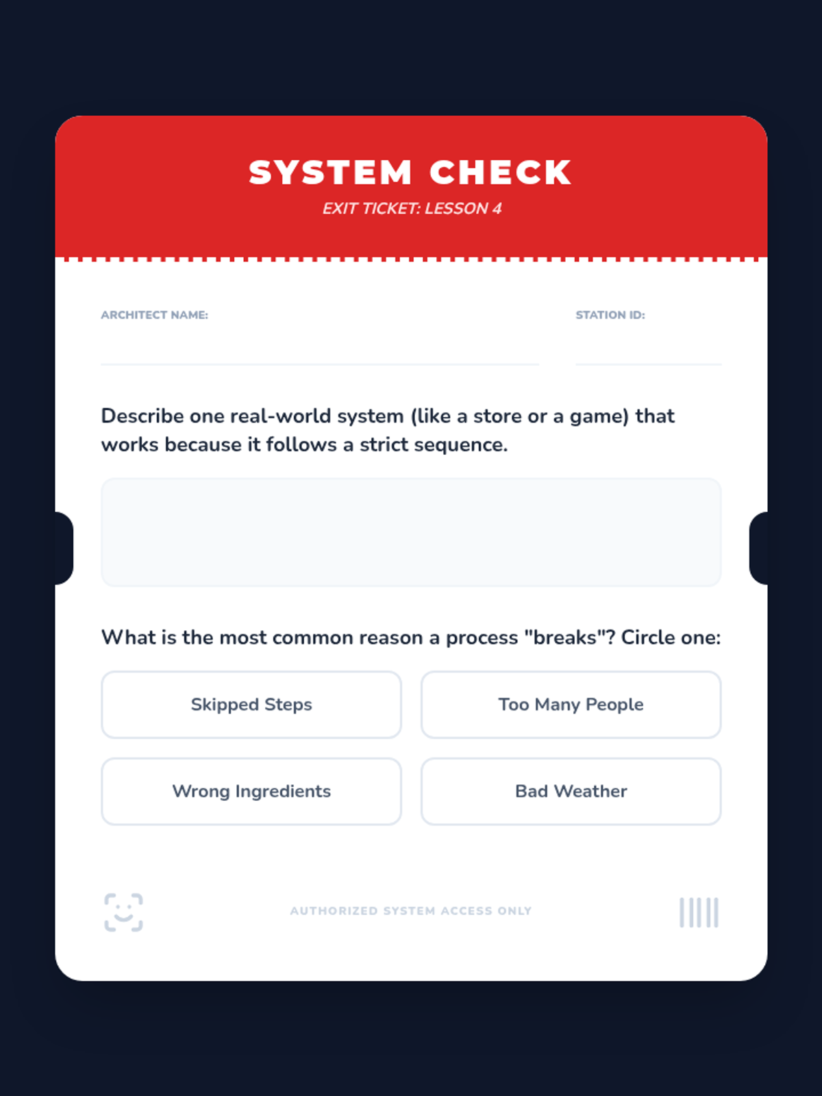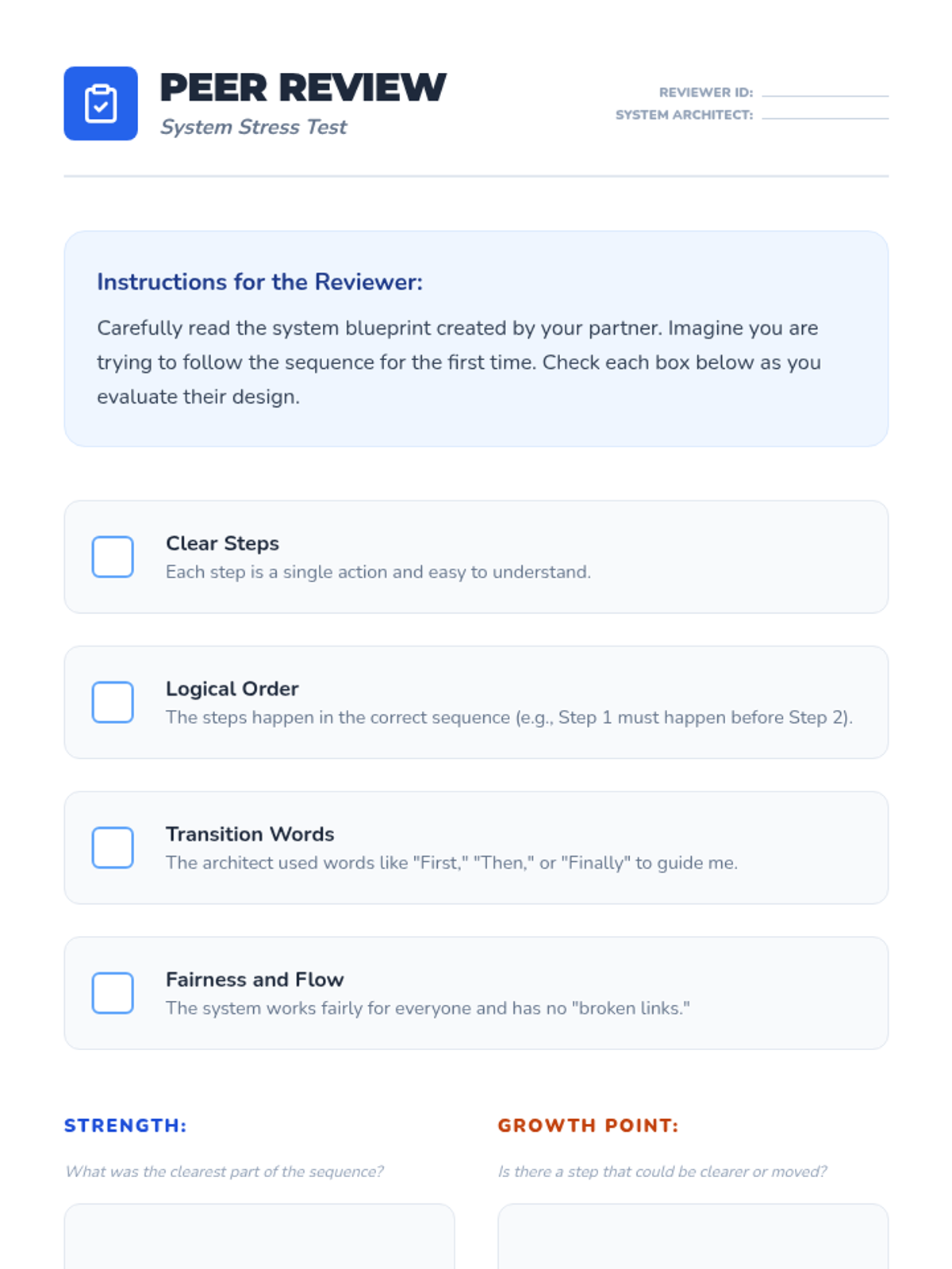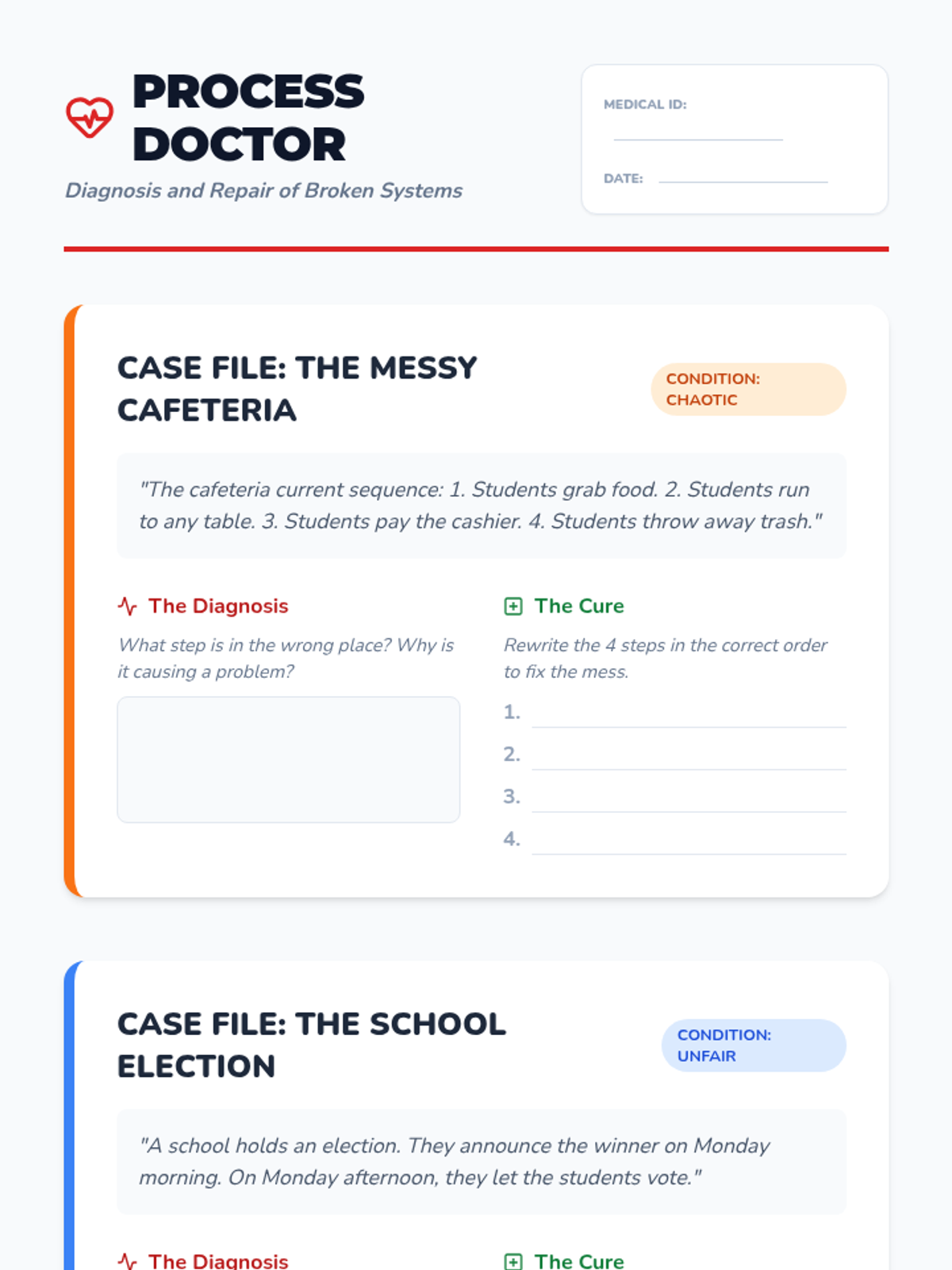 This sequence bridges social studies and procedural thinking, teaching students to analyze and design multi-step processes in government, economics, and daily life. Through simulations and case studies, students learn why the order of events is critical for fair and effective systems.