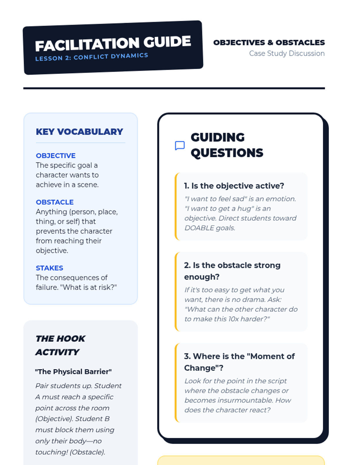 This inquiry-based theater sequence teaches 5th-grade students how to analyze scripts to create deep character backstories. Students progress from identifying factual given circumstances to exploring motivations, tactics, and subtext, culminating in a character biography and monologue performance.