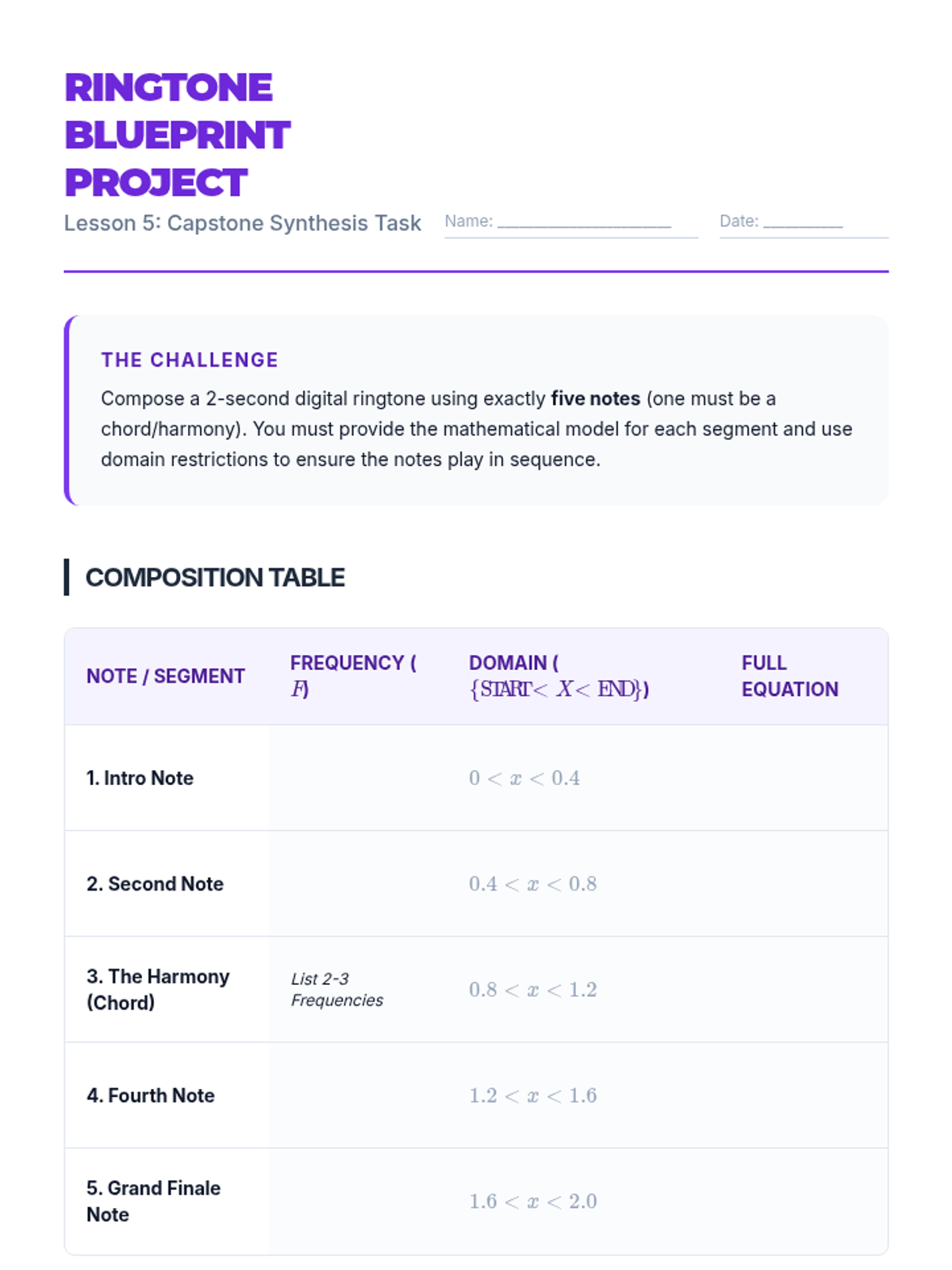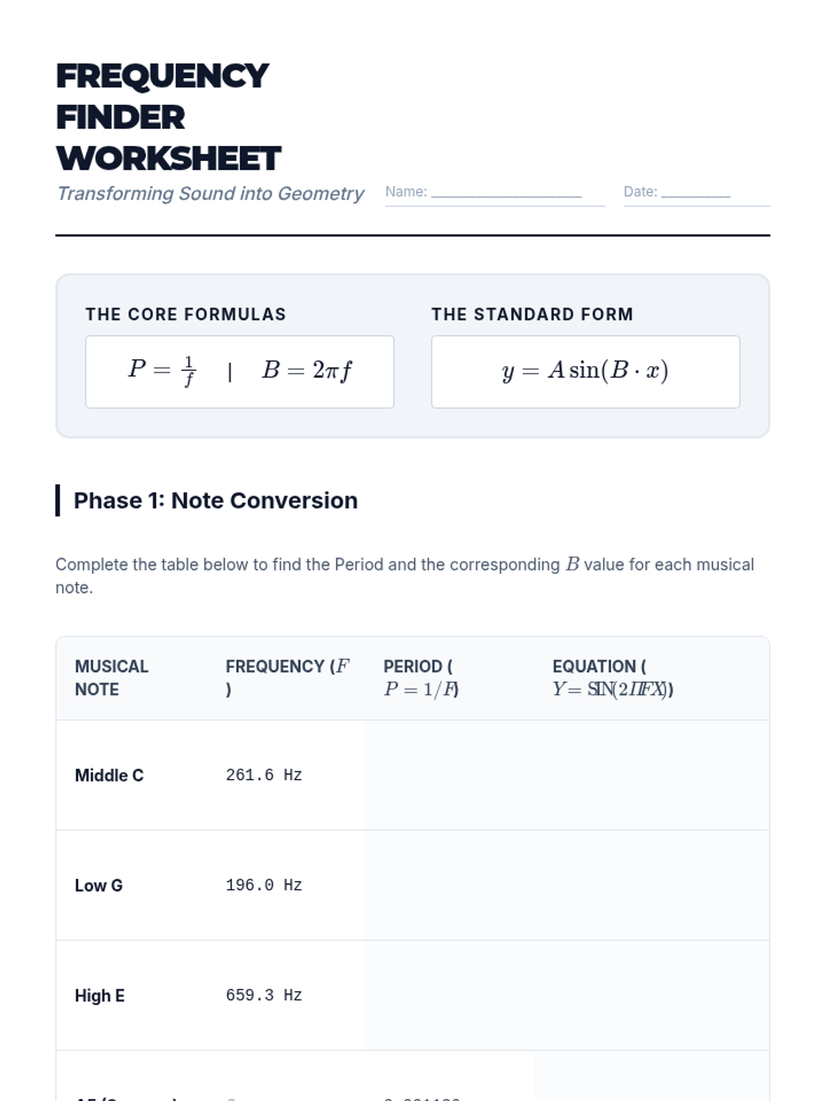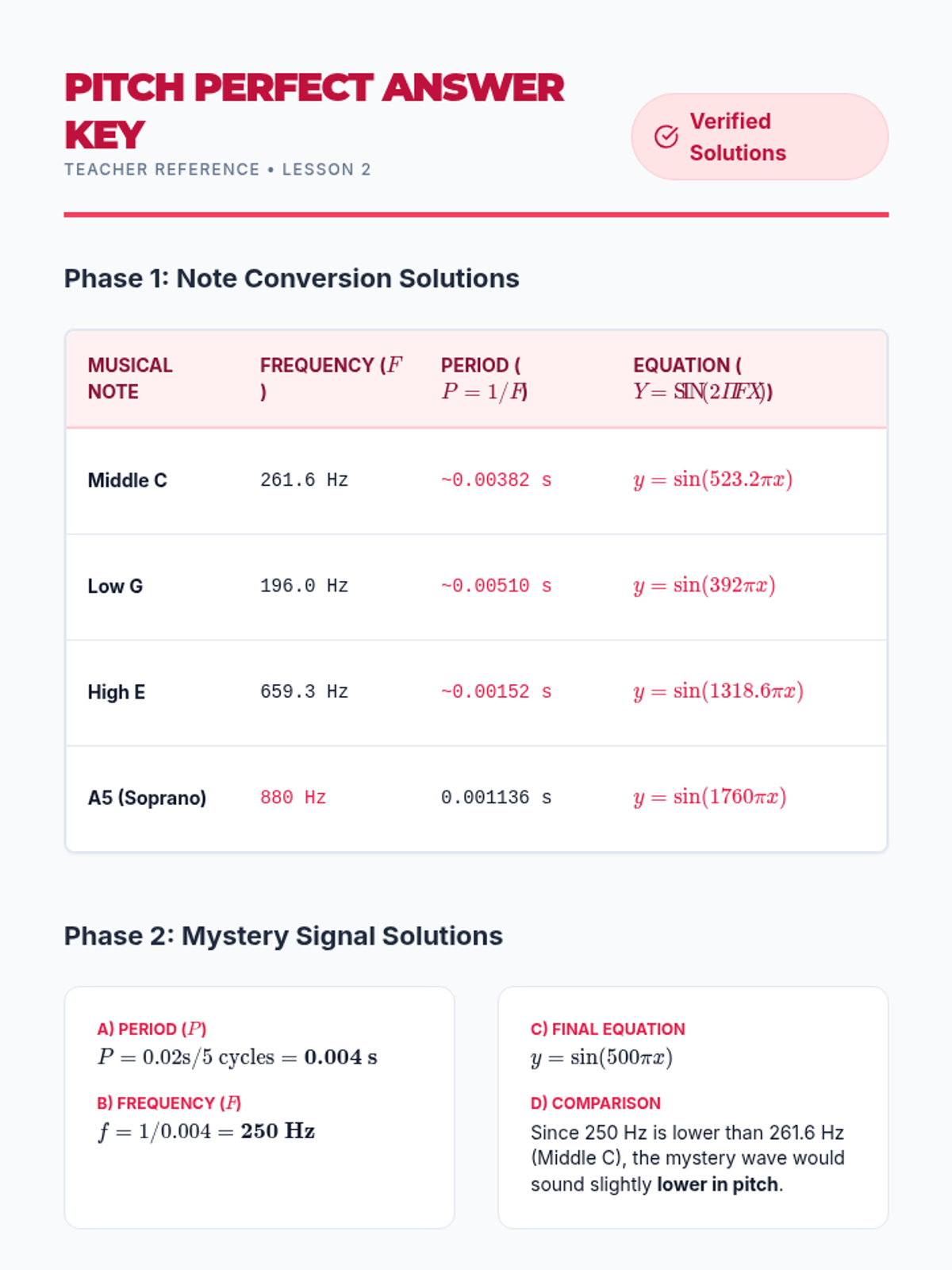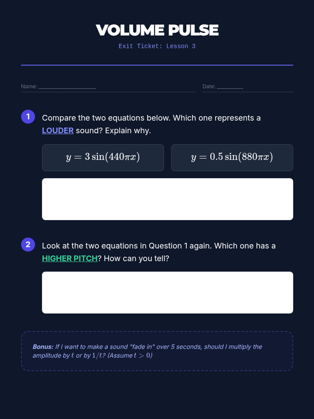 A high school trigonometry sequence that uses the physics of sound waves to teach modeling with trigonometric functions. Students explore pitch as frequency, volume as amplitude, and the superposition of waves to create harmonies and digital tones.