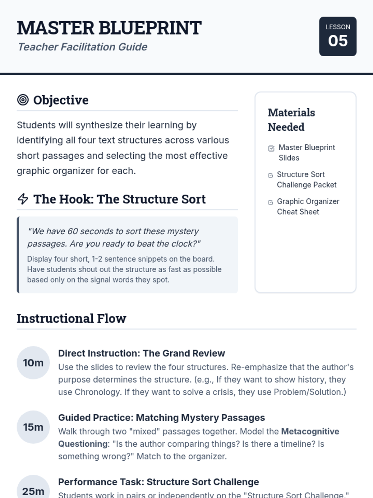 A comprehensive unit for 5th-grade students on identifying and utilizing nonfiction text structures to improve reading comprehension and note-taking skills.