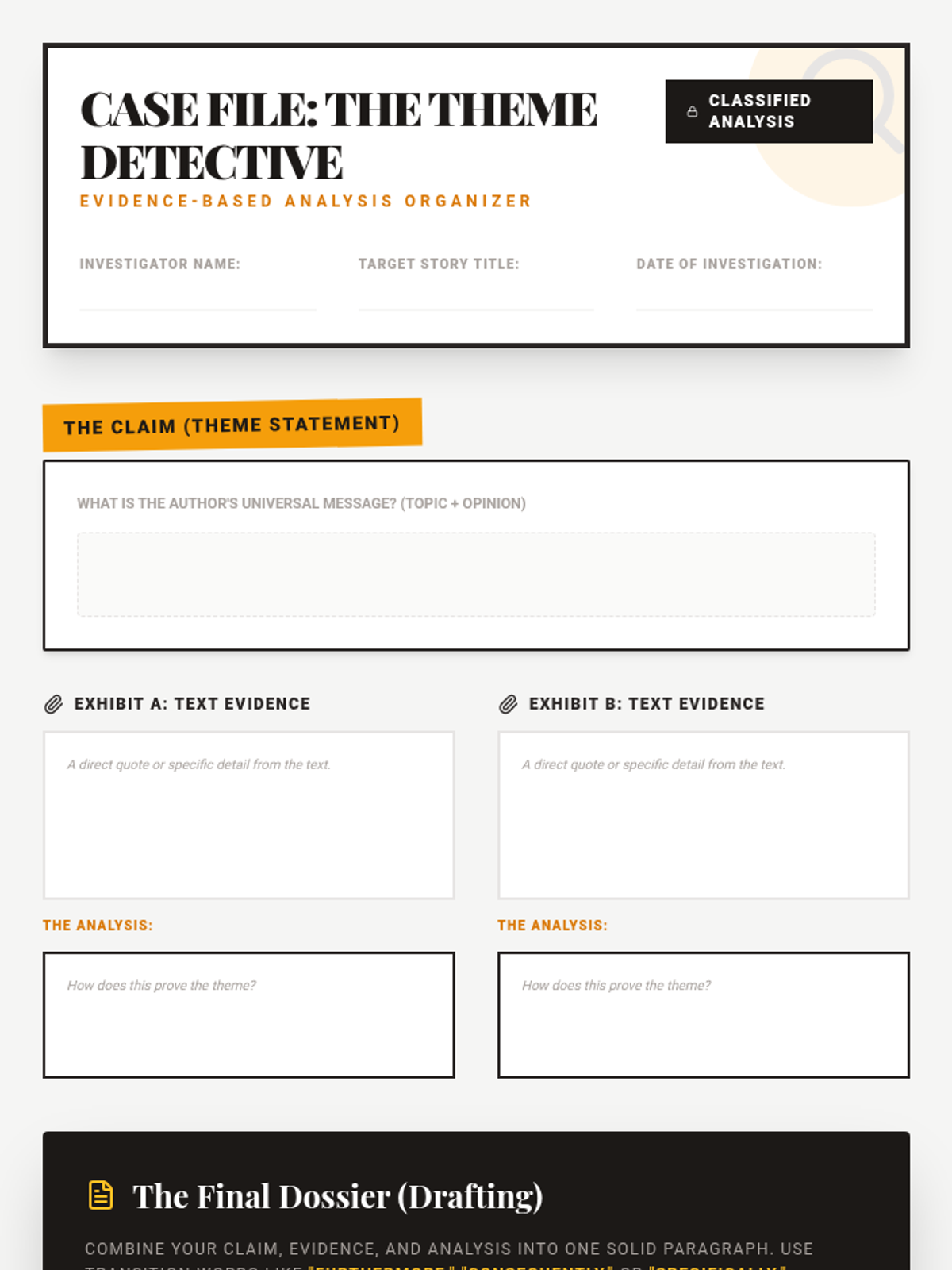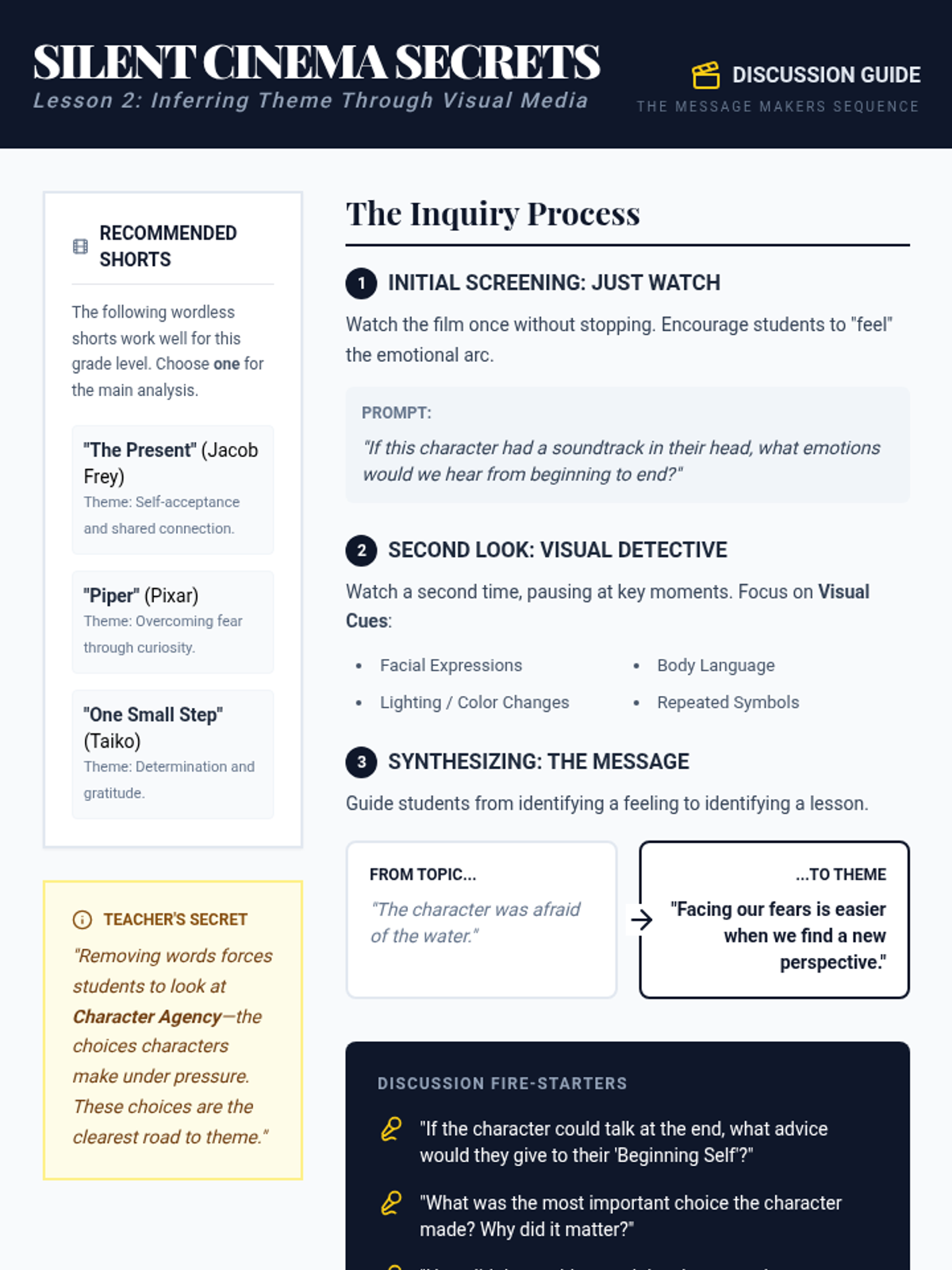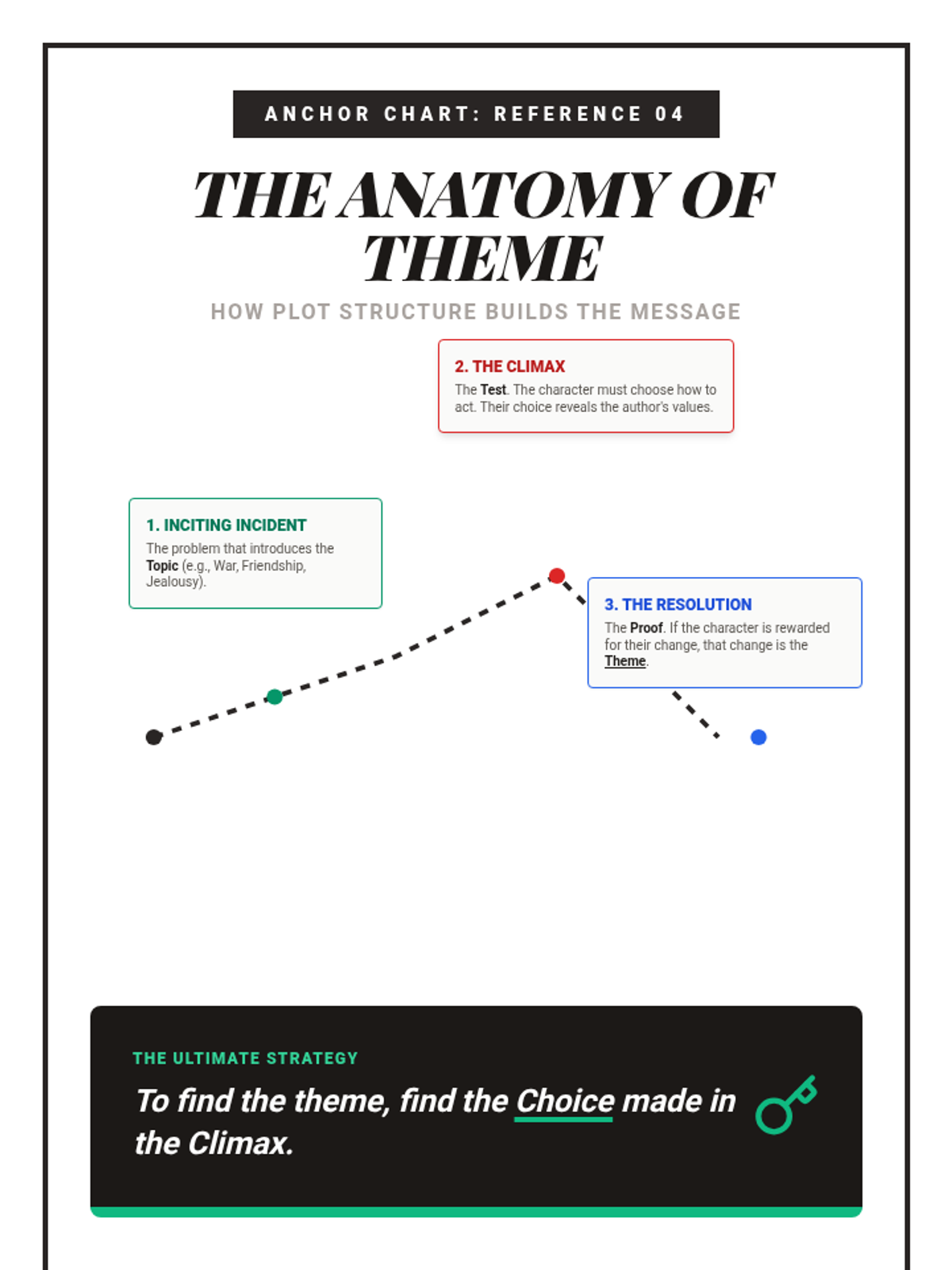 A comprehensive 6th-grade ELA unit that guides students from identifying simple topics to constructing sophisticated thematic analysis. Through visual media, short stories, and creative writing, students learn how character development and plot structure build an author's message.