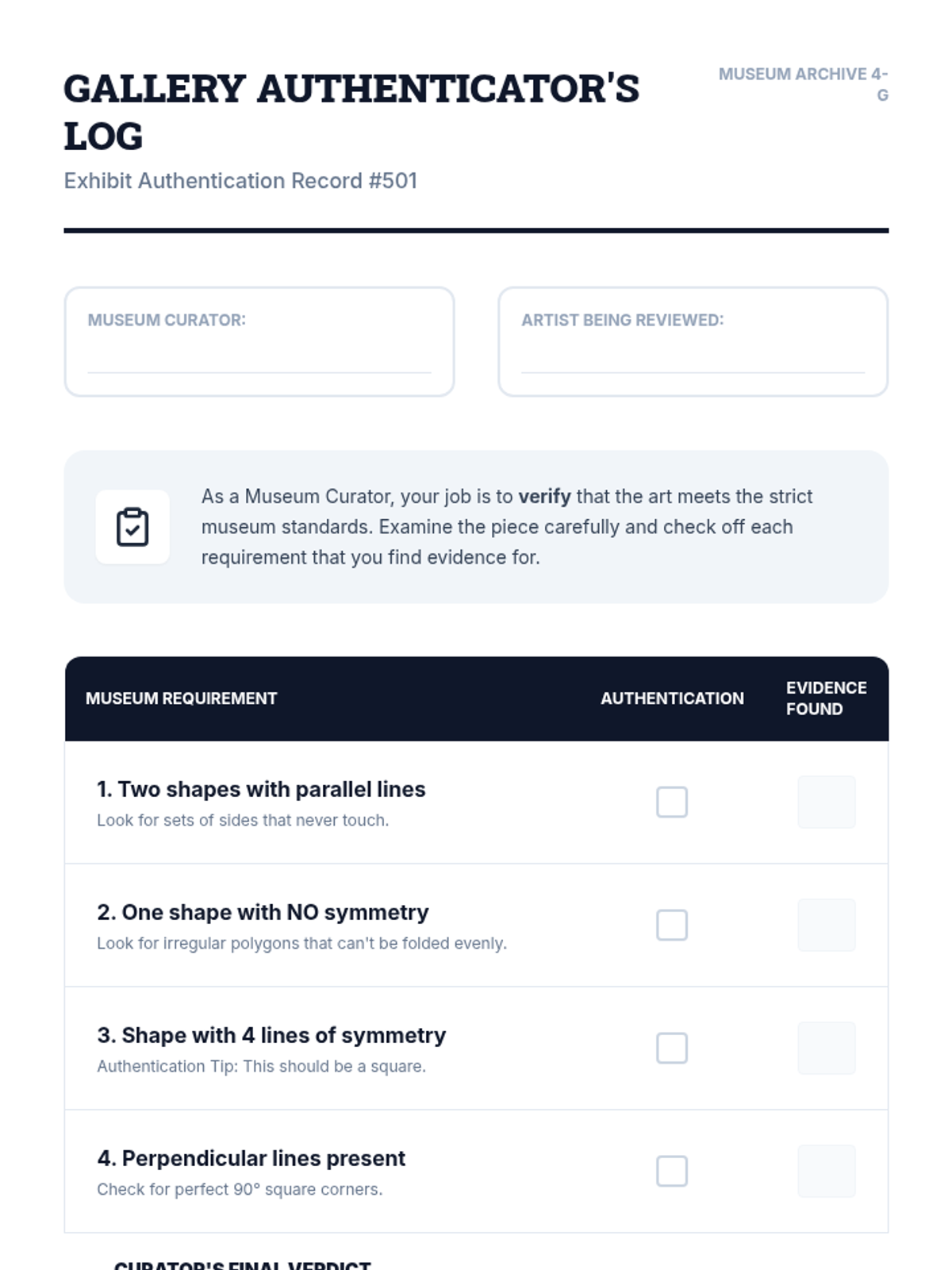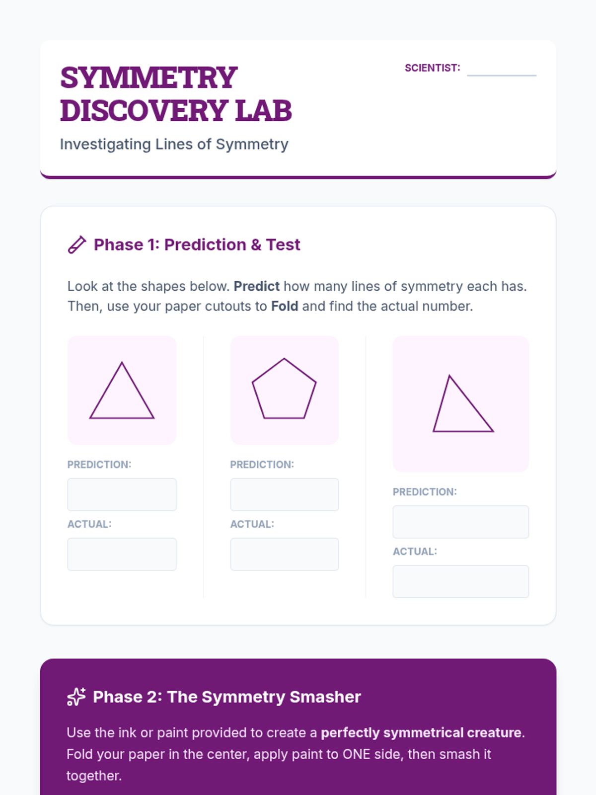 A 4th-grade geometry unit focused on identifying and classifying lines, angles, and polygons, and exploring concepts of symmetry through hands-on investigation and artistic application.