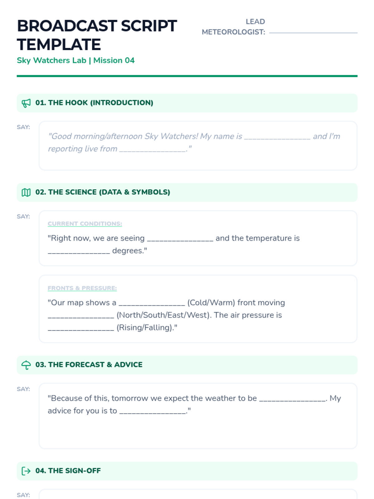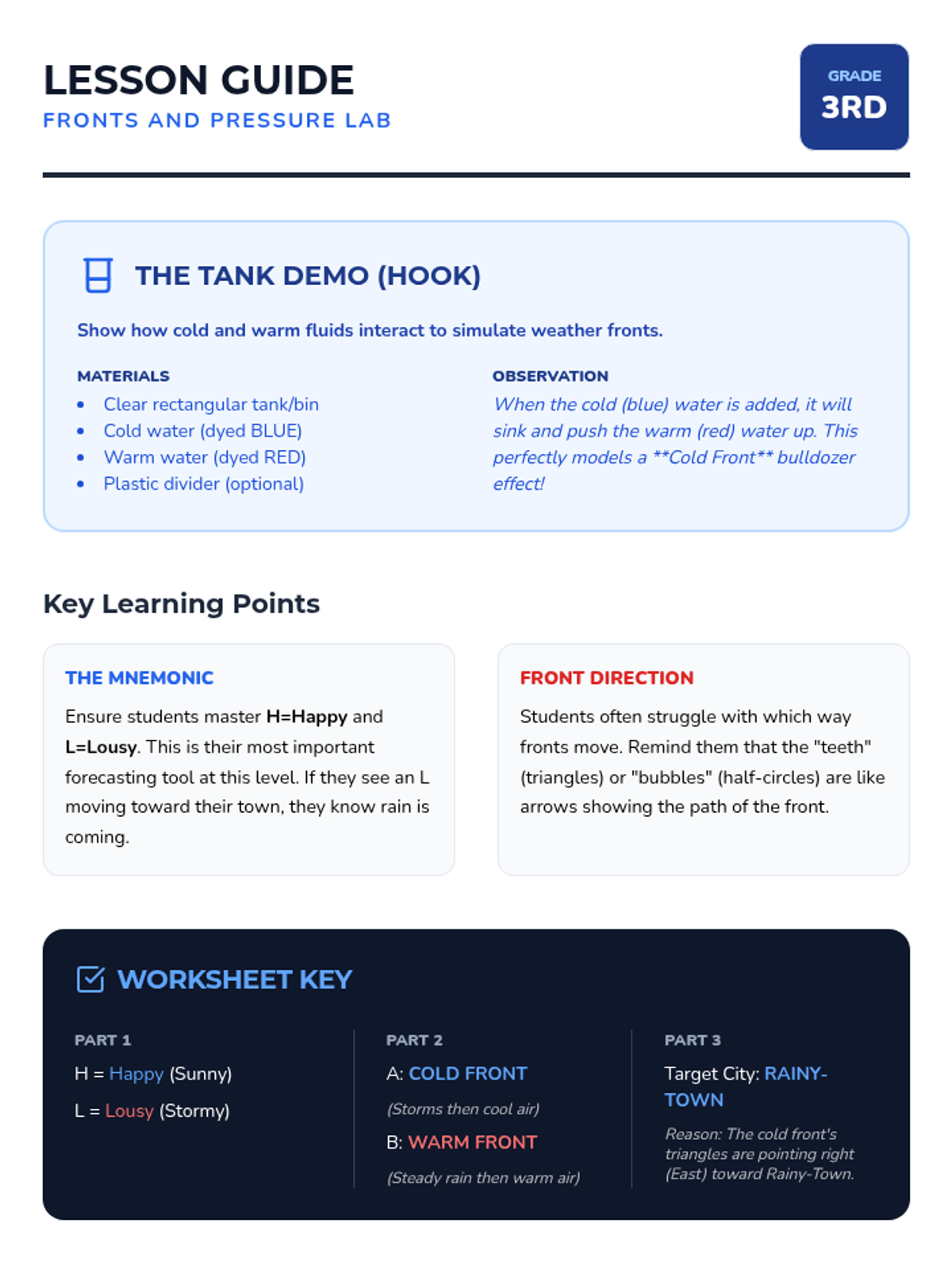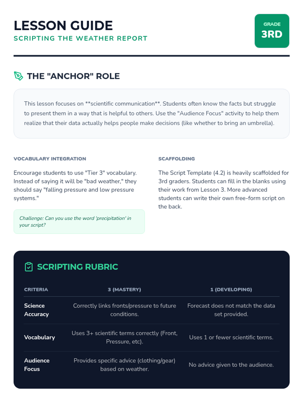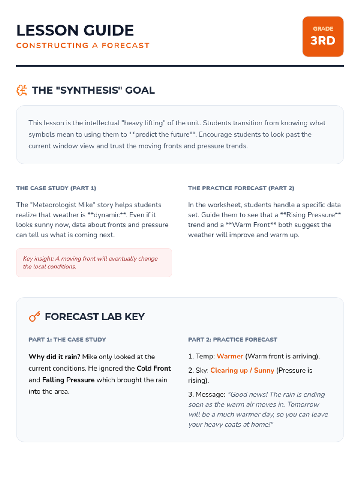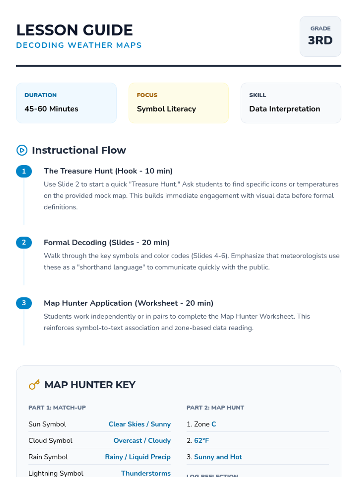 A comprehensive unit where 3rd-grade students become meteorologists. They learn to decode map symbols, understand pressure systems and fronts, and ultimately synthesize data to write and film their own weather broadcast.