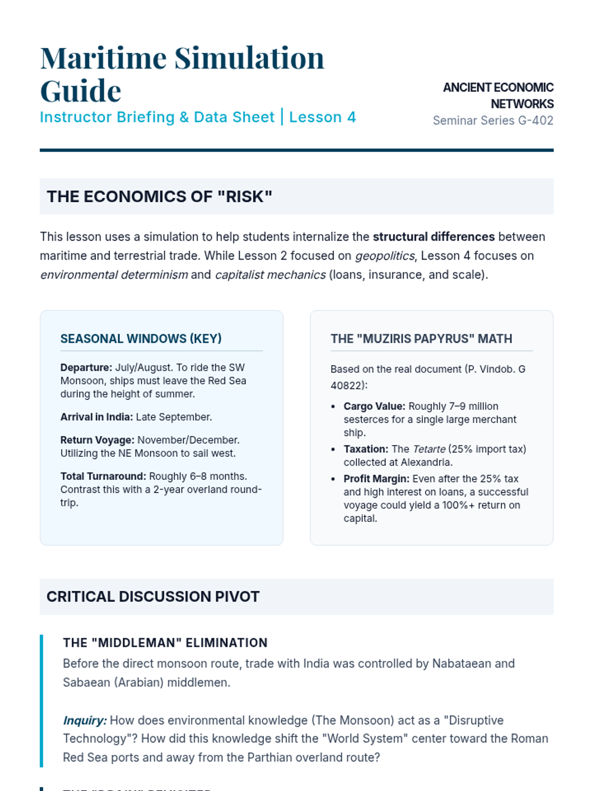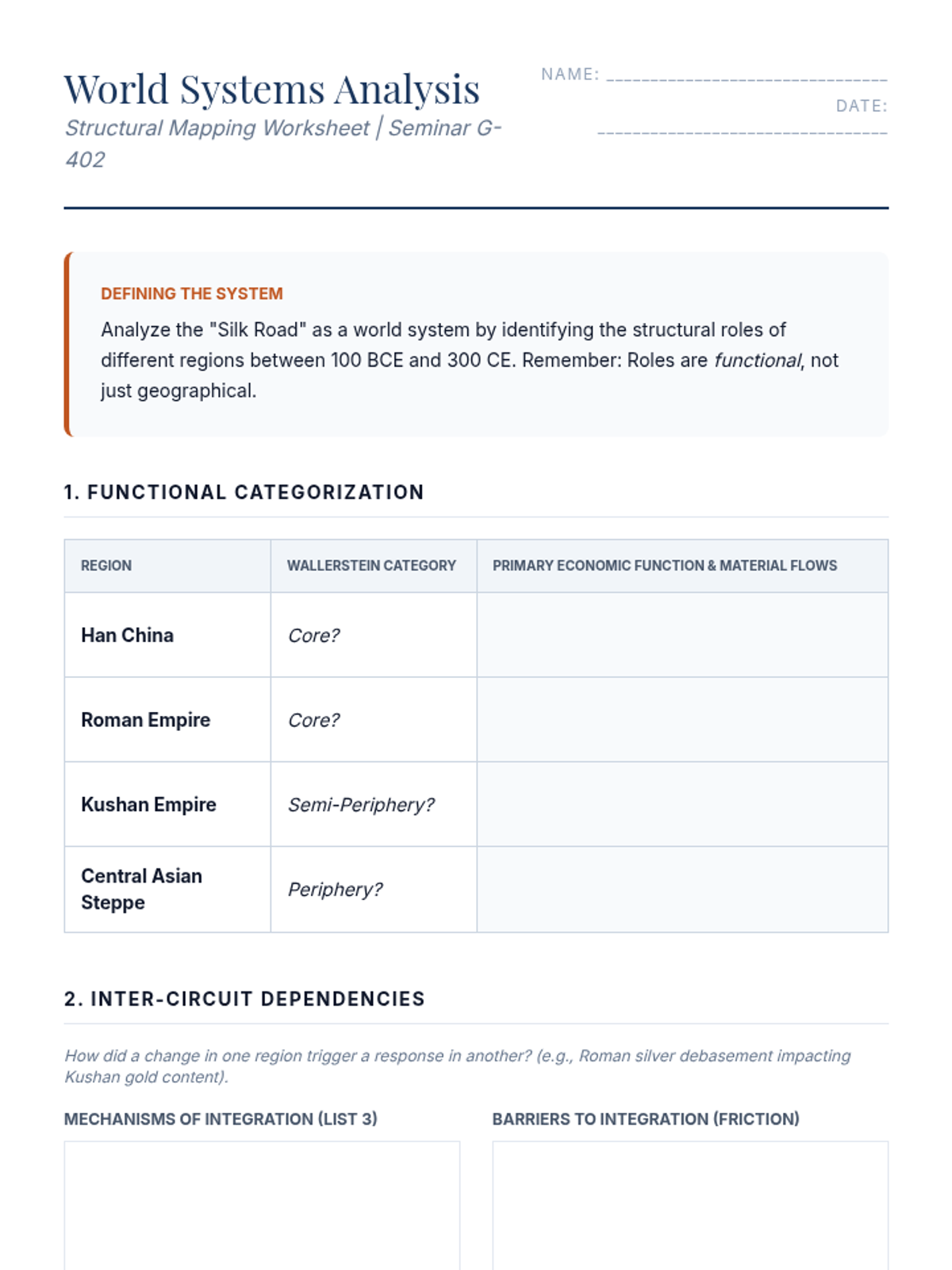 A graduate-level investigation into ancient economic networks through the lenses of Material Culture Theory and World Systems Theory. Students analyze how the circulation of objects between Rome, Han China, and the Kushan Empire shaped identity and globalization.