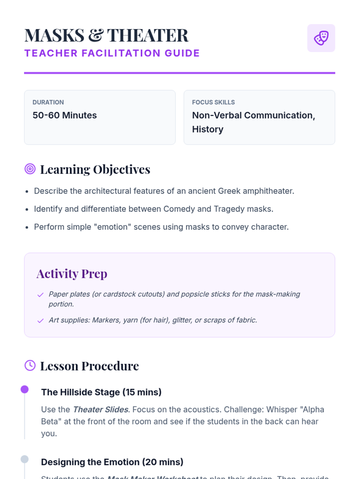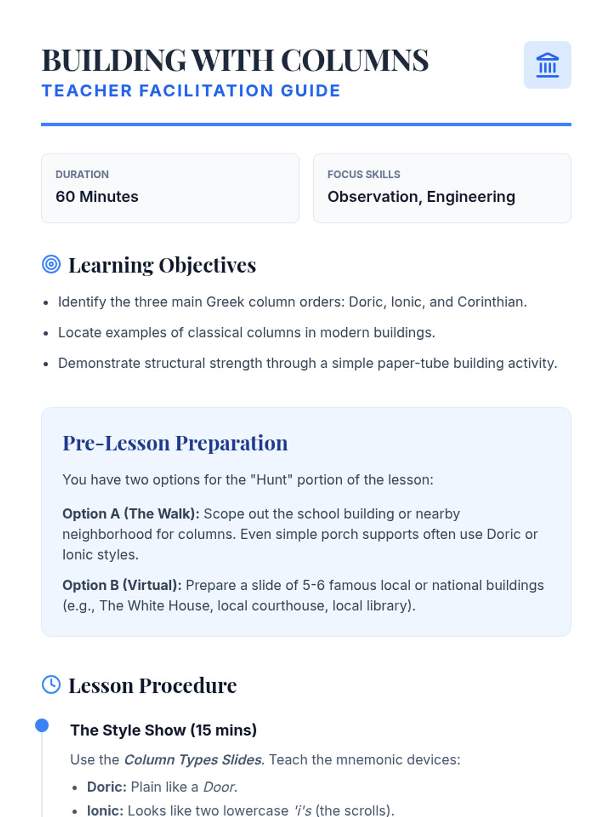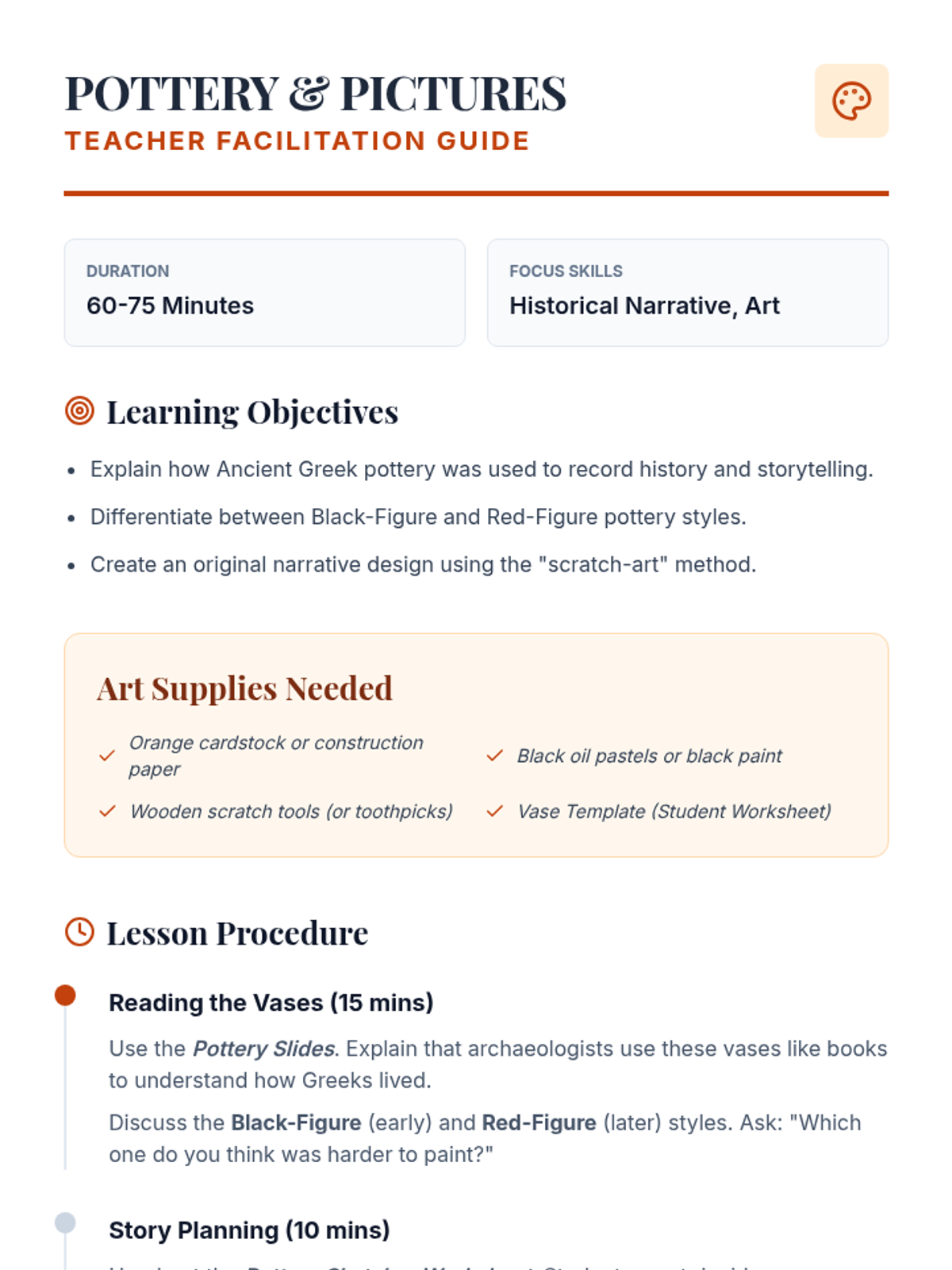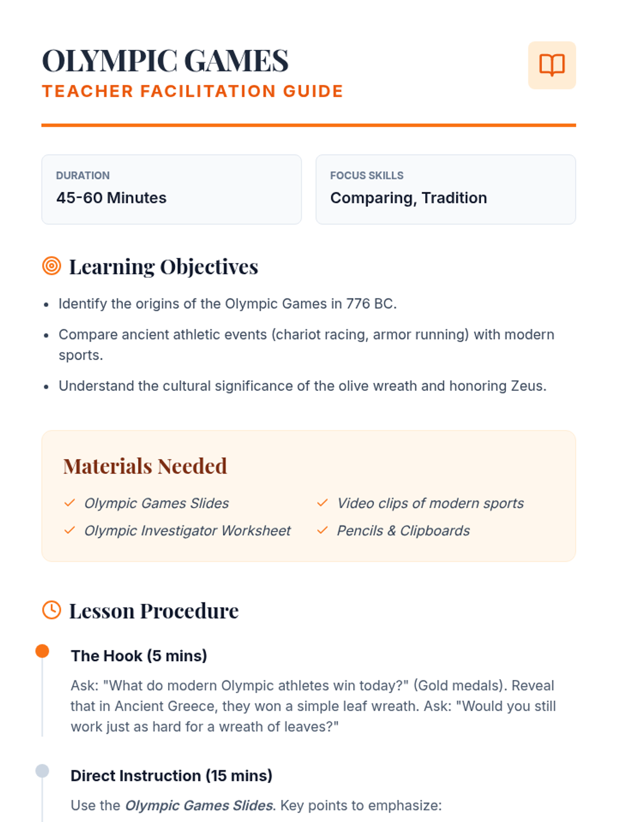 A hands-on exploration of Ancient Greek culture through art, architecture, athletics, and language, designed for 2nd-grade students to connect history with the modern world.