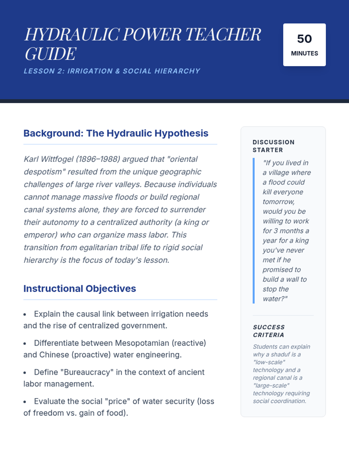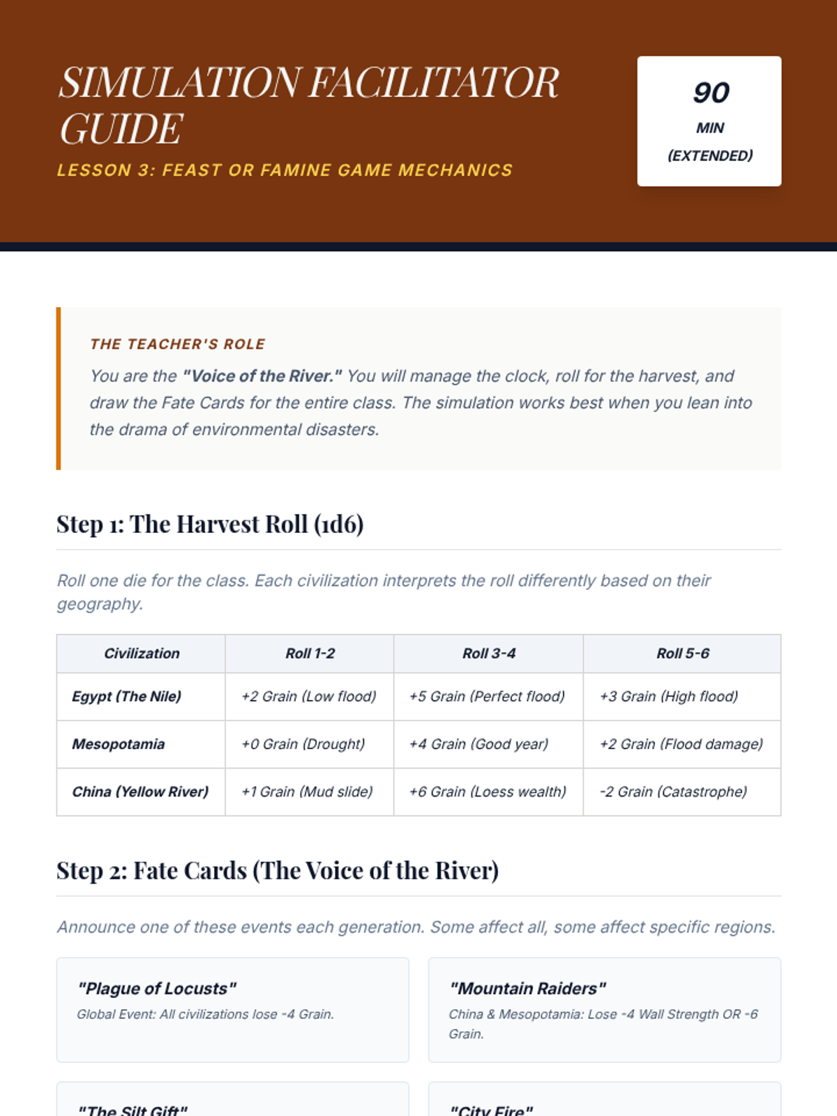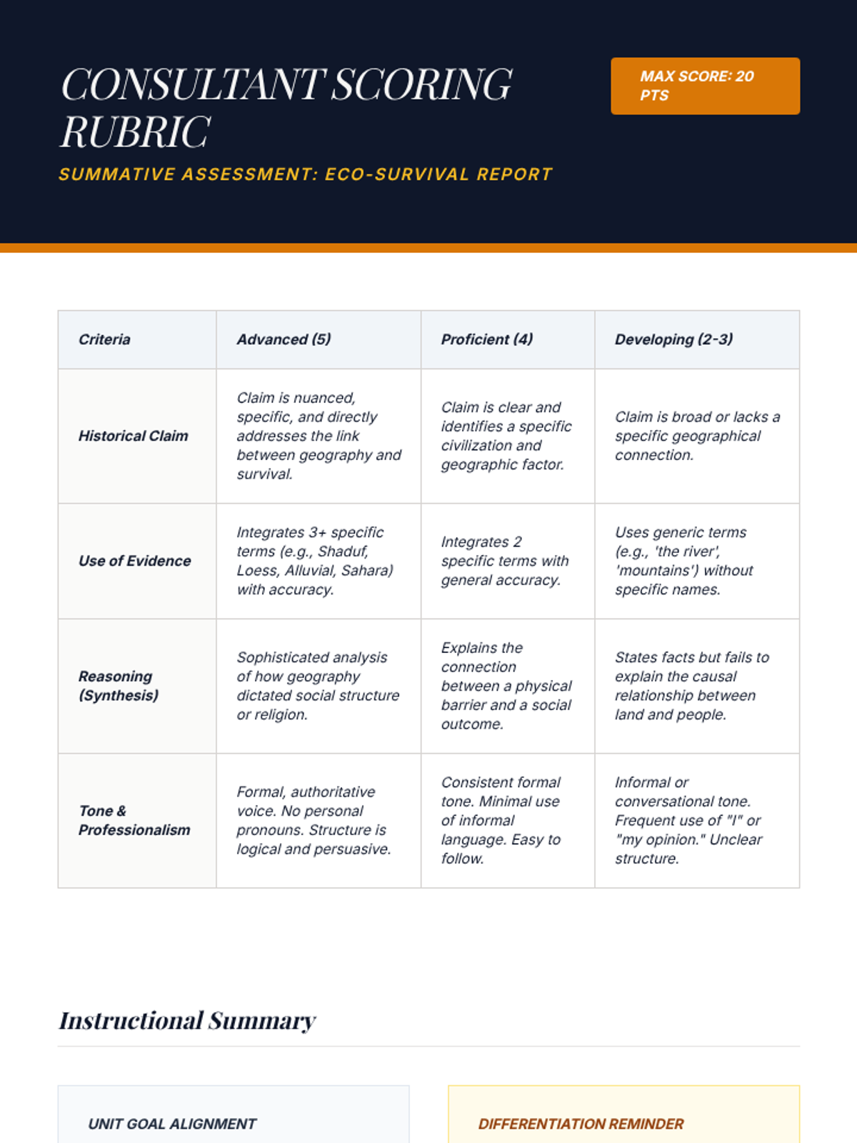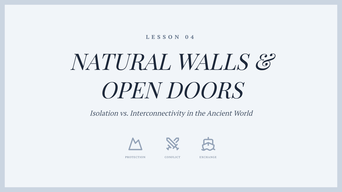 This unit explores the interplay between geography and the development of the four major river valley civilizations: the Nile, Tigris-Euphrates, Indus, and Yellow Rivers. Students analyze how environmental predictability and natural barriers influenced agricultural success, societal structure, and cultural outlooks.