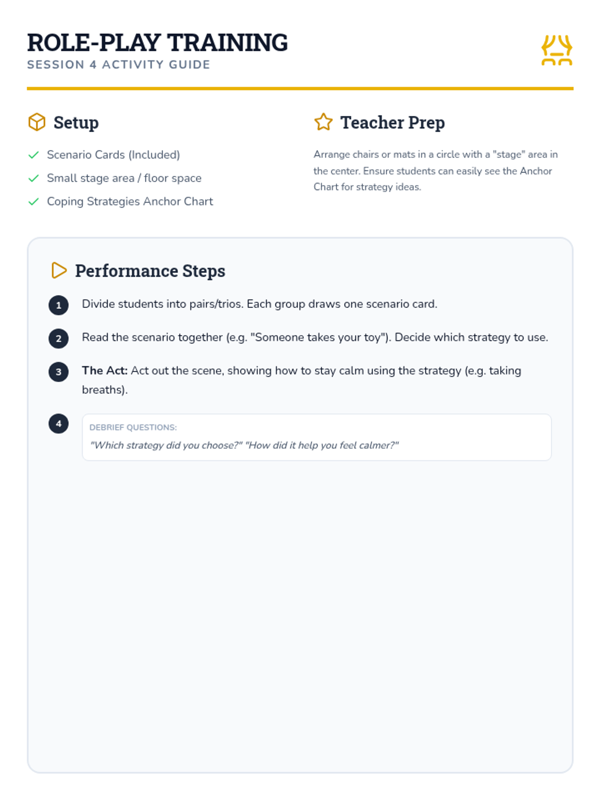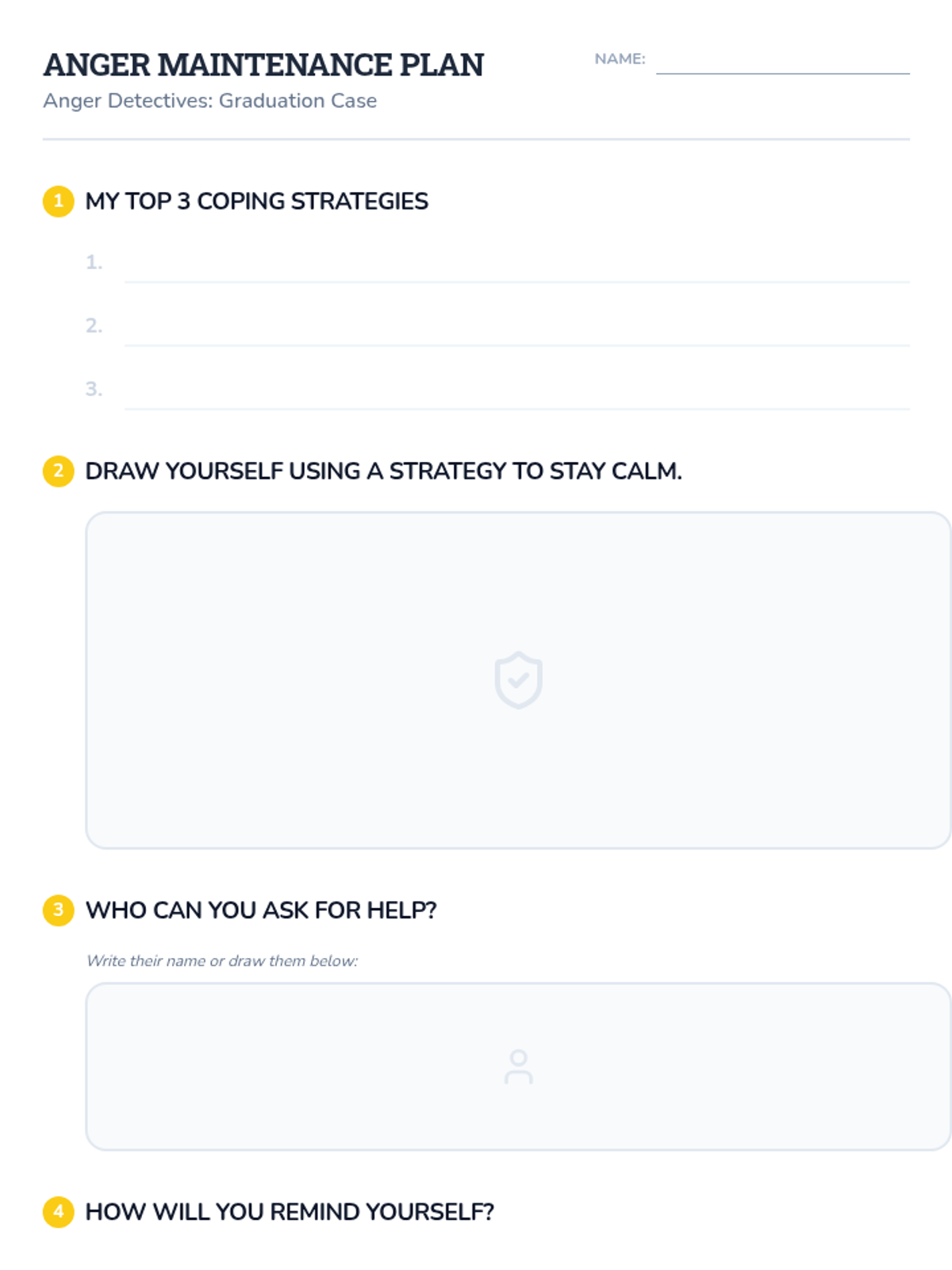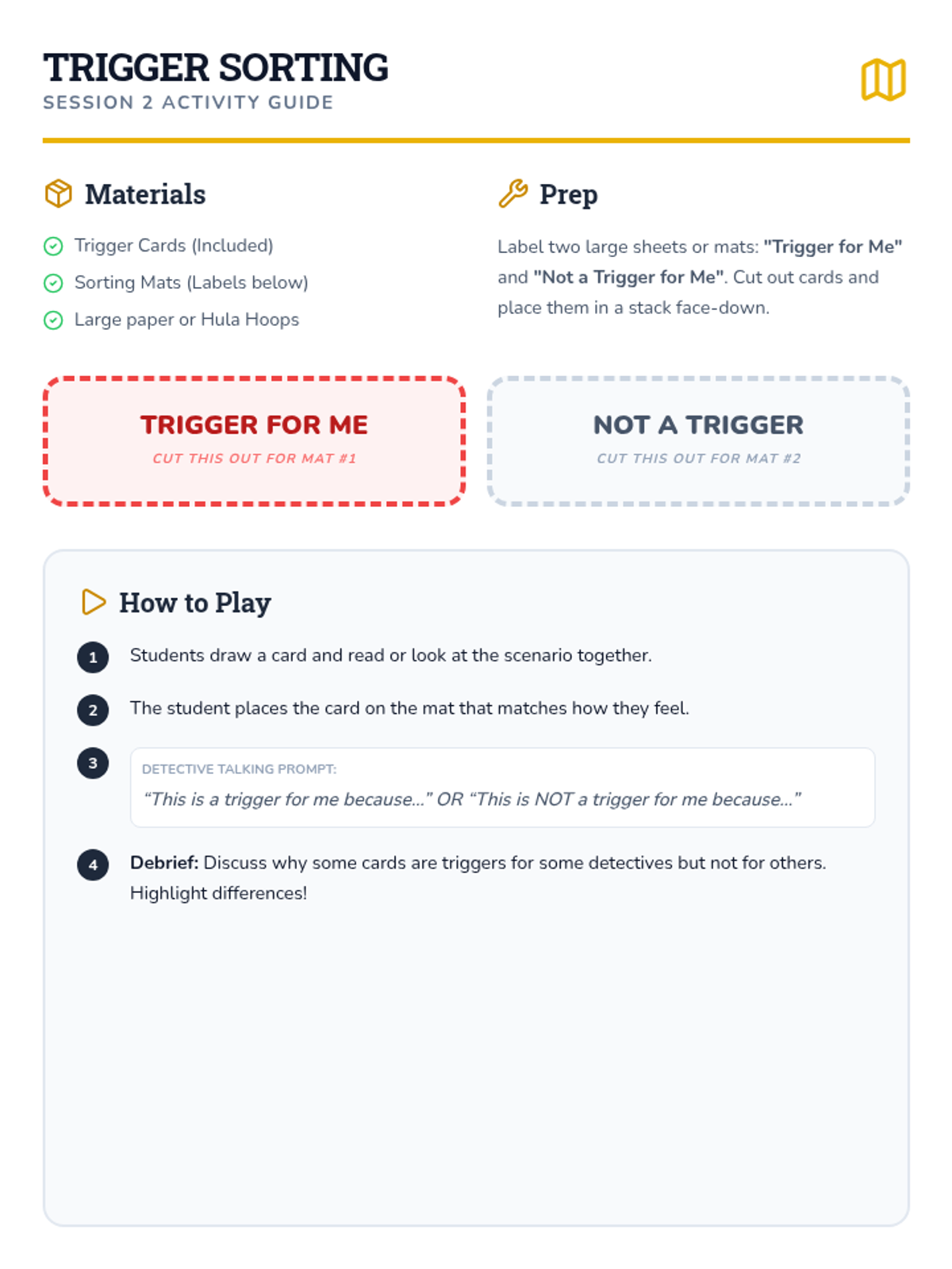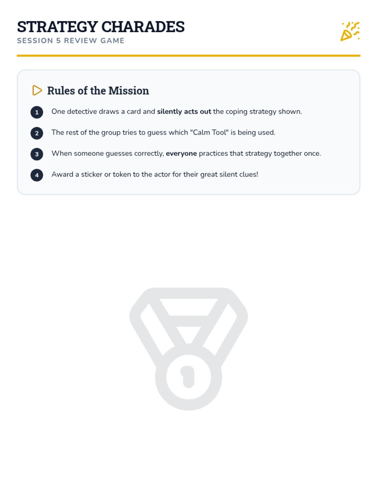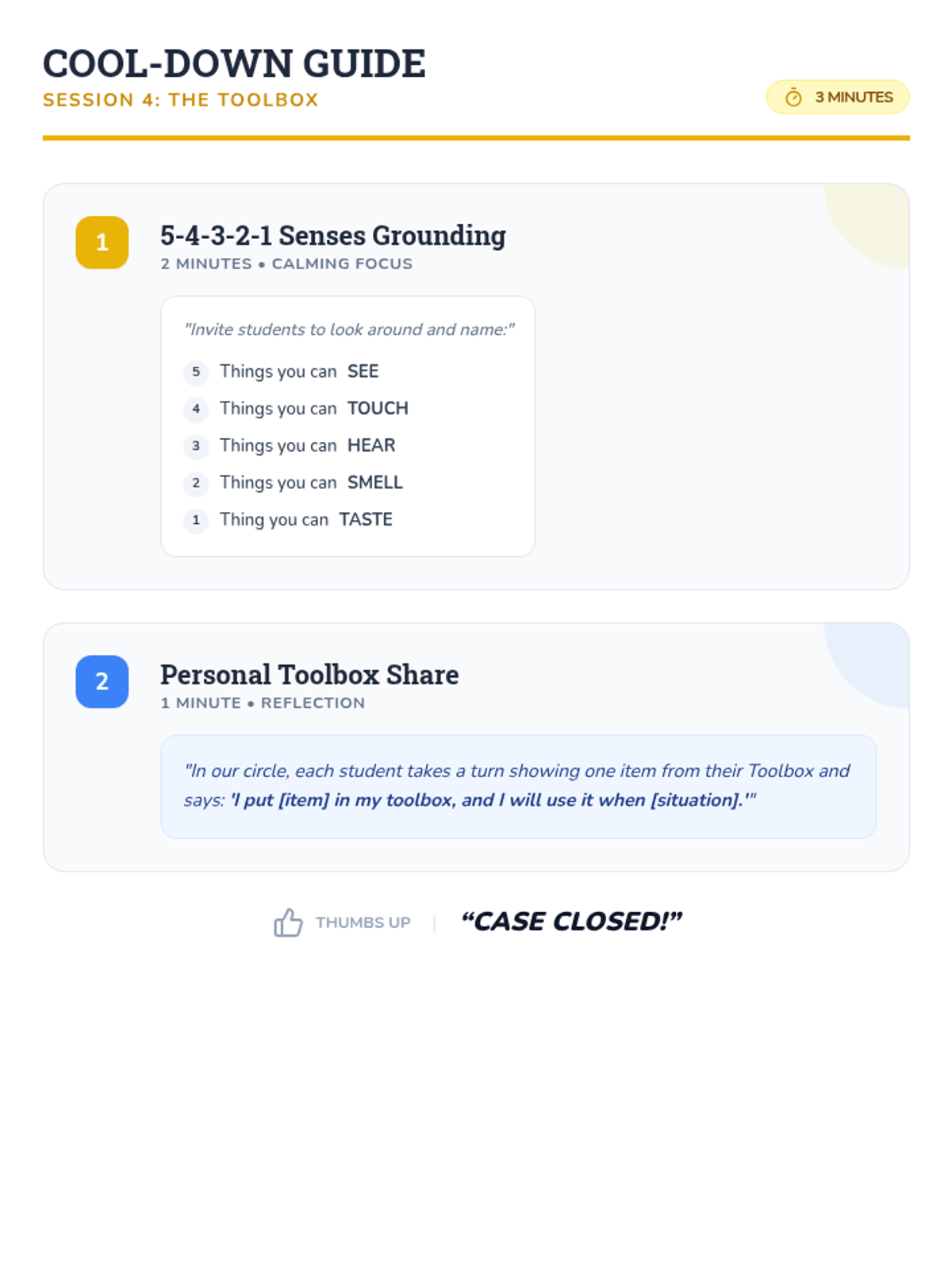 A 5-session small-group SEL sequence for K-2 students with IEPs to identify anger triggers, learn physical signs, and practice coping strategies through interactive detective-themed activities.