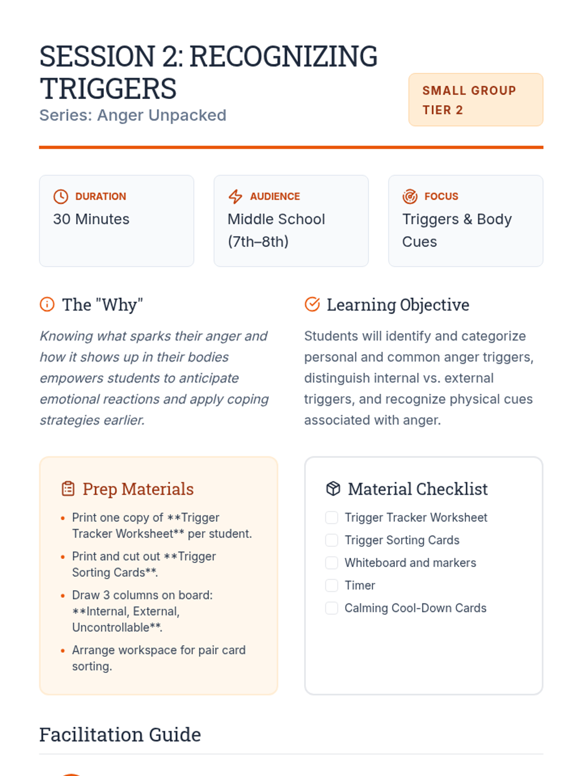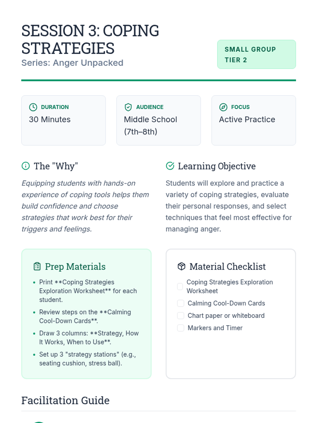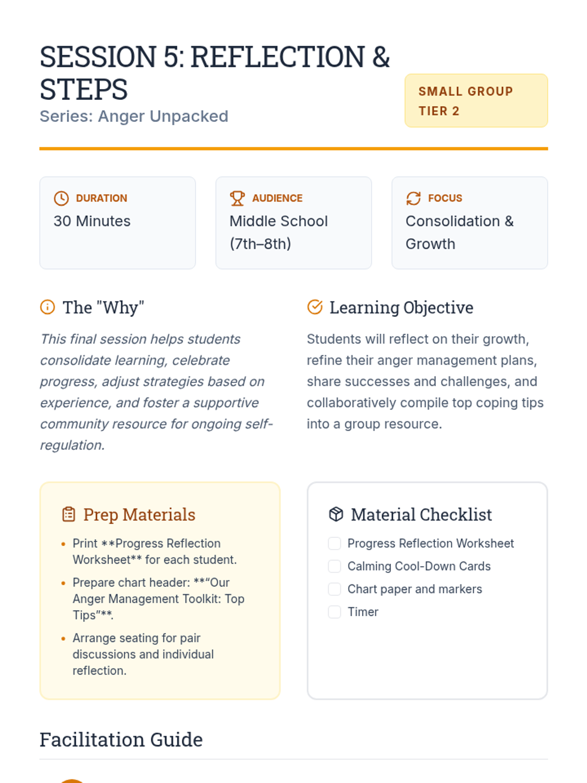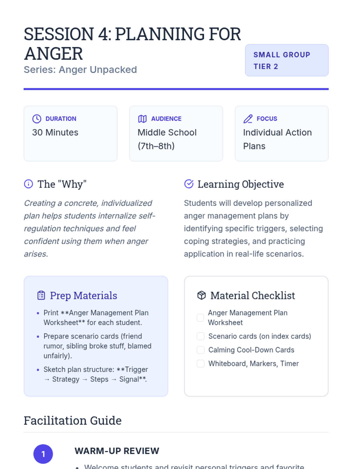 A 5-session small-group series for middle schoolers to explore anger, build emotional vocabulary, identify triggers, and develop personalized coping plans.