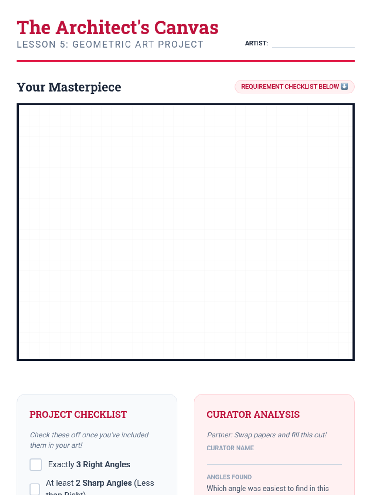 A four-day intensive unit on decomposing rectilinear figures to find total area, progressing from basic strategies to complex real-world architectural challenges. Students act as 'Blueprint Builders' to master vertical cuts, horizontal cuts, and additive/subtractive methods.