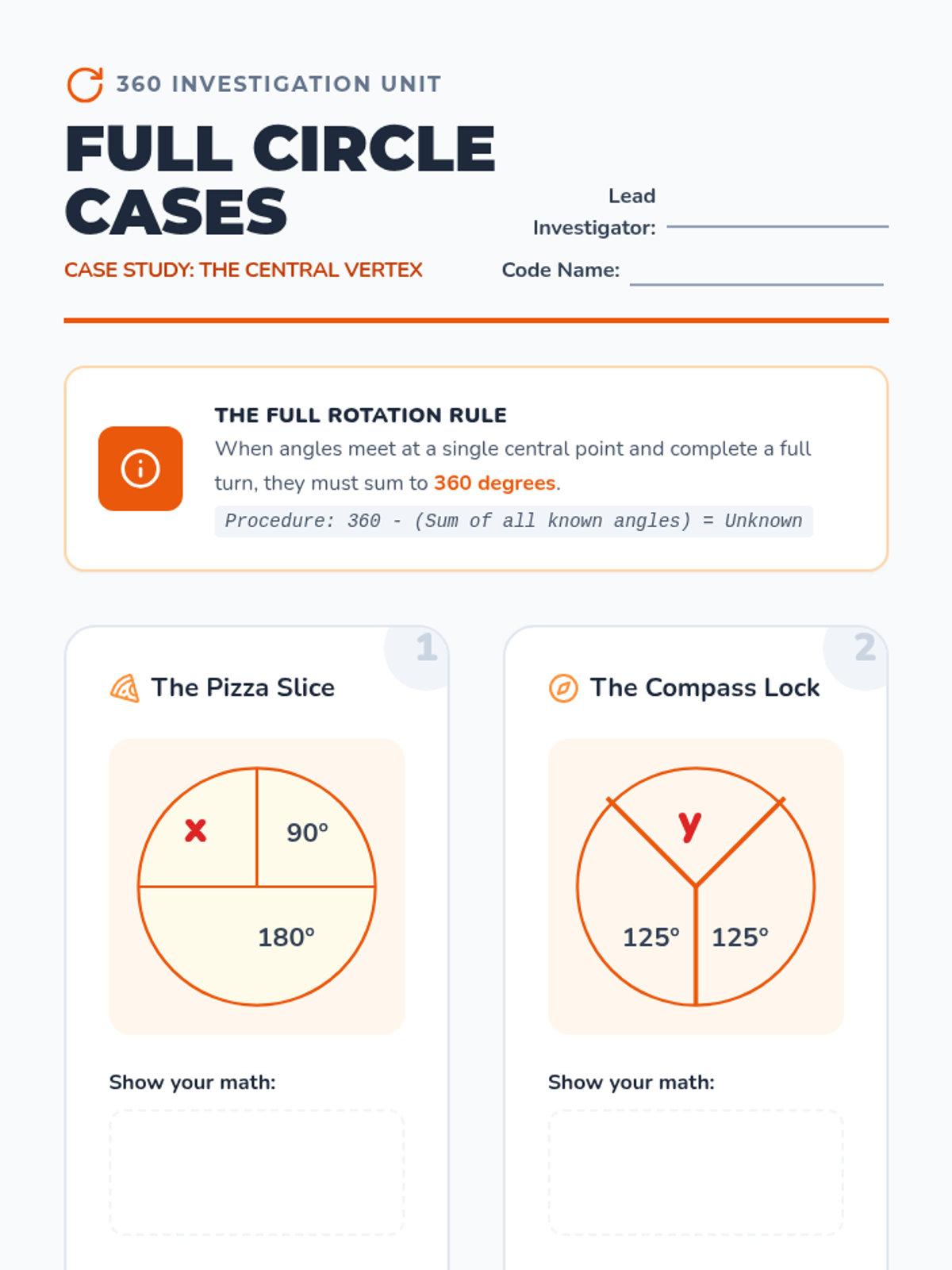 This 4th-grade math sequence explores the additive nature of angles. Students learn to compose and decompose angles, solving for unknown values in right angles, straight lines, and full rotations around a point using inquiry and game-based approaches.